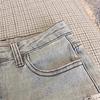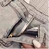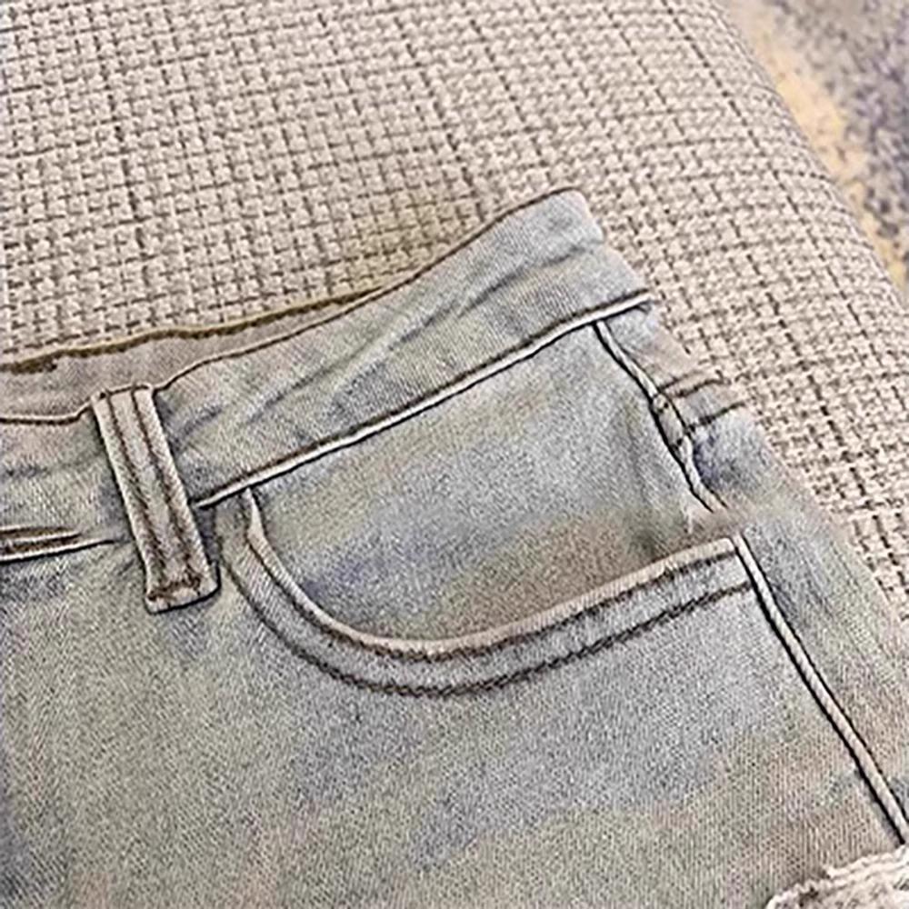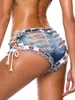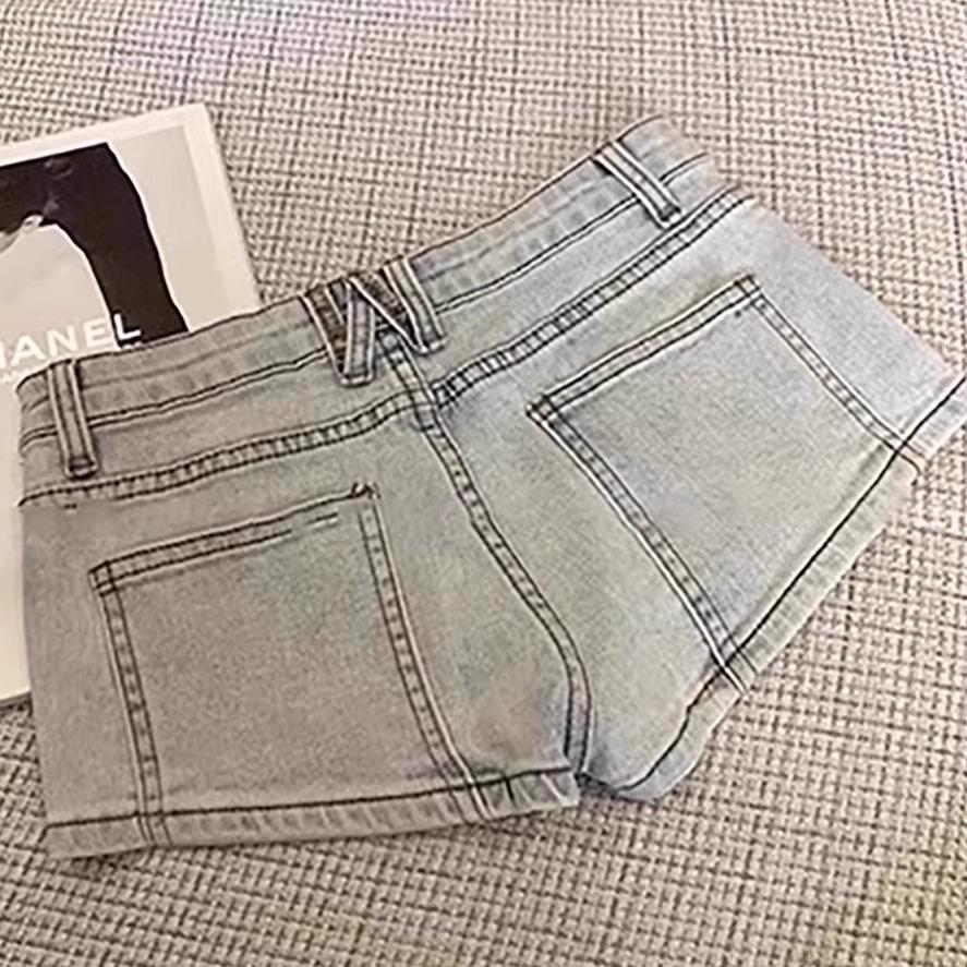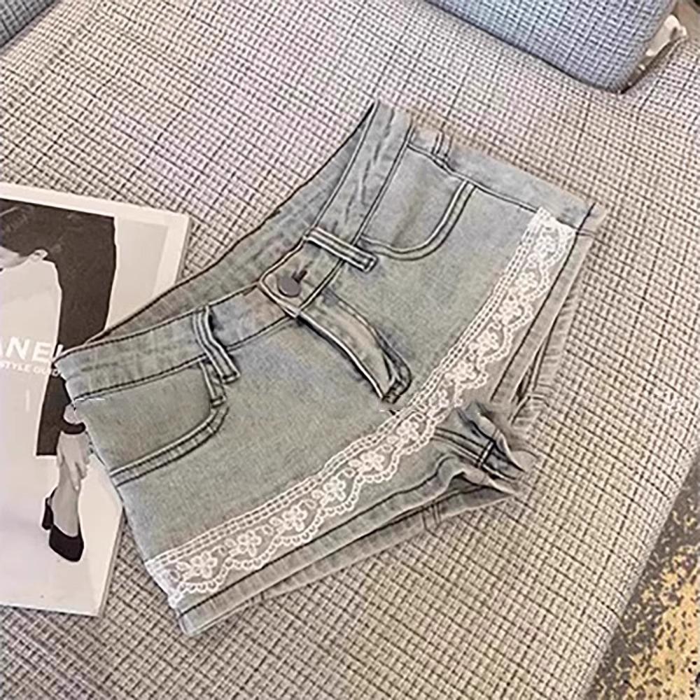 Super Shorts de mezclilla de tiro bajo con encaje lavado empalmado para mujer 2025 Primavera y Verano Nueva tendencia de moda Ajuste ceñido Hot pants
