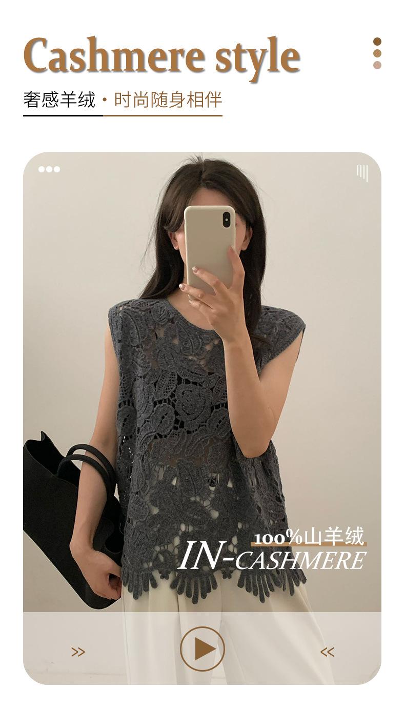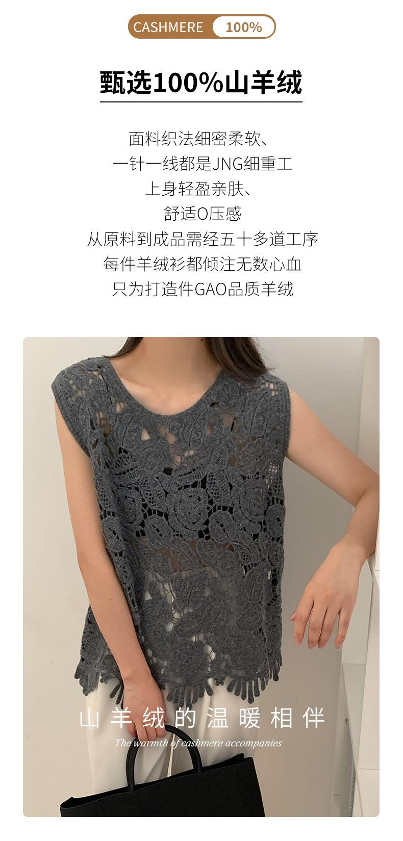 2025 Otoño Nuevo Chaleco sin Mangas Mujer Adelgazante Ropa Exterior Calado Top sin Mangas 100% Cachemira Pura Chaleco Jersey