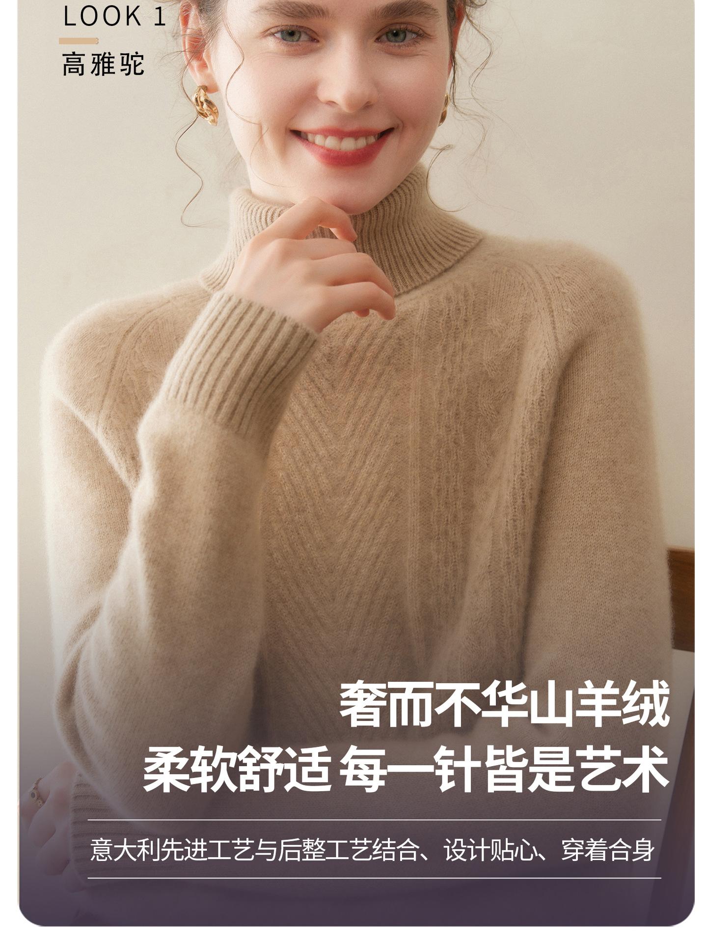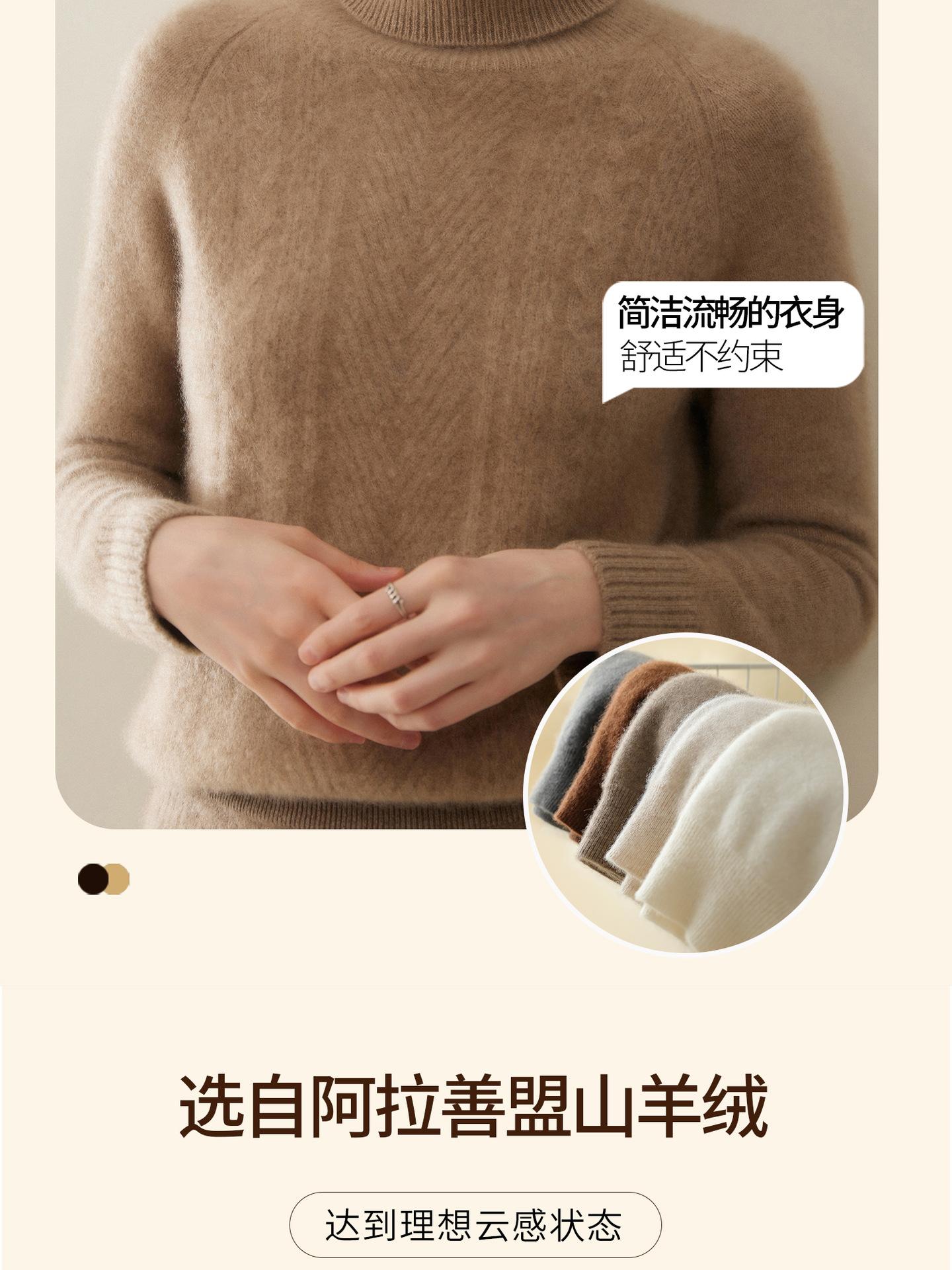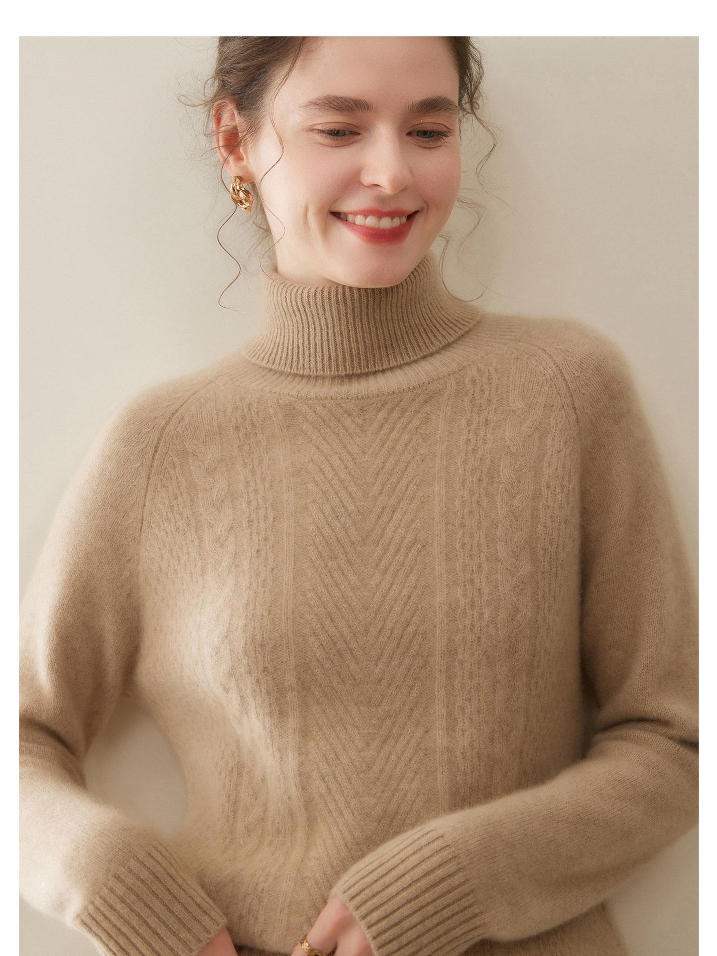 Suéter de Cachemira para Mujer Grueso Cuello Medio Alto Jersey Versátil Adelgazante Manga Raglán Punto Transferencia Cálido Color Sólido Manga Larga Suéter de Punto
