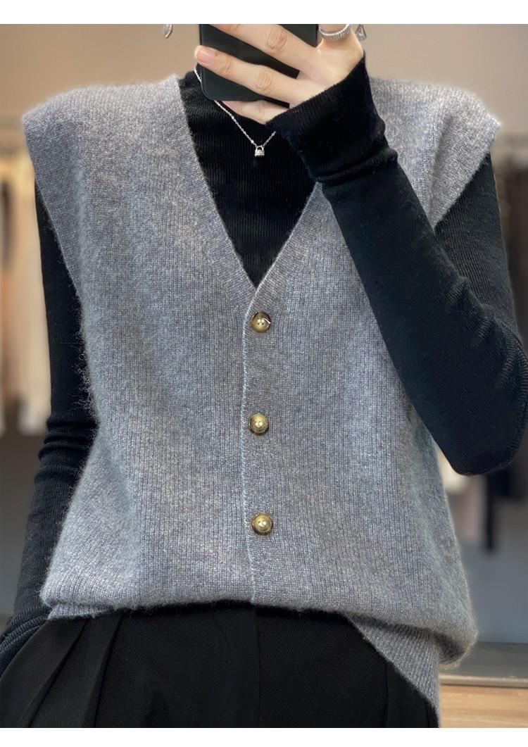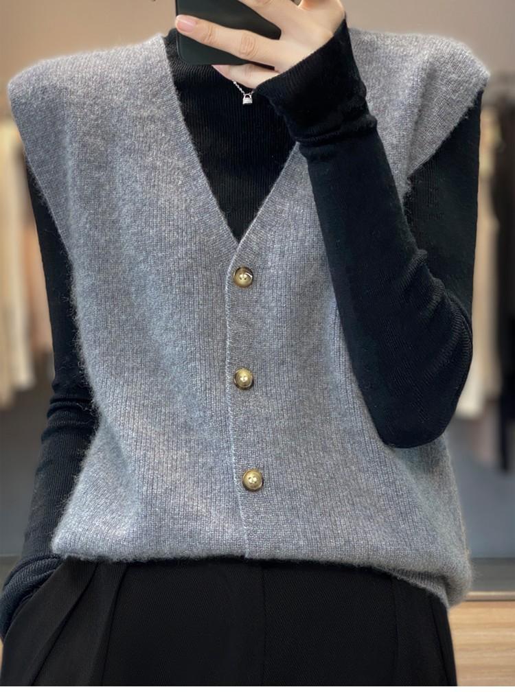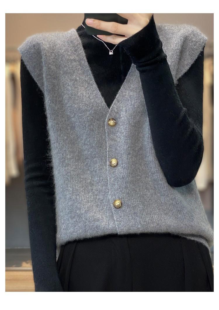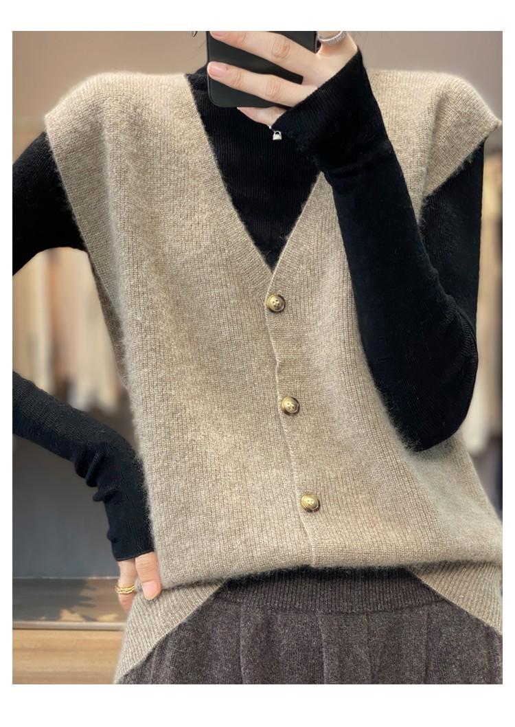 Nuevo Otoño 2025 Chaleco de Mujer Cárdigan de Moda Cuello en V Suéter Versátil Tejido de Punto para Mujer