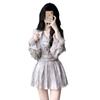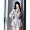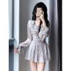 Vestido Francés con Volantes de Manga Larga para Mujer Otoño Nuevo Temperamento Vestido de Hada Adelgazante de Cintura Petite Línea A Falda Corta