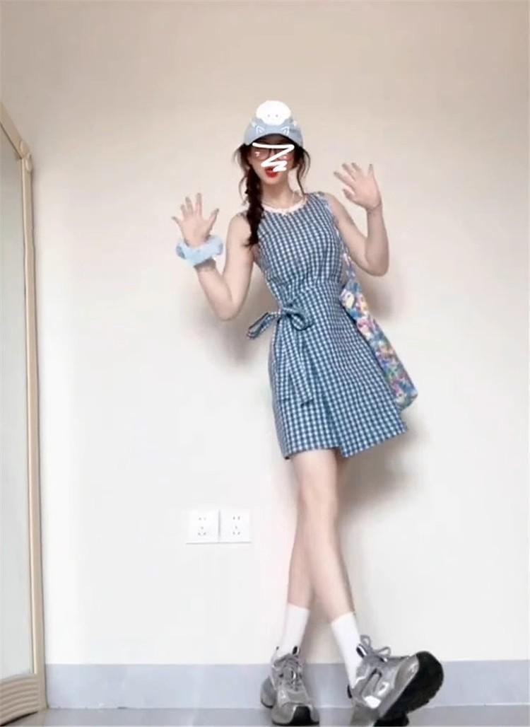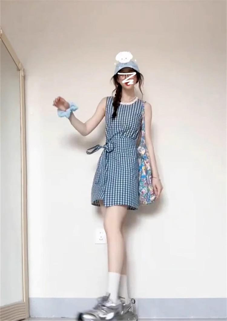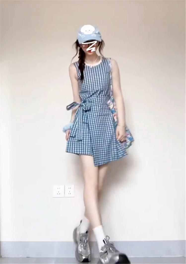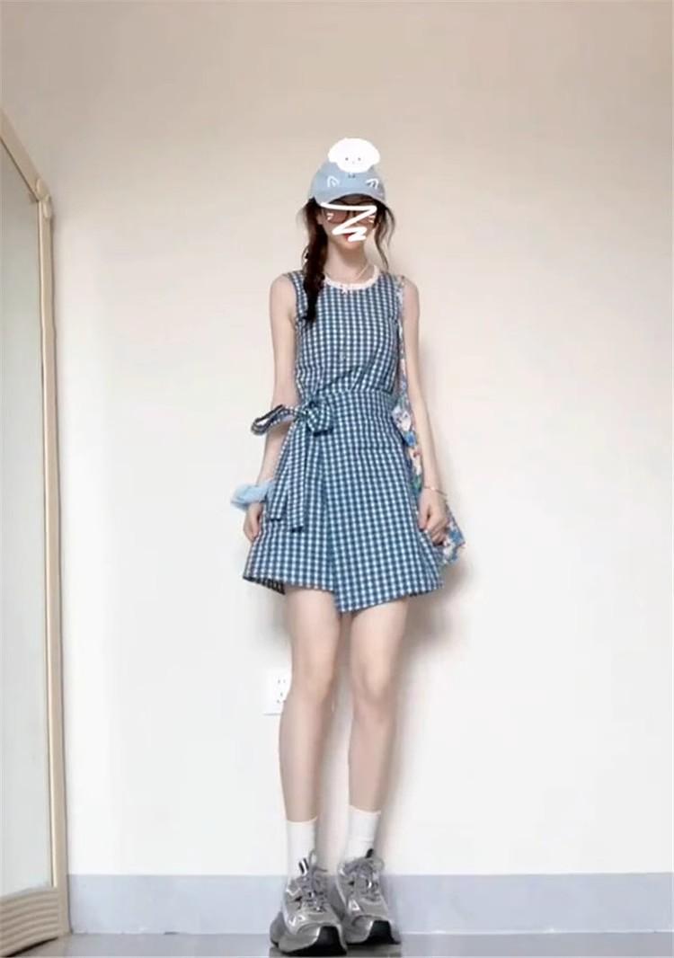 Vestido chaleco azul a cuadros estilo Academia Francesa para niños Verano 2025 Nuevo estilo Falda pequeña elegante