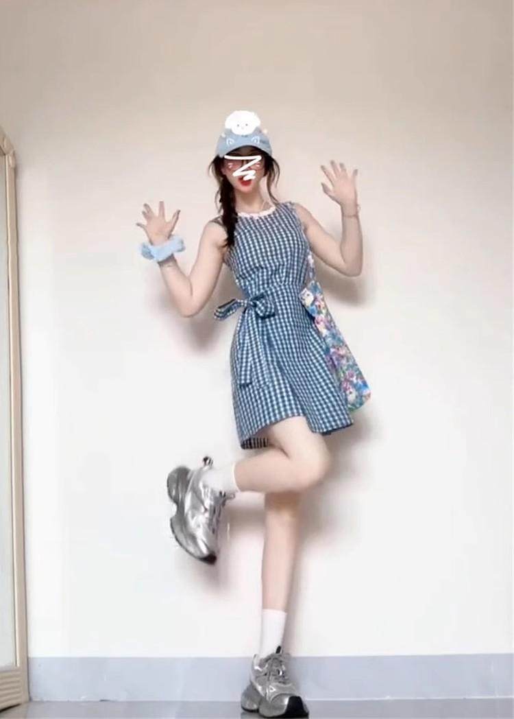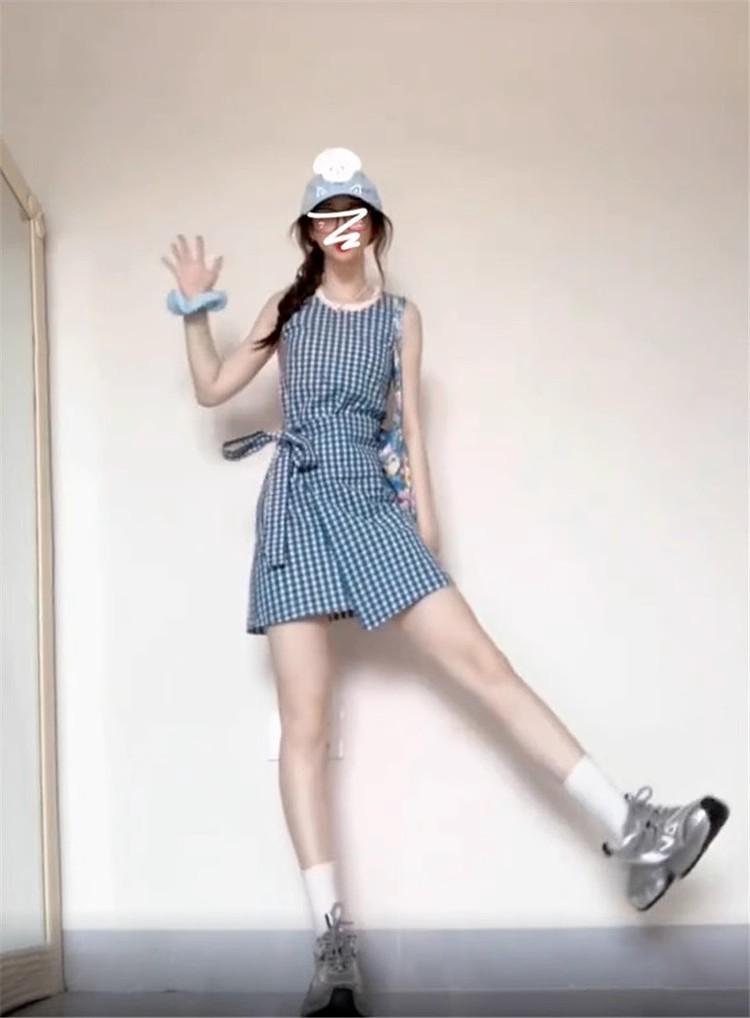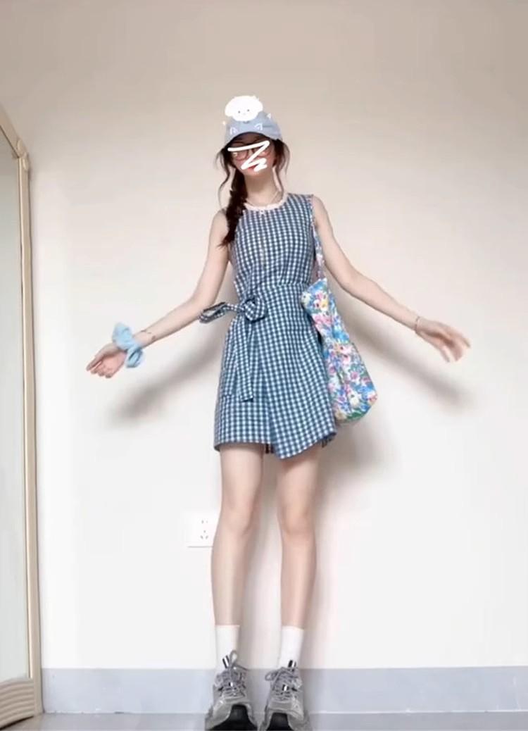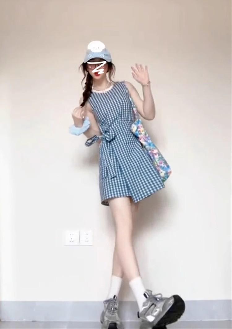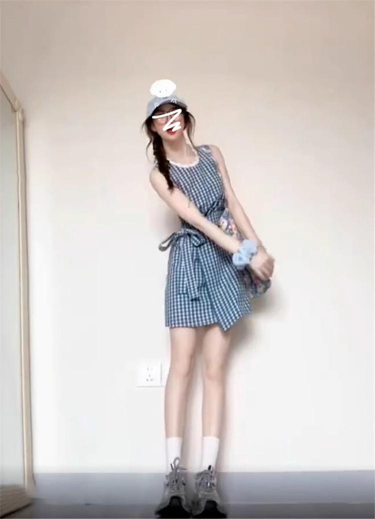 Vestido chaleco azul a cuadros estilo Academia Francesa para niños Verano 2025 Nuevo estilo Falda pequeña elegante
