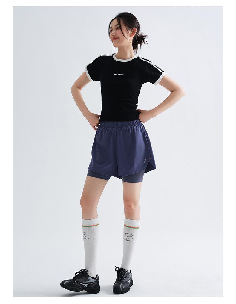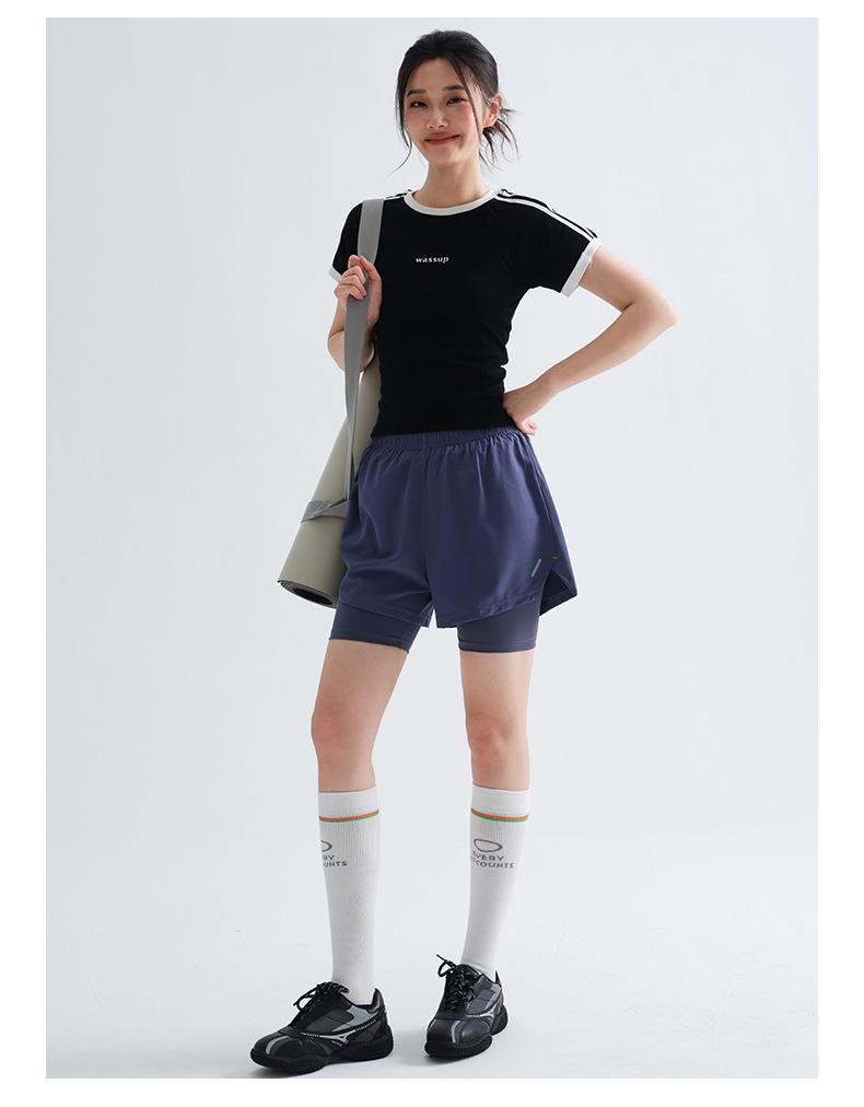 Shorts Deportivos para Mujer para Fitness al Aire Libre Transpirables Talla Grande Verano Profesionales para Correr Entrenamiento Pantalones de Secado Rápido Pantalones de Yoga Falsos de Dos Piezas