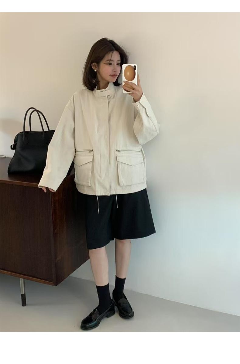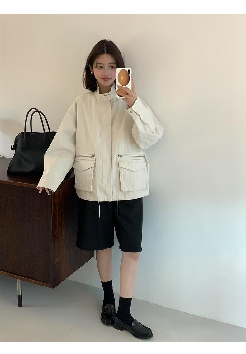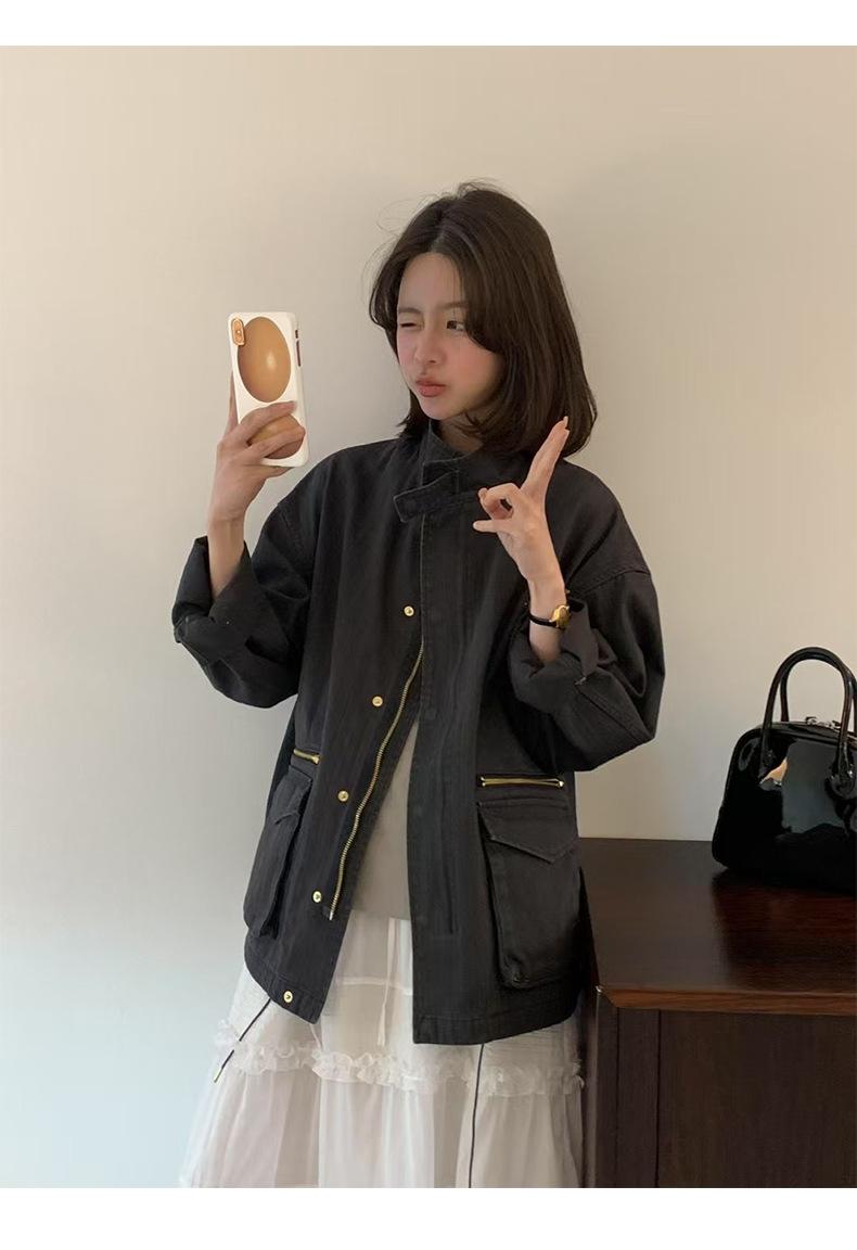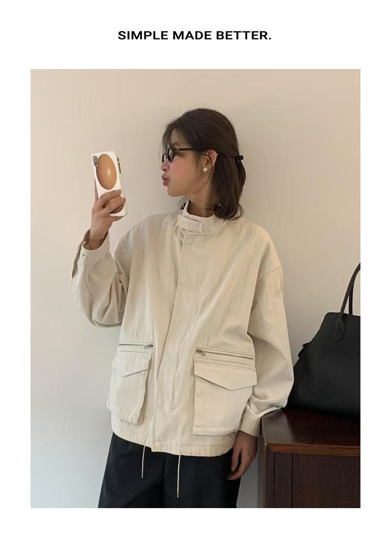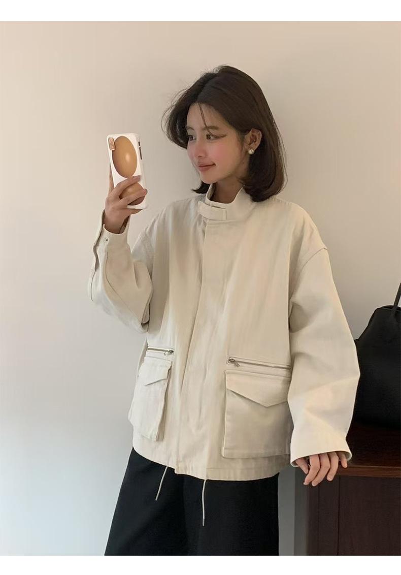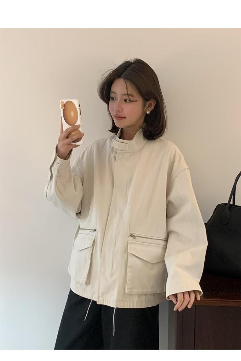 2025 Otoño Nuevo Coreano Dongdaemun Casual Sencillo Cuello Alto Cremallera Estilo Ropa de Trabajo Chaqueta Adelgazante Gabardina Ropa Exterior Mujer