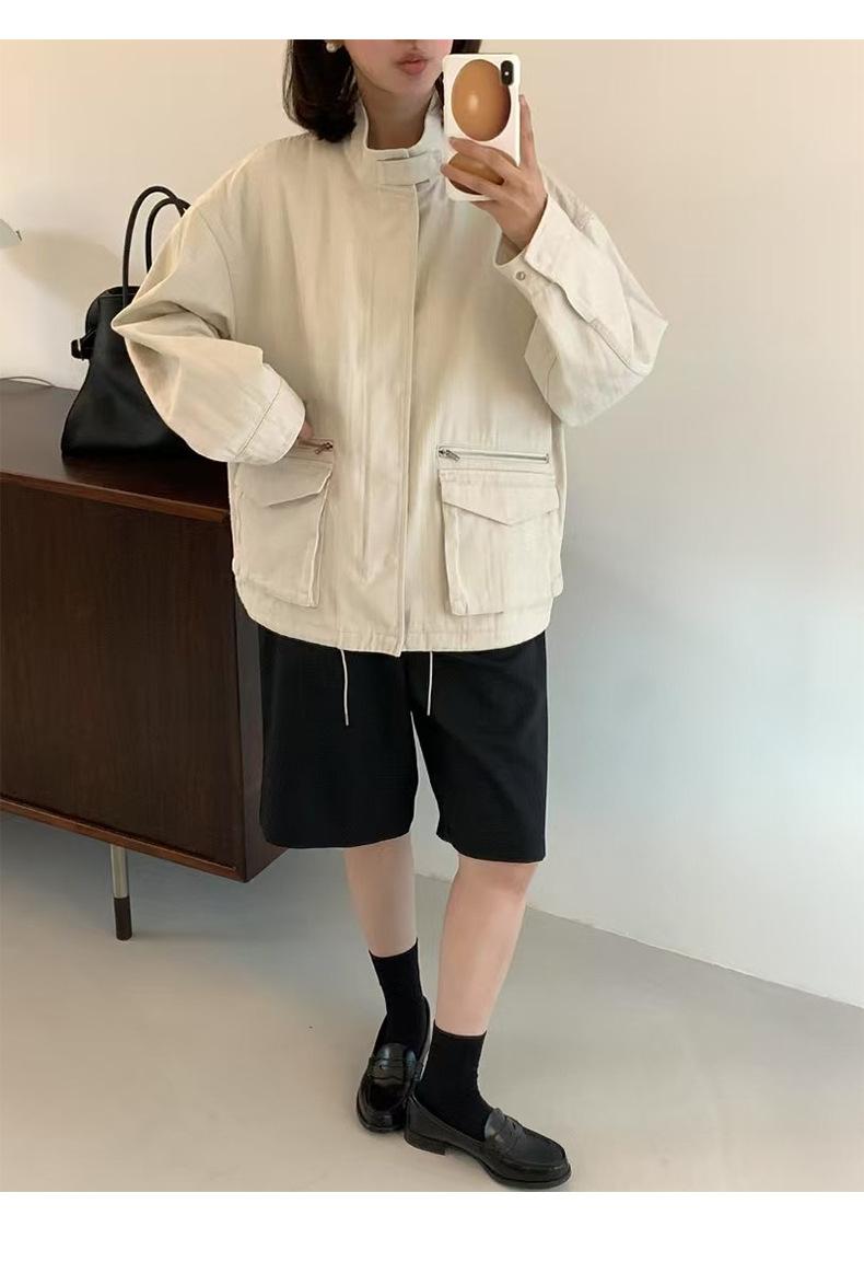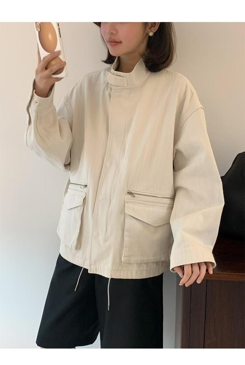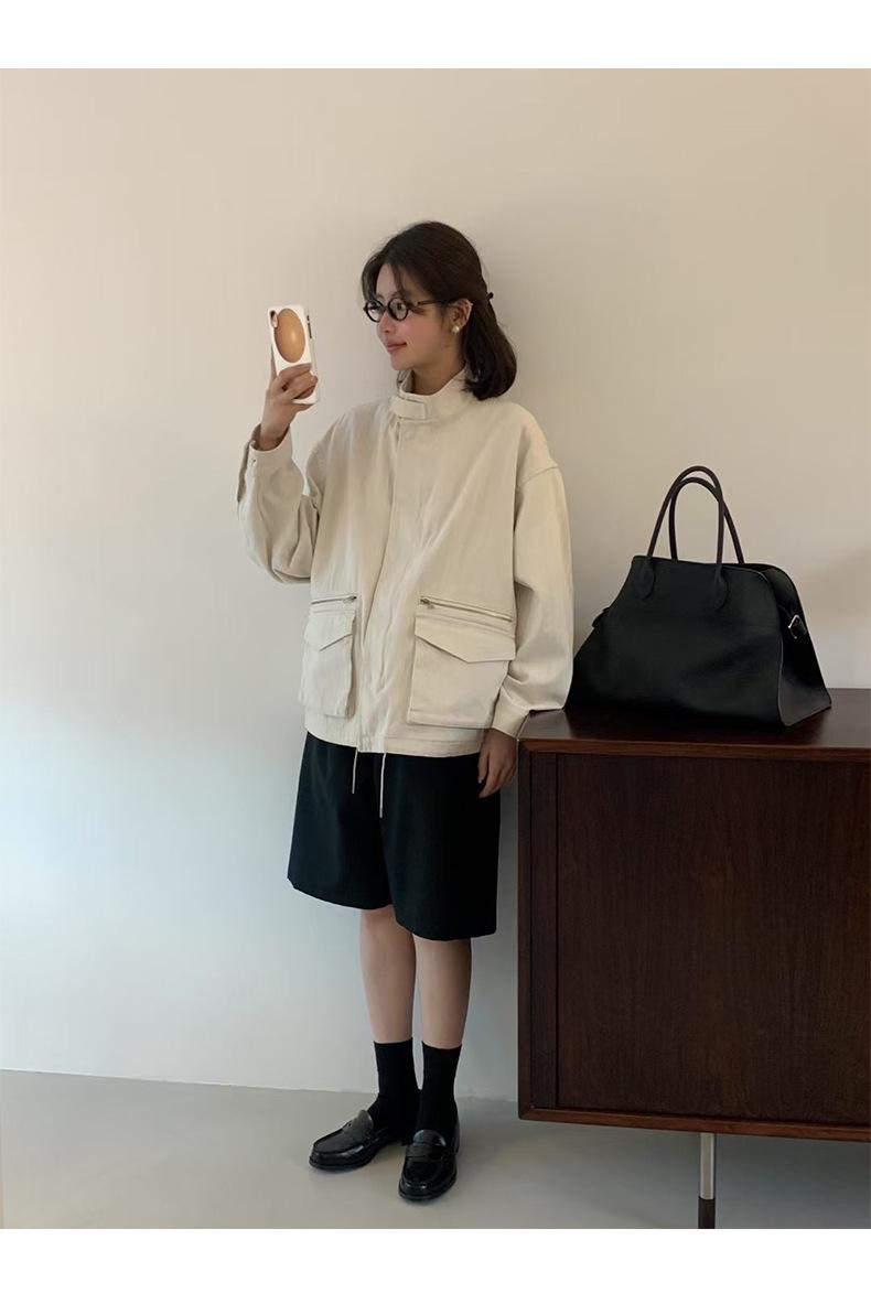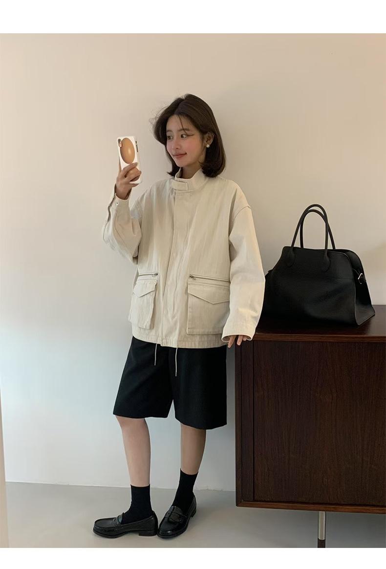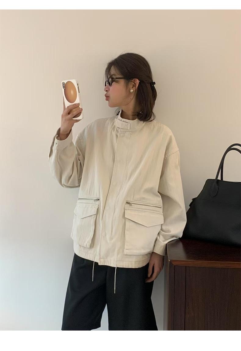 2025 Otoño Nuevo Coreano Dongdaemun Casual Sencillo Cuello Alto Cremallera Estilo Ropa de Trabajo Chaqueta Adelgazante Gabardina Ropa Exterior Mujer