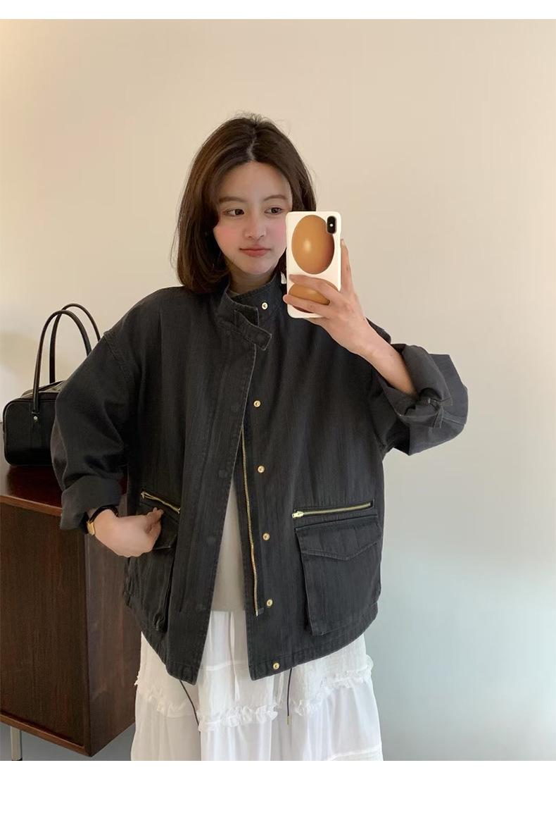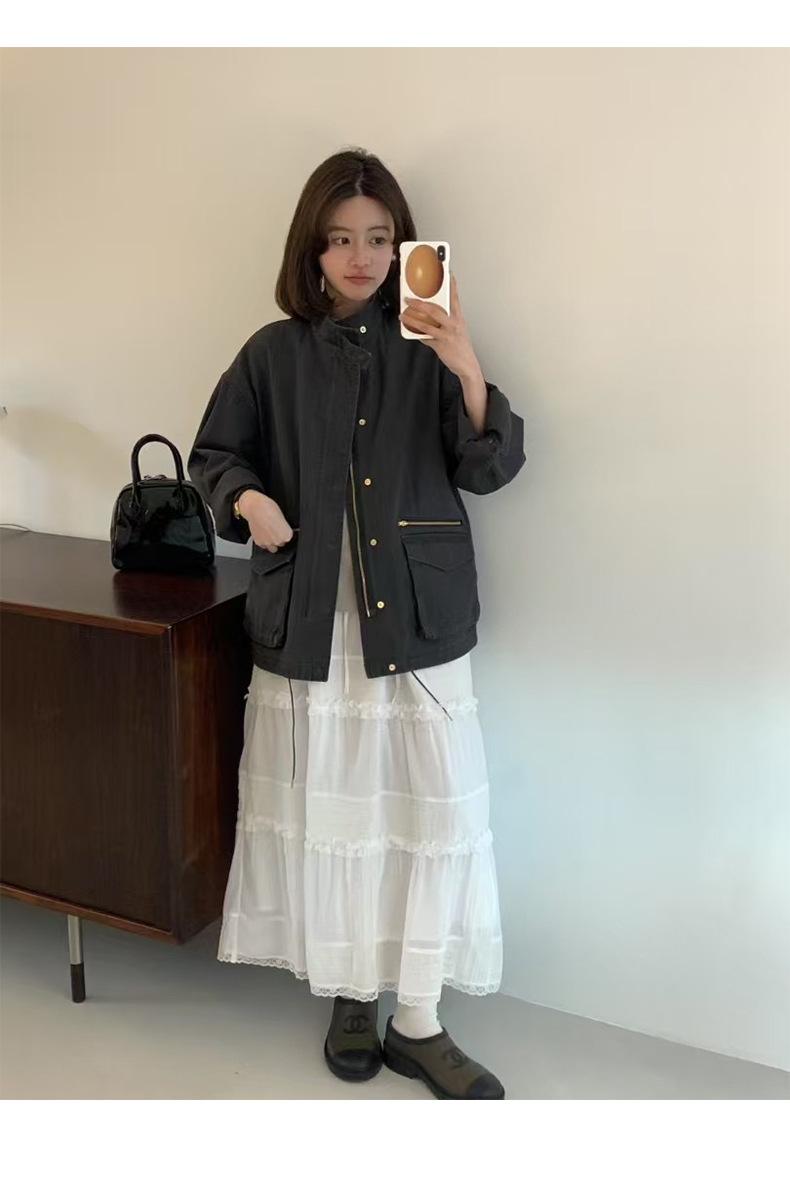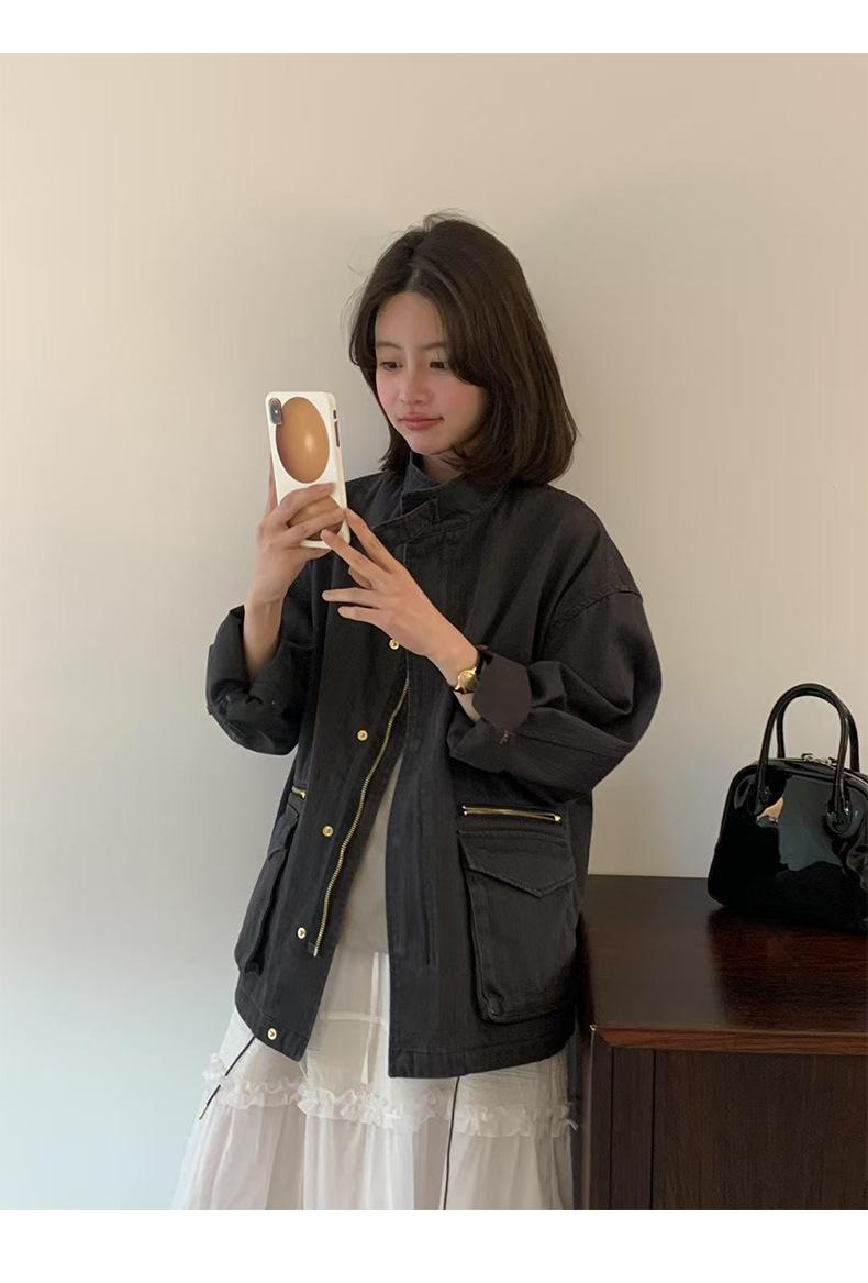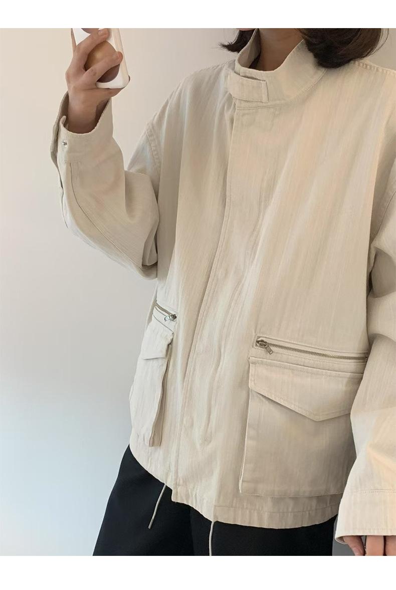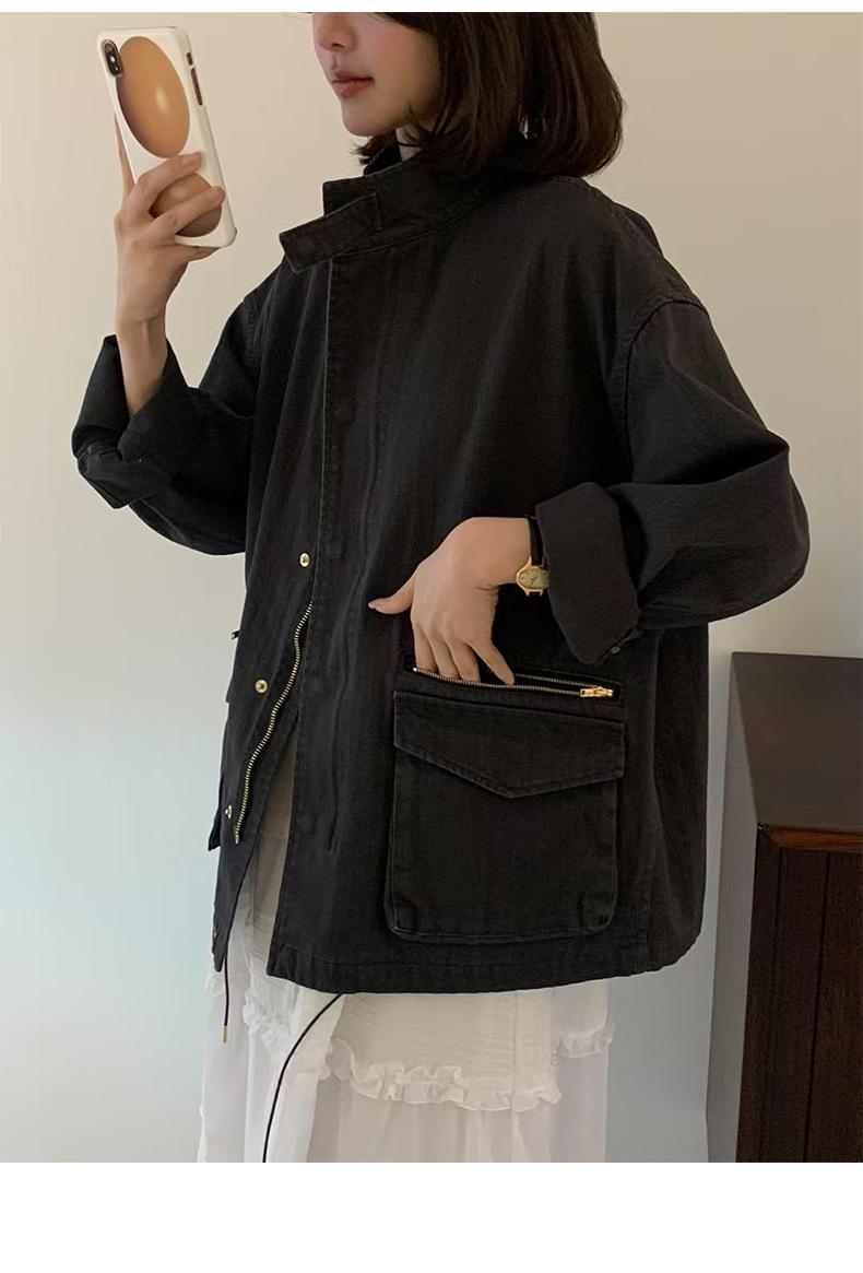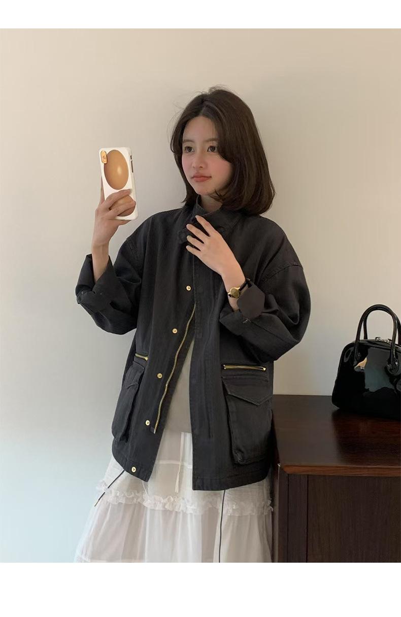 2025 Otoño Nuevo Coreano Dongdaemun Casual Sencillo Cuello Alto Cremallera Estilo Ropa de Trabajo Chaqueta Adelgazante Gabardina Ropa Exterior Mujer