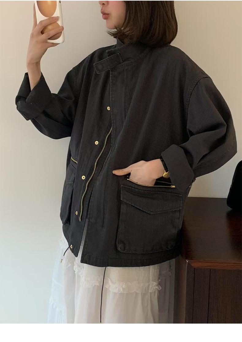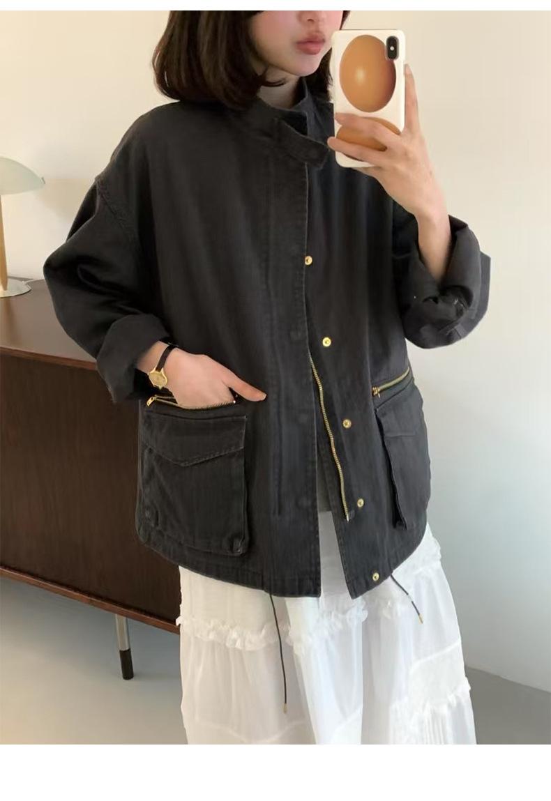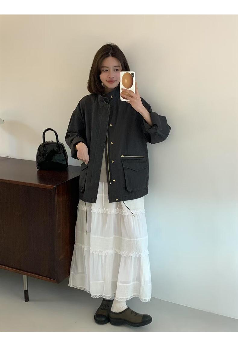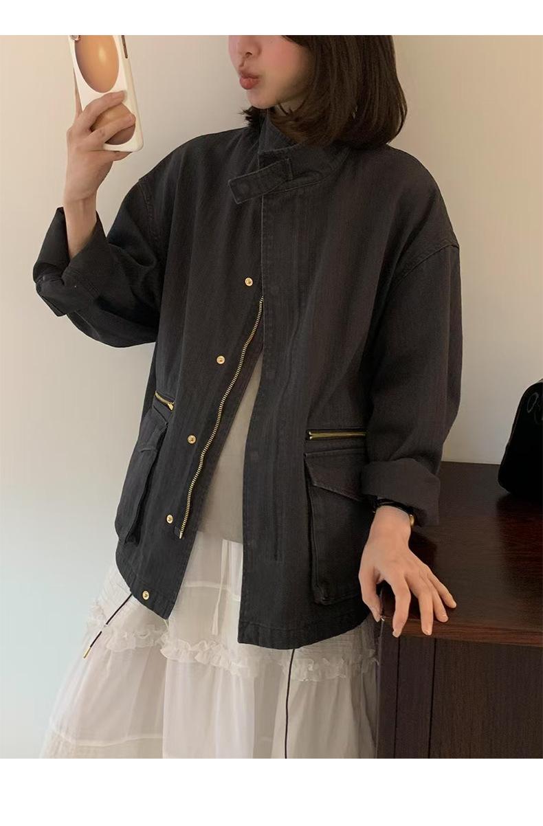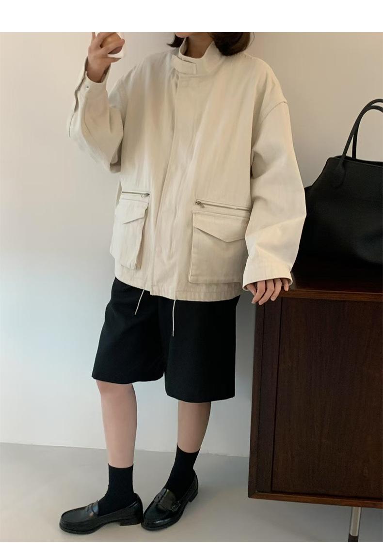 2025 Otoño Nuevo Coreano Dongdaemun Casual Sencillo Cuello Alto Cremallera Estilo Ropa de Trabajo Chaqueta Adelgazante Gabardina Ropa Exterior Mujer