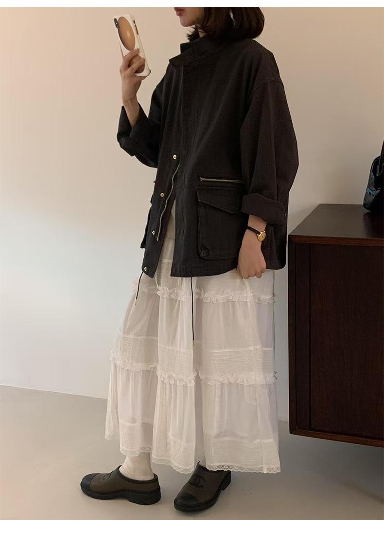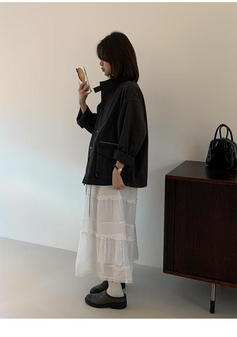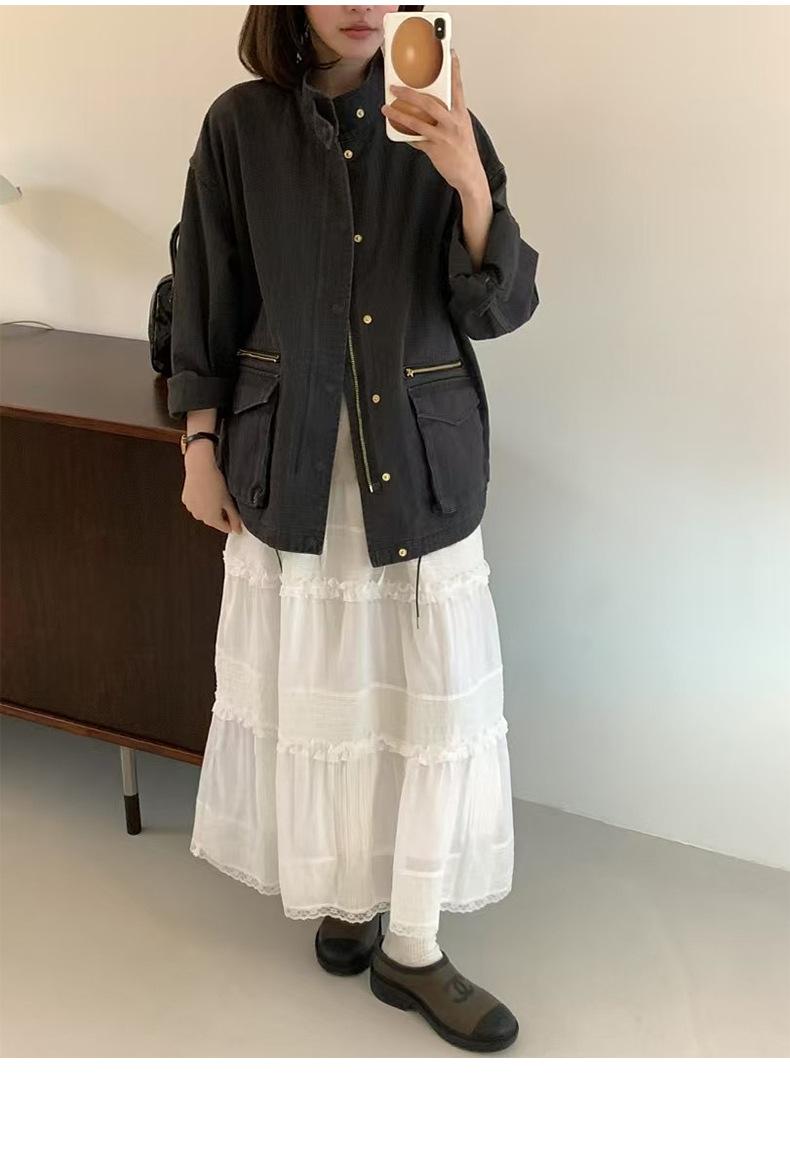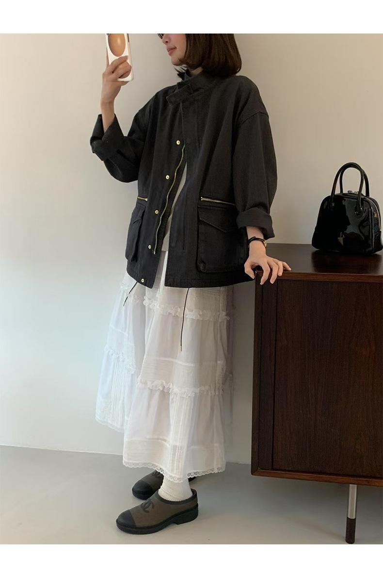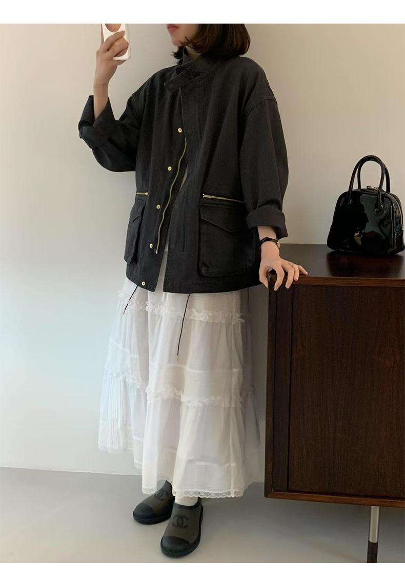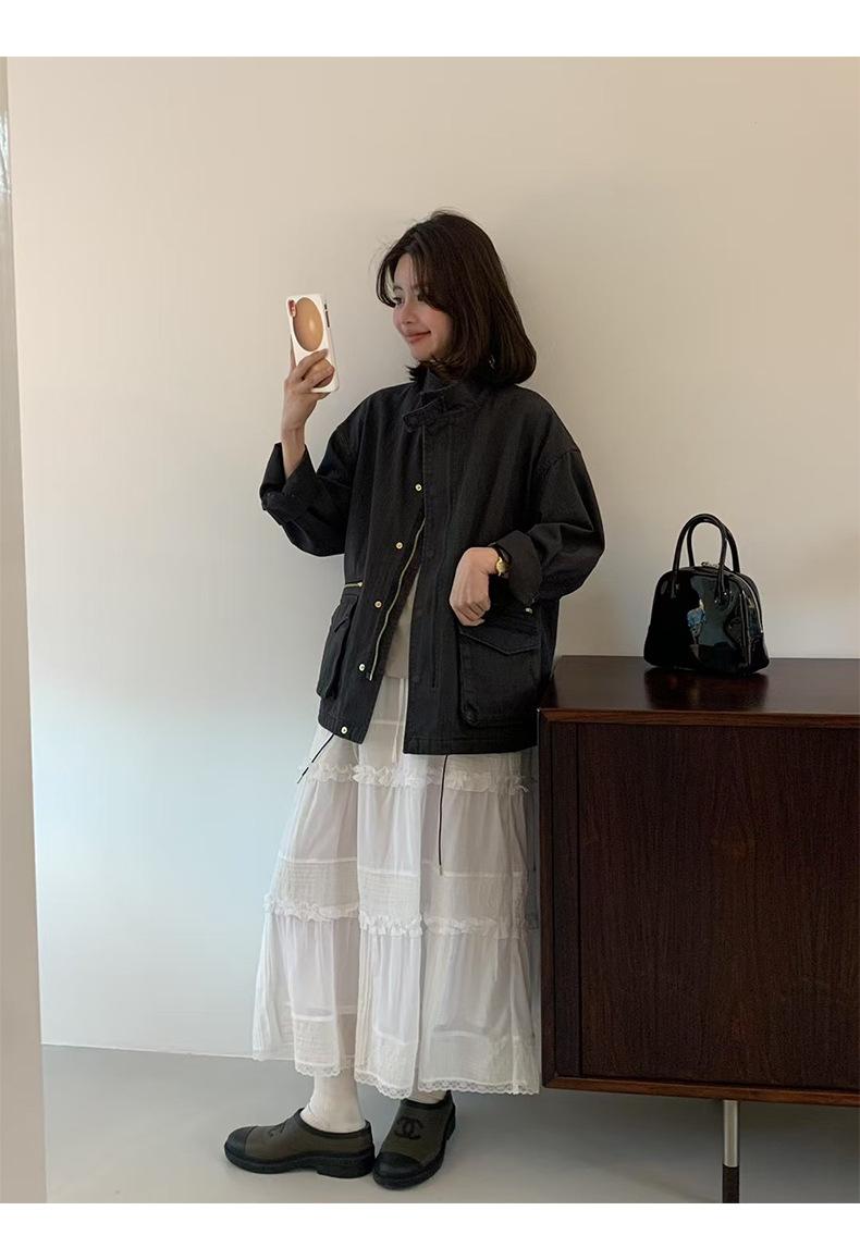 2025 Otoño Nuevo Coreano Dongdaemun Casual Sencillo Cuello Alto Cremallera Estilo Ropa de Trabajo Chaqueta Adelgazante Gabardina Ropa Exterior Mujer