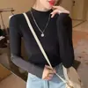 Suéter elegante de cuello alto medio para mujer, holgado y ajustado, estilo delgado para primavera, otoño e invierno, camisa básica de punto negra de manga larga
