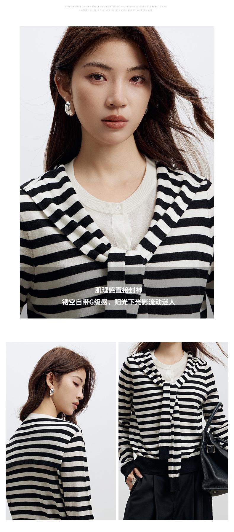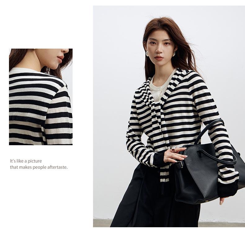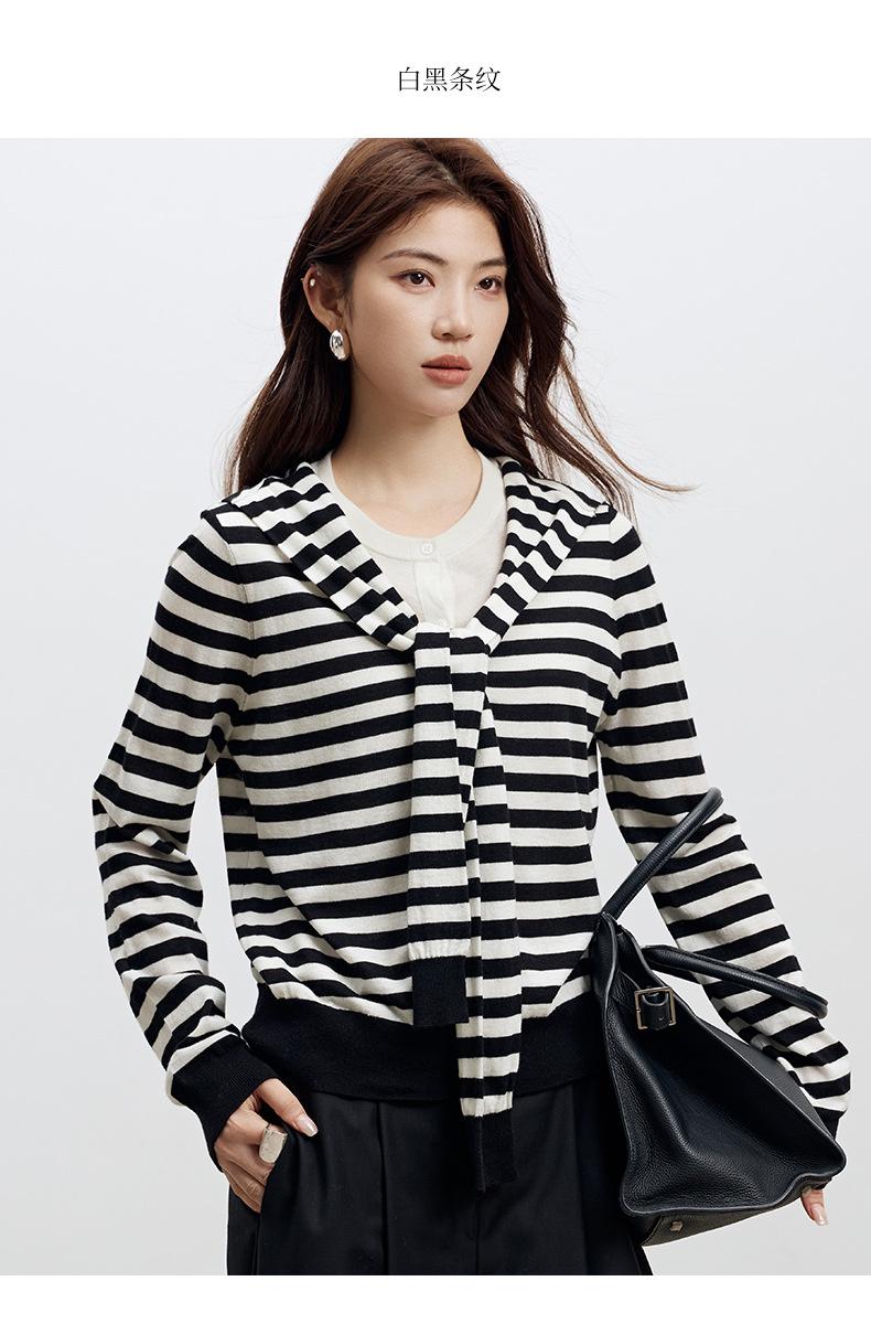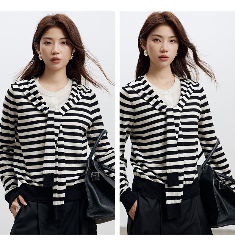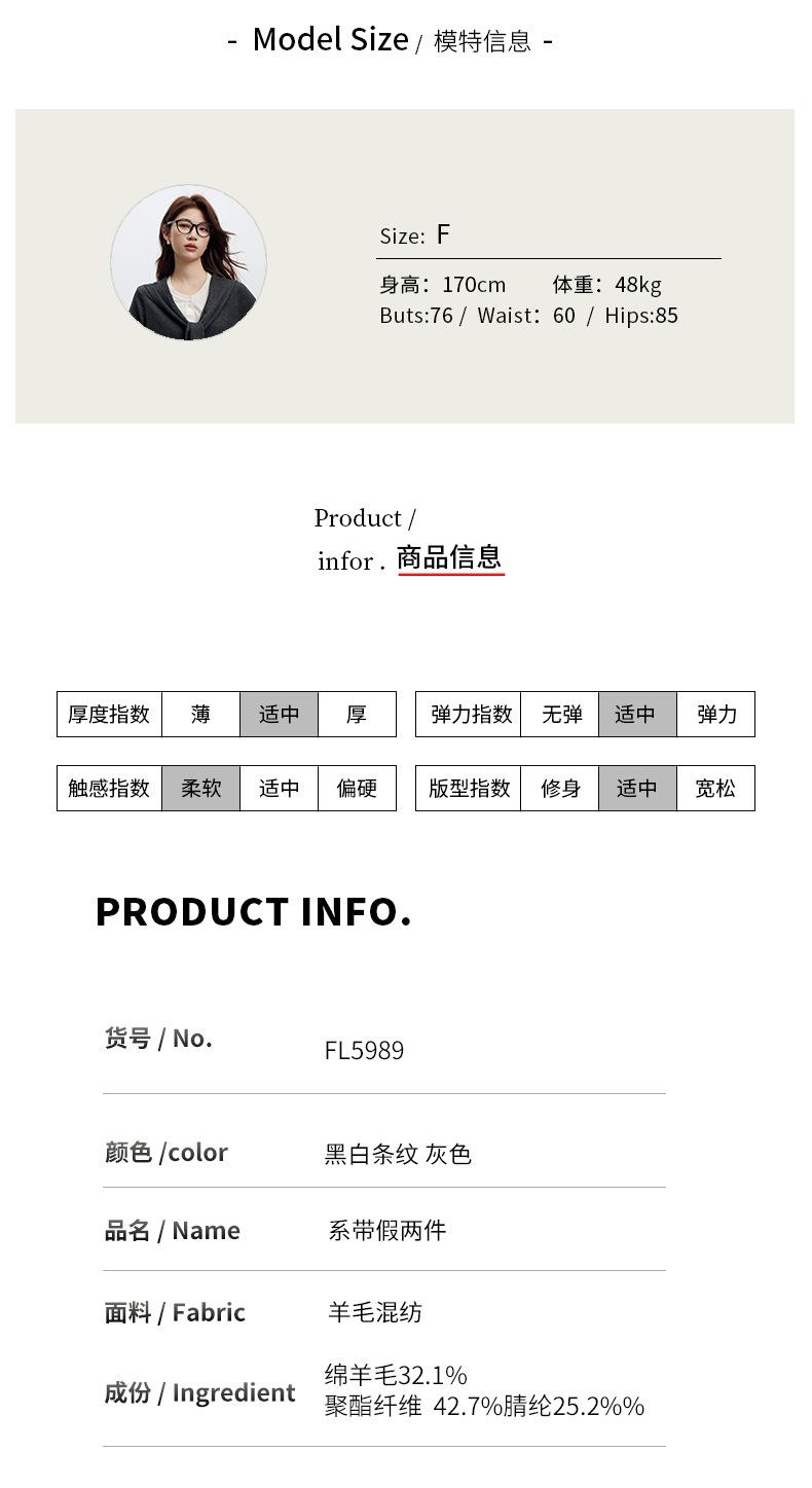 Lace up, round neck, stripe, knitting, irregular, Two fake pieces, Contrasting colors, cross straps, Color matching
