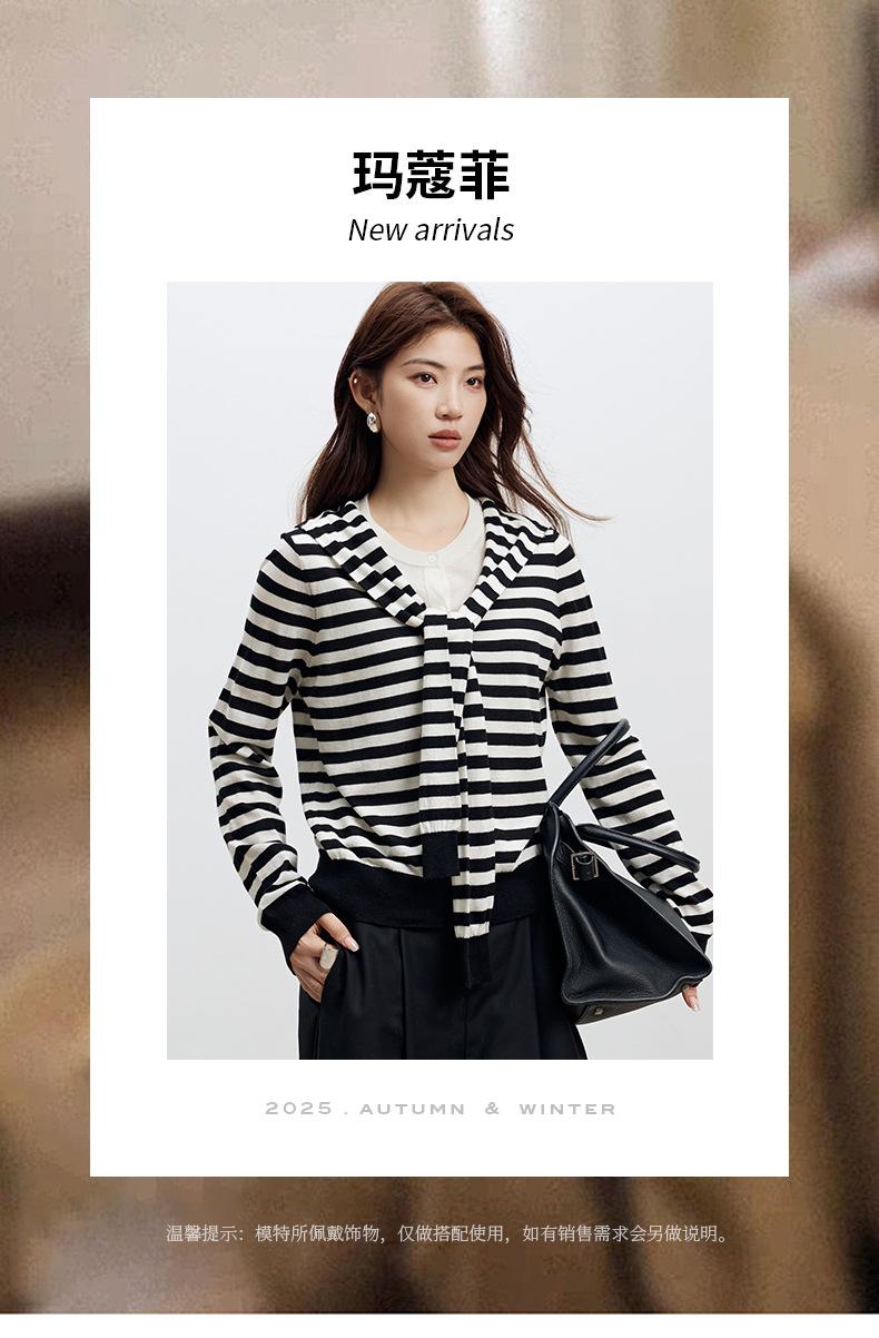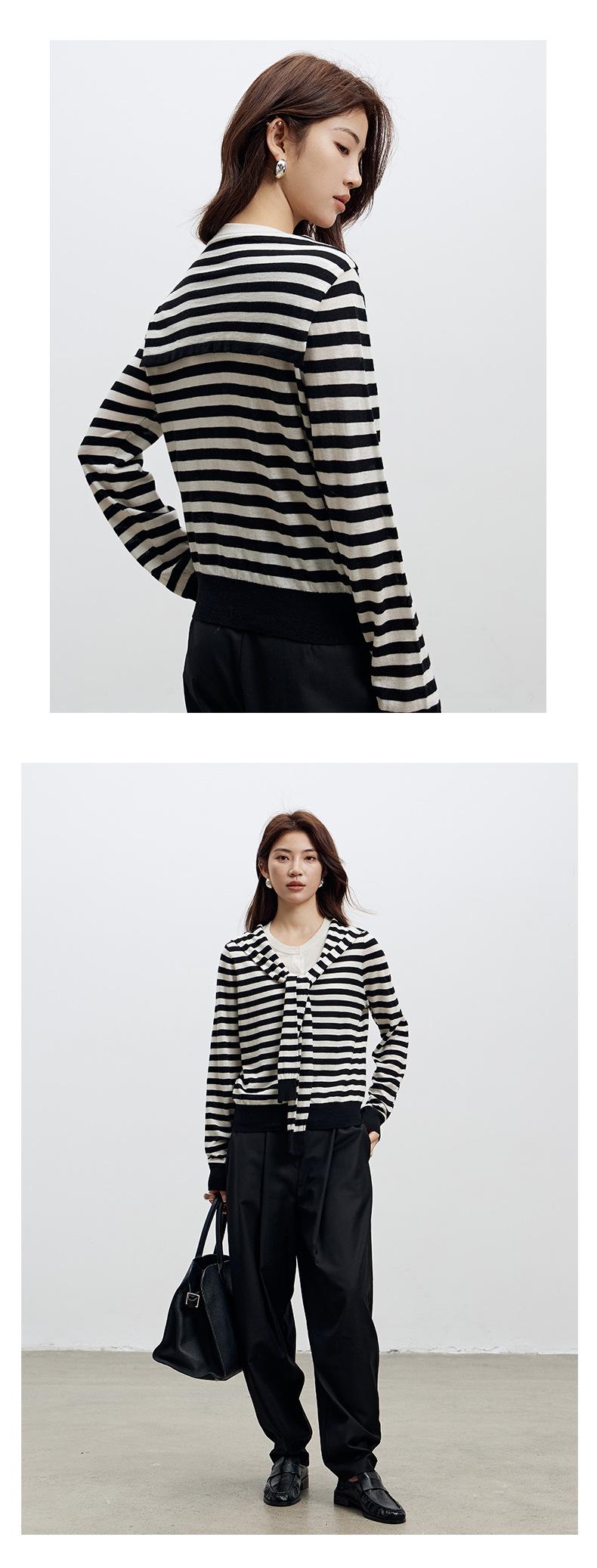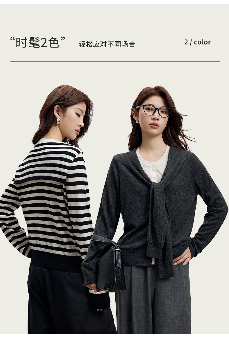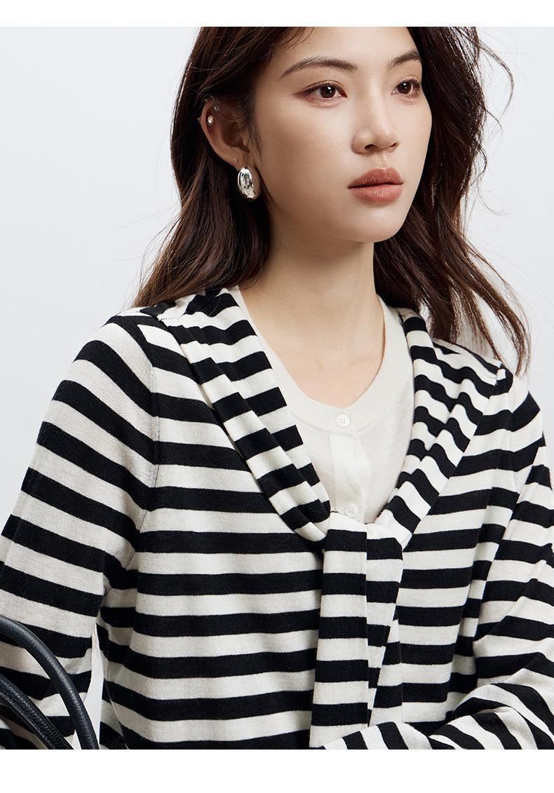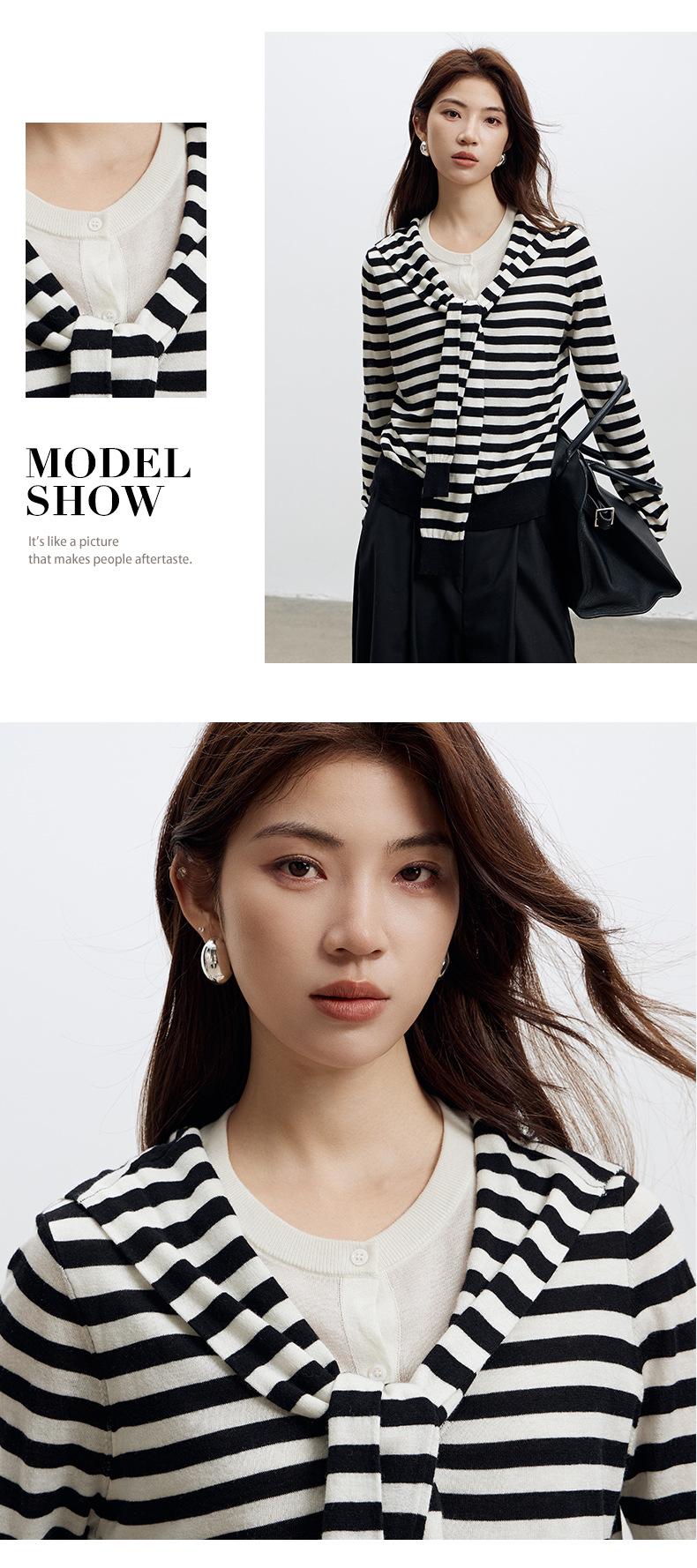 Lace up, round neck, stripe, knitting, irregular, Two fake pieces, Contrasting colors, cross straps, Color matching