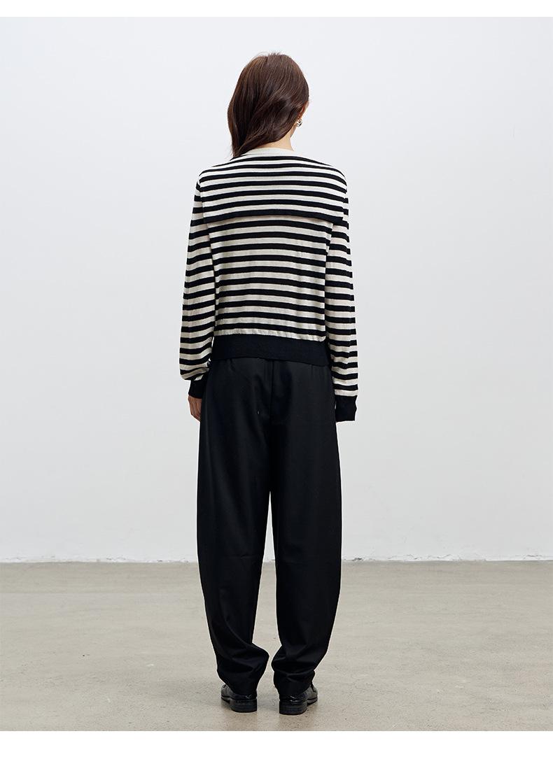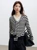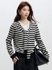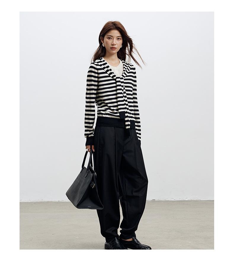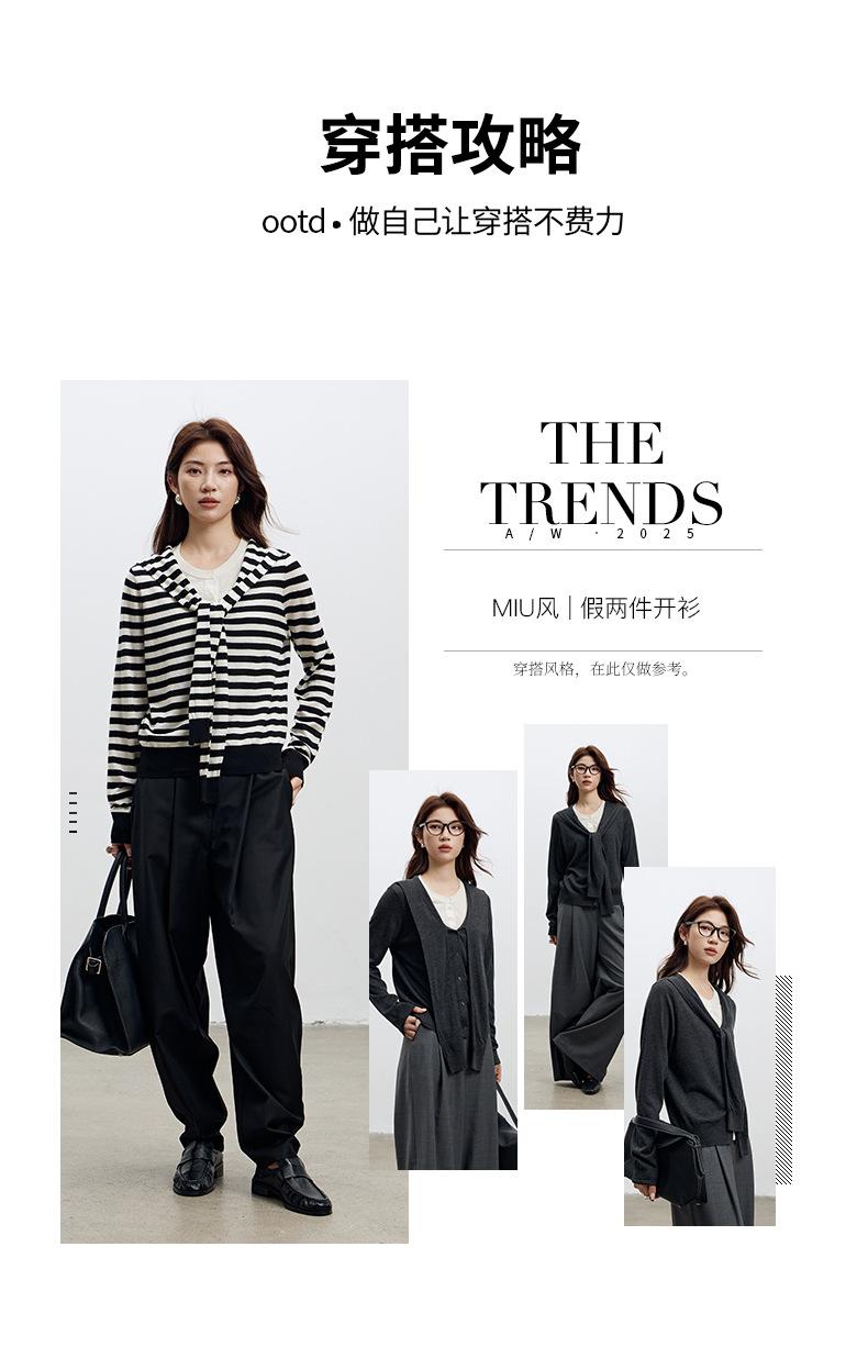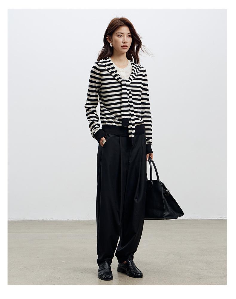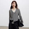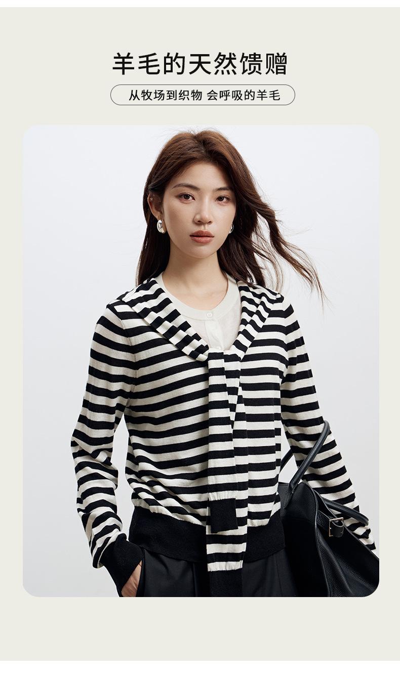 Lace up, round neck, stripe, knitting, irregular, Two fake pieces, Contrasting colors, cross straps, Color matching