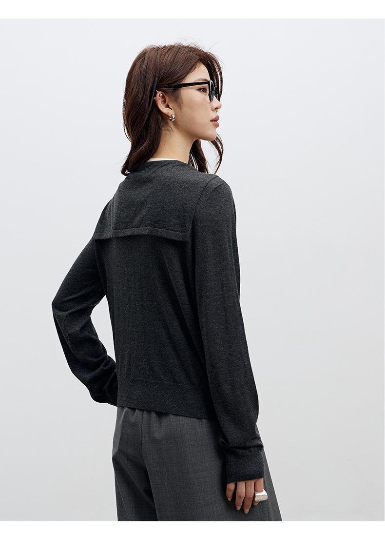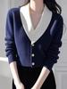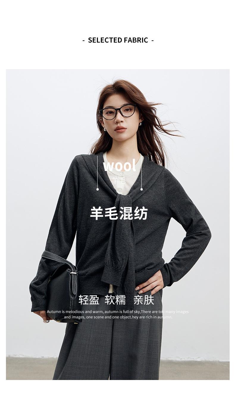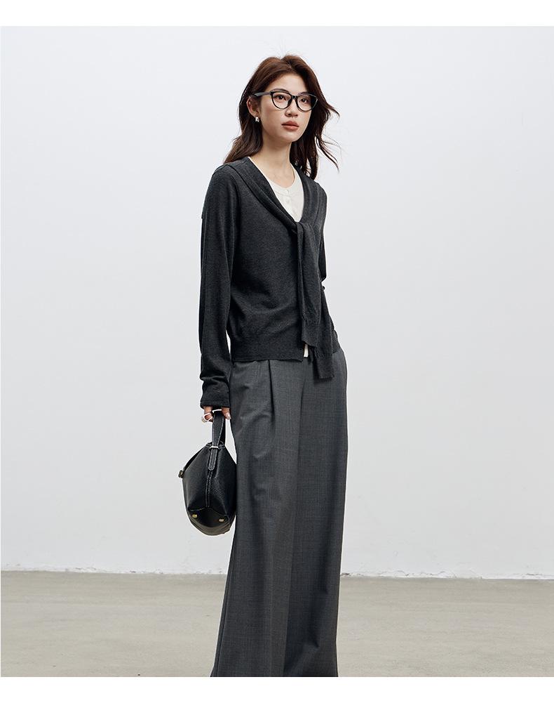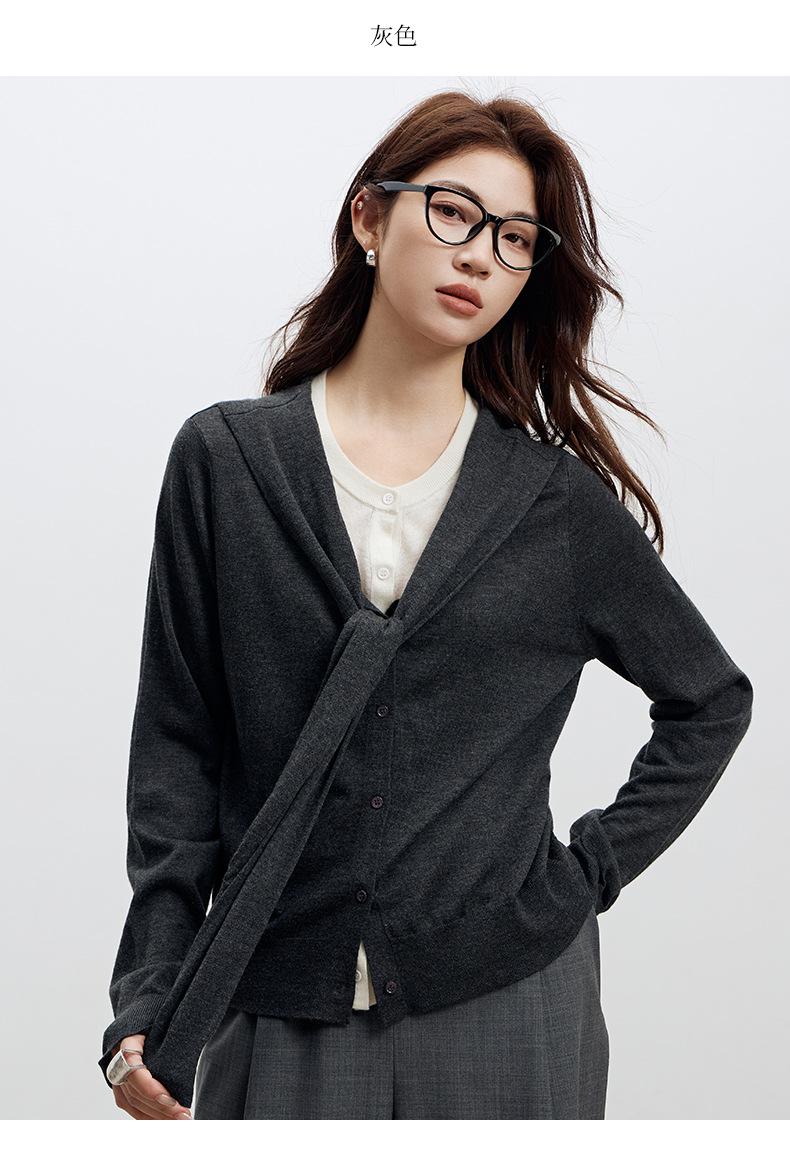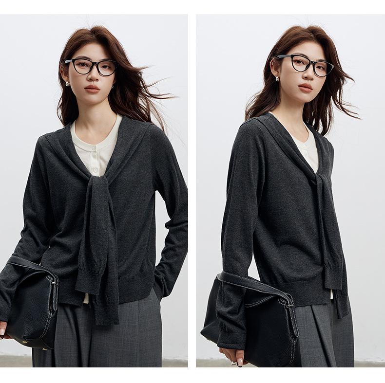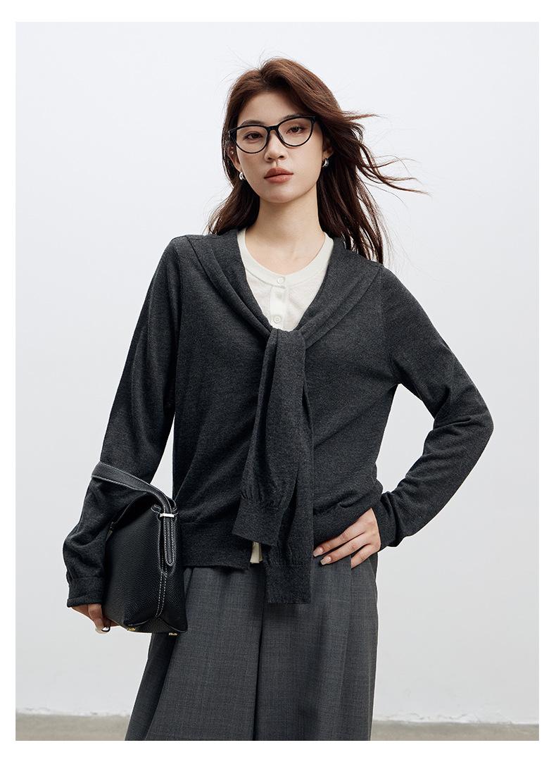 Top de Punto de Lana de Diseño Sensorial de Dos Piezas Falsas con Bloque de Color y Cordones 25 Nuevo Suéter Adelgazante para Mujer de Otoño de Estilo Coreano