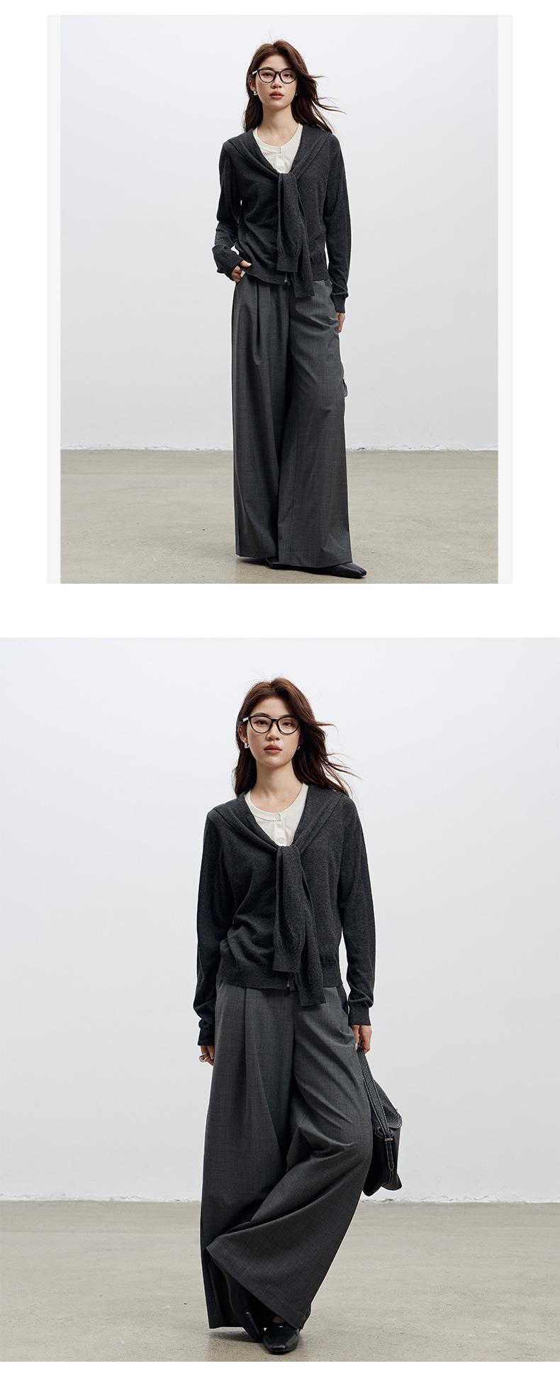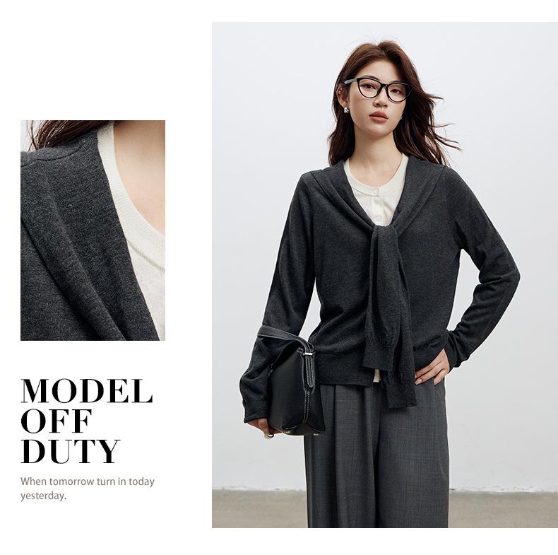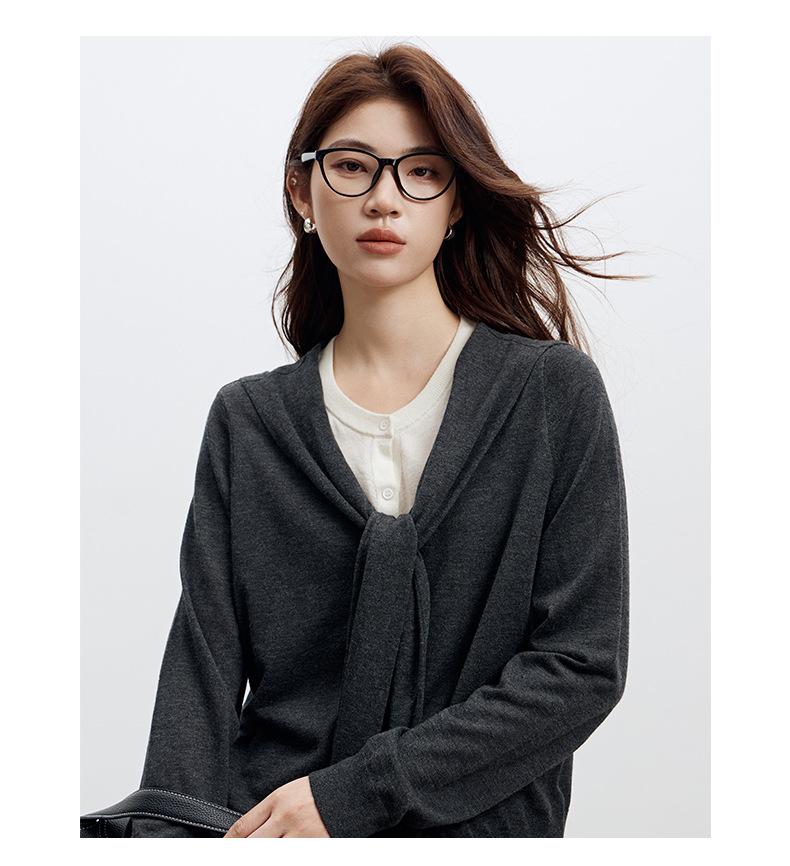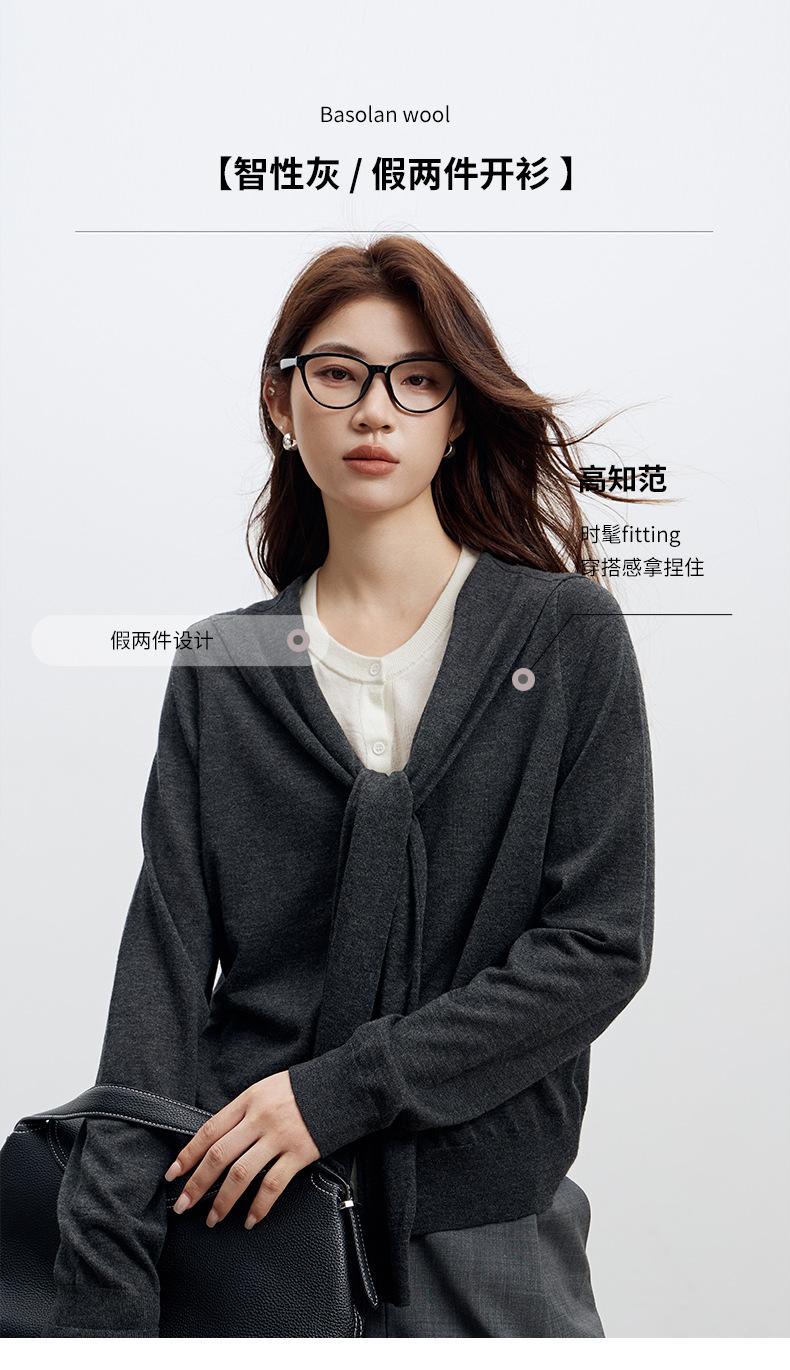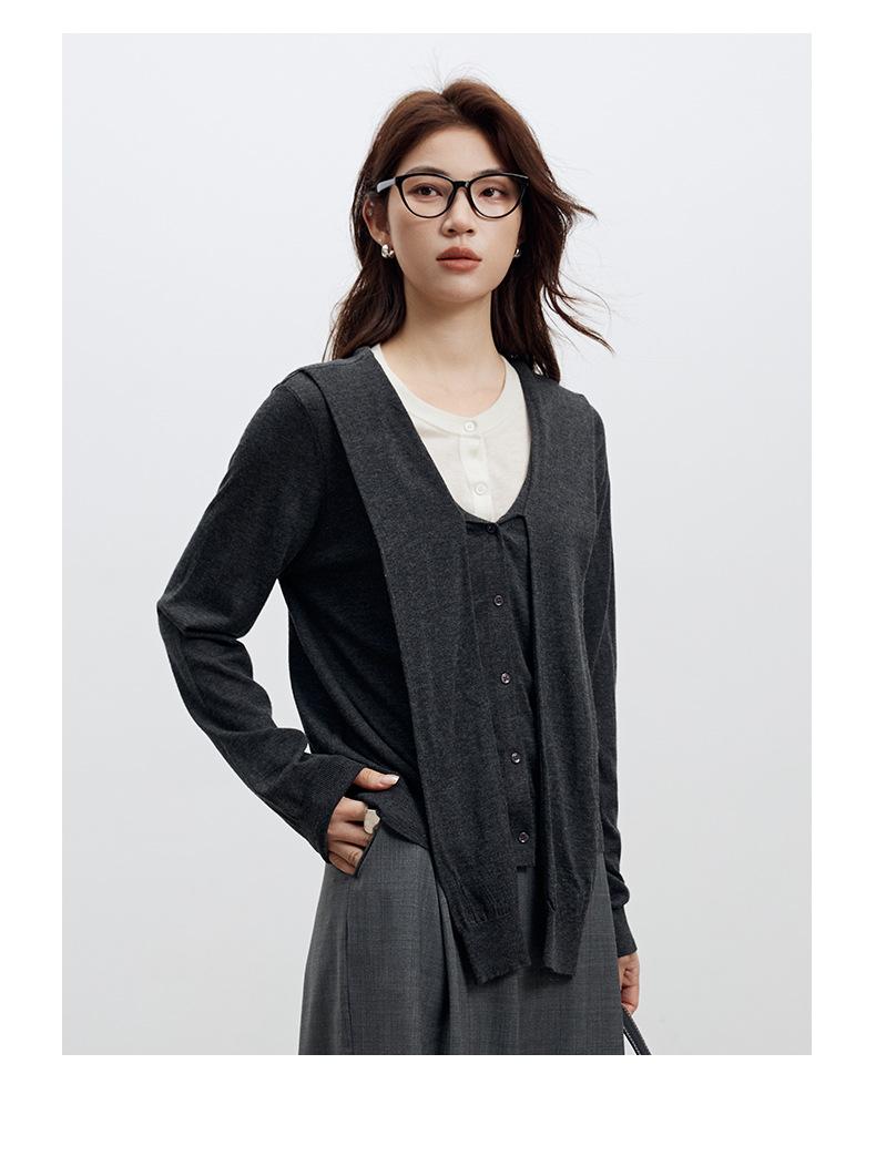Top de Punto de Lana de Diseño Sensorial de Dos Piezas Falsas con Bloque de Color y Cordones 25 Nuevo Suéter Adelgazante para Mujer de Otoño de Estilo Coreano