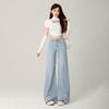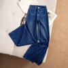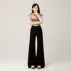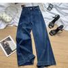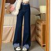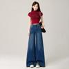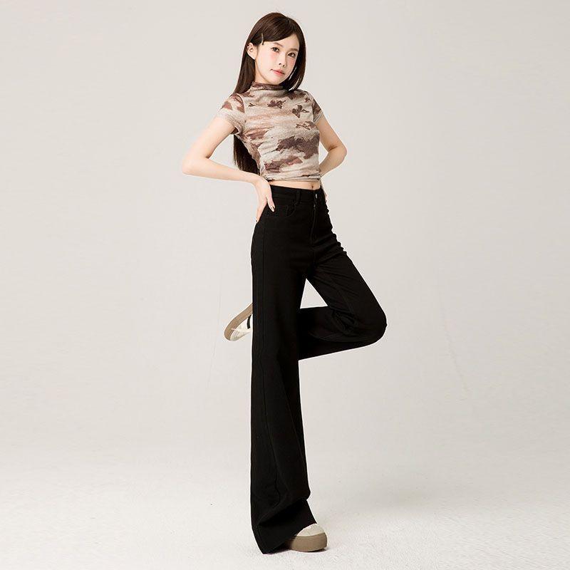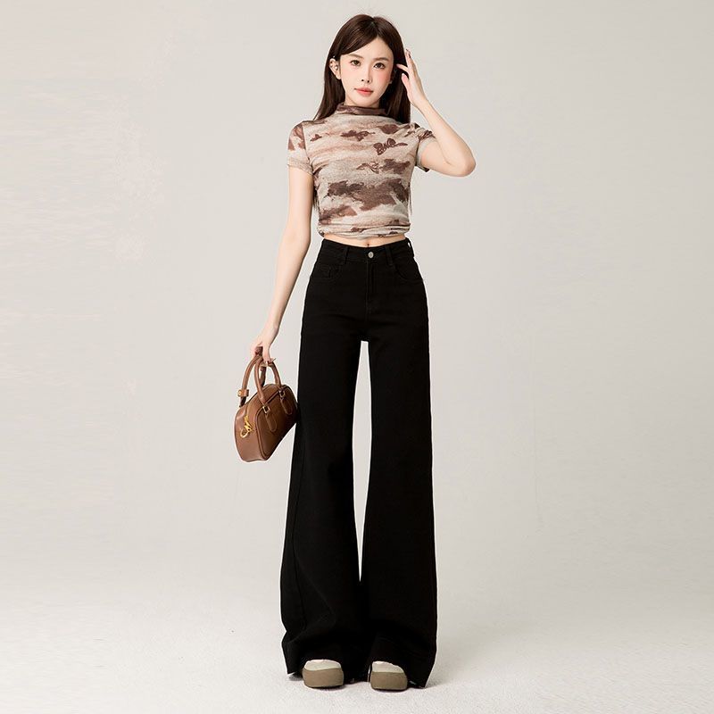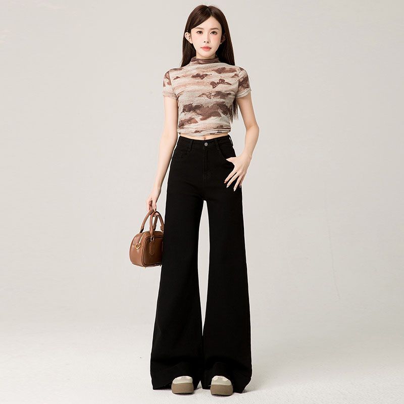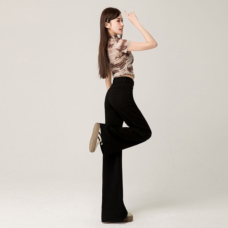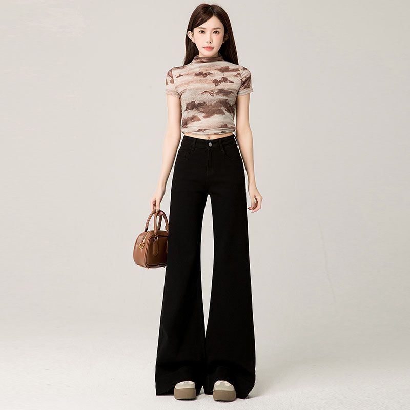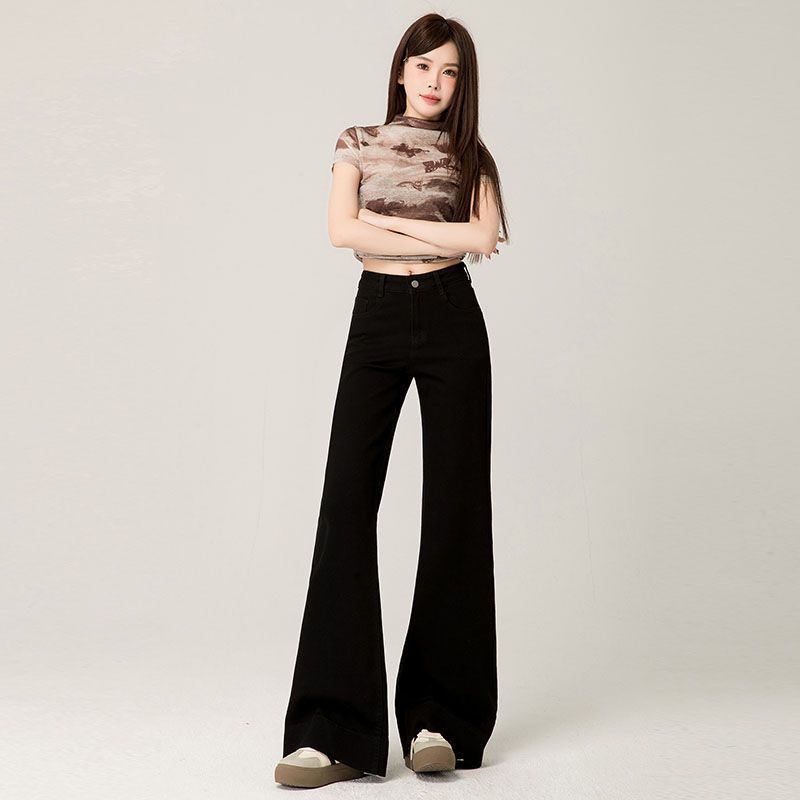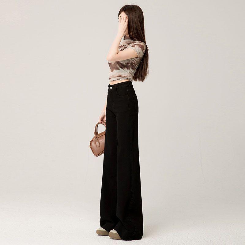 Jeans Negros Versátiles Adelgazantes de Cintura Alta Petite Pierna Ancha 2025 Pantalones Elásticos Largos hasta el Piso para Mujer
