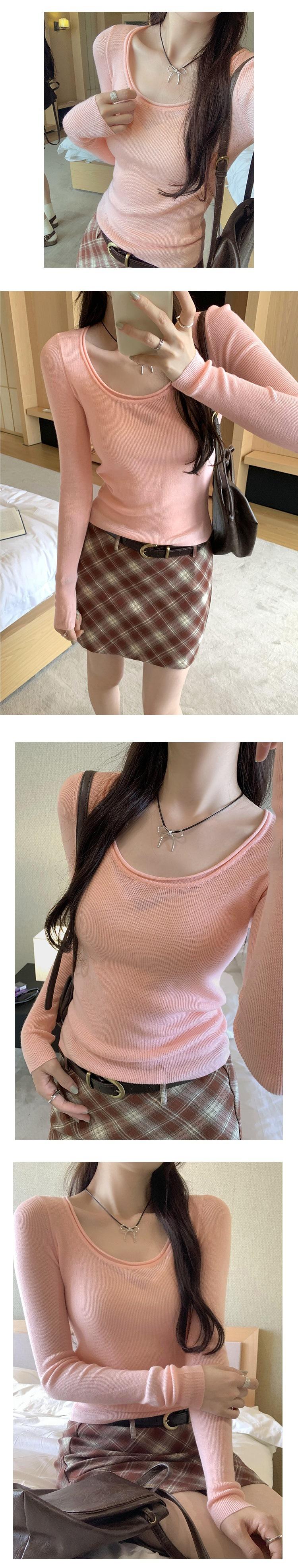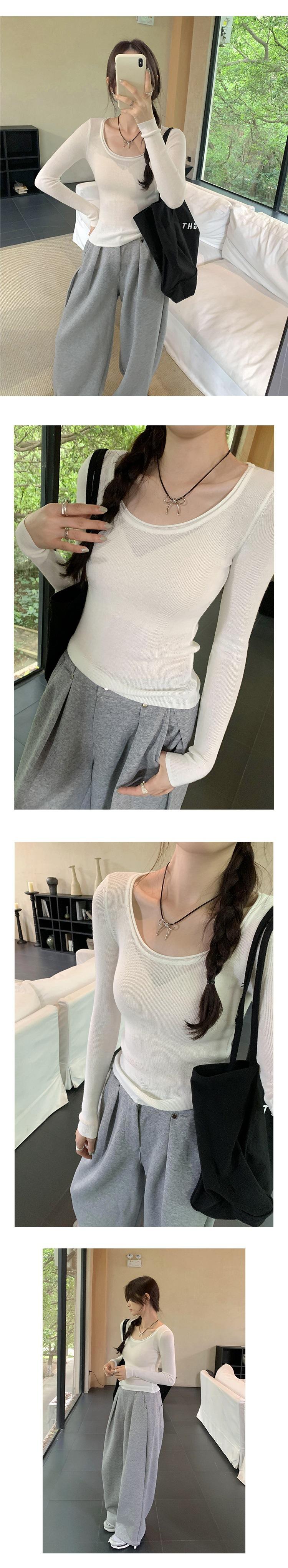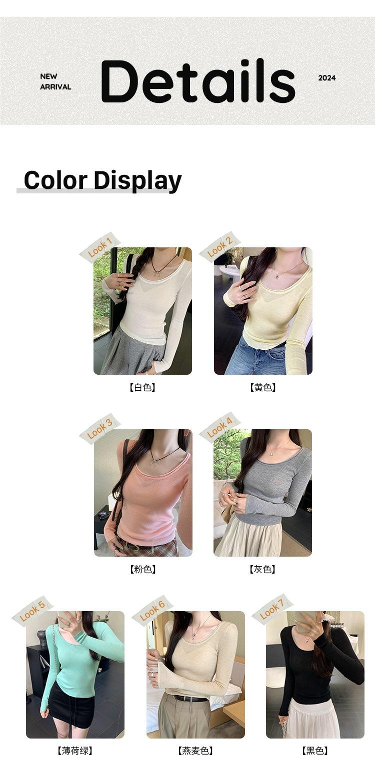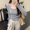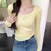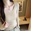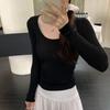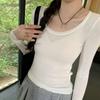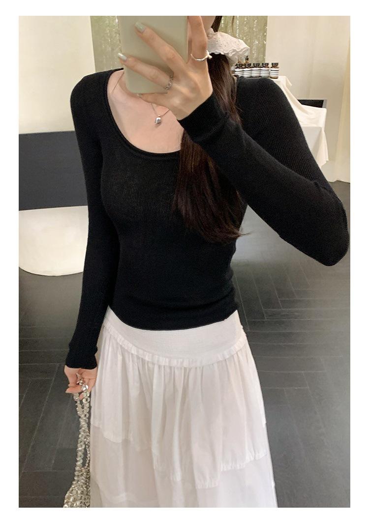 Top de Punto de Manga Larga Delgado y Adelgazante de Estilo Suave Coreano para Mujer, Primavera y Otoño, Capa Base Interior de Gama Alta