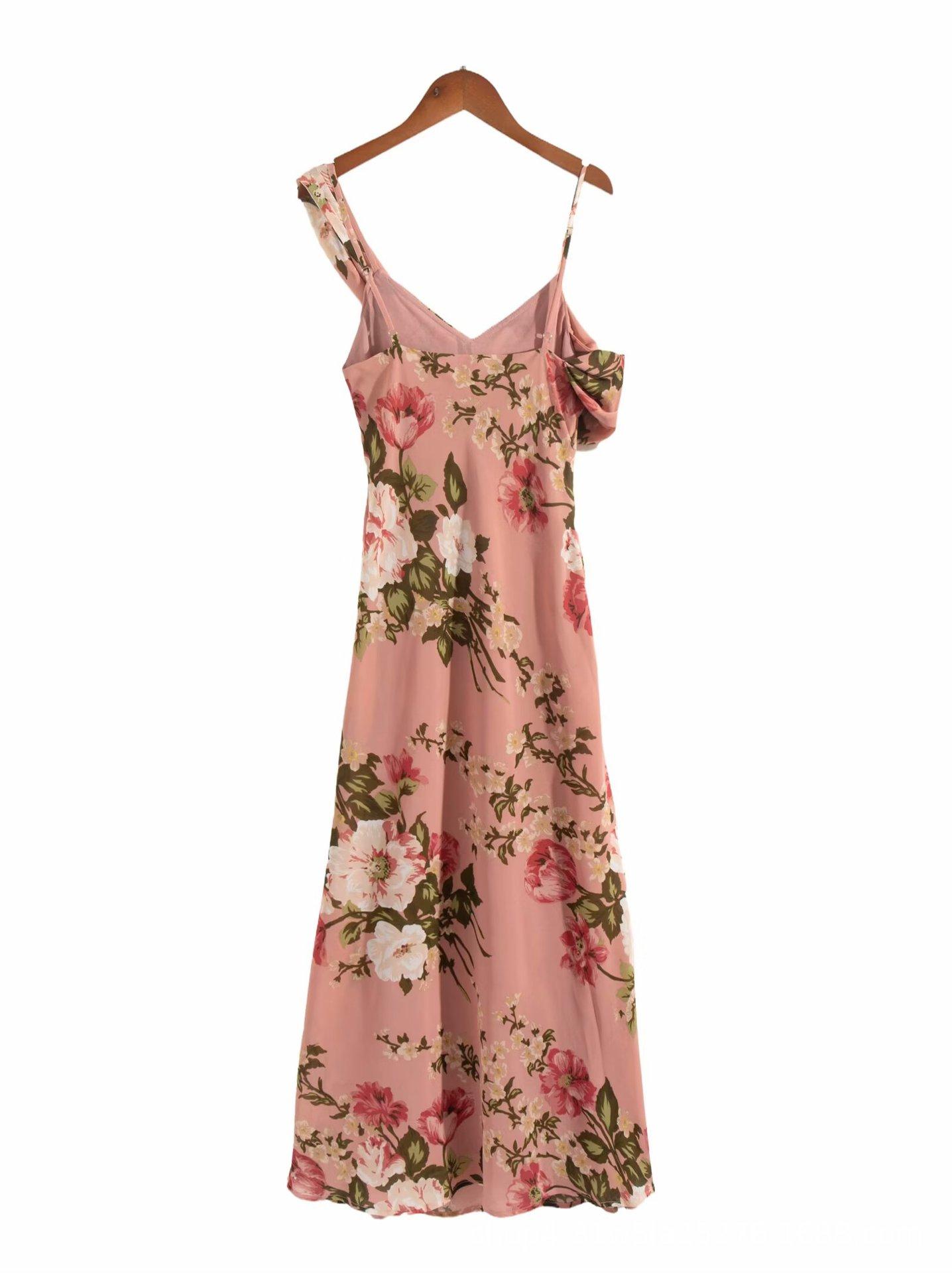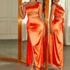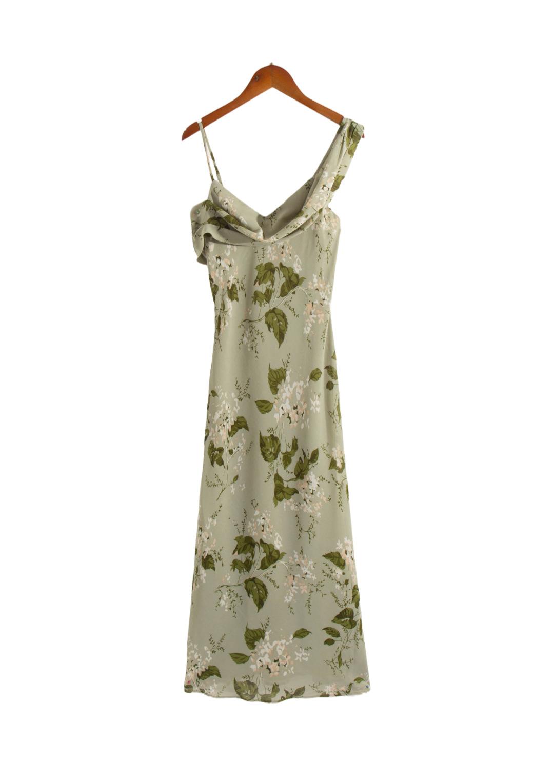 Vestido estilo europeo y americano de nuevo estilo con cuello drapeado, tirantes, corte ajustado adelgazante de un hombro, estilo diosa con corte oblicuo