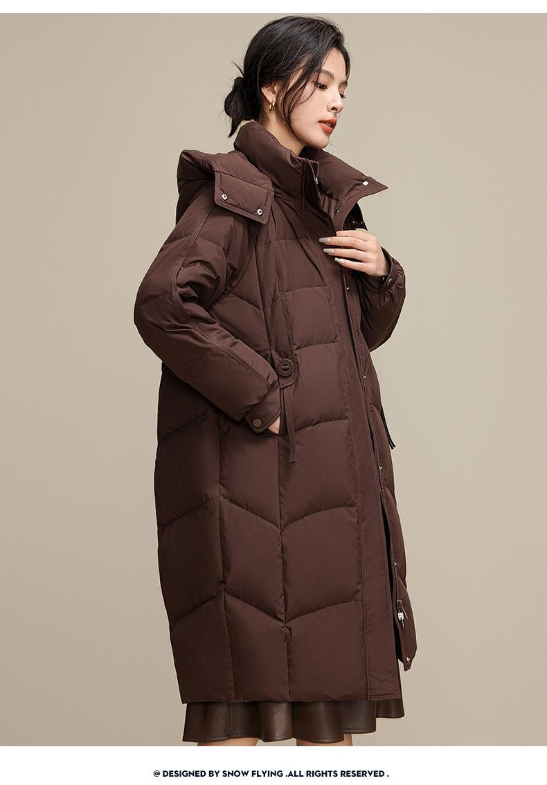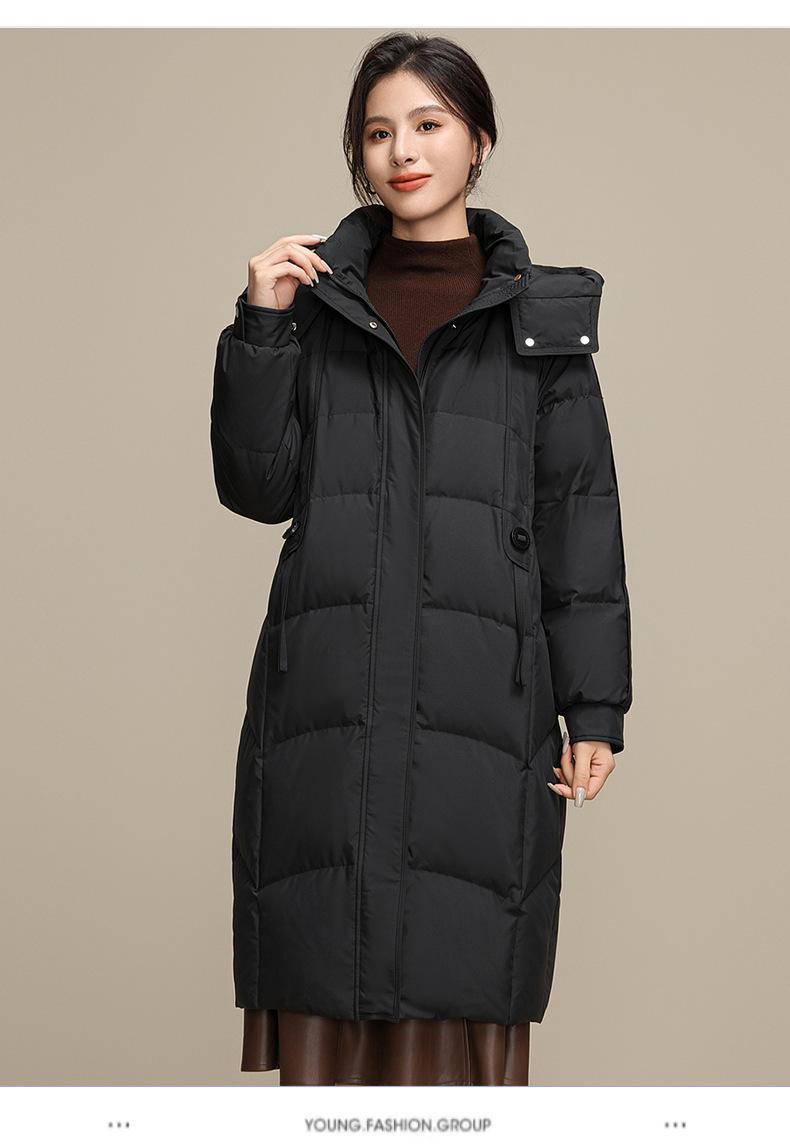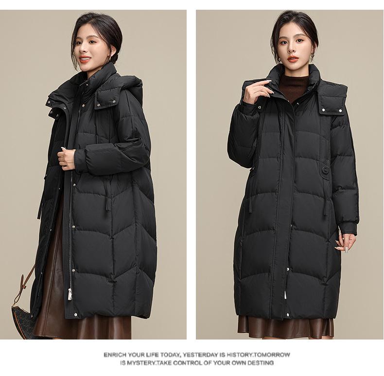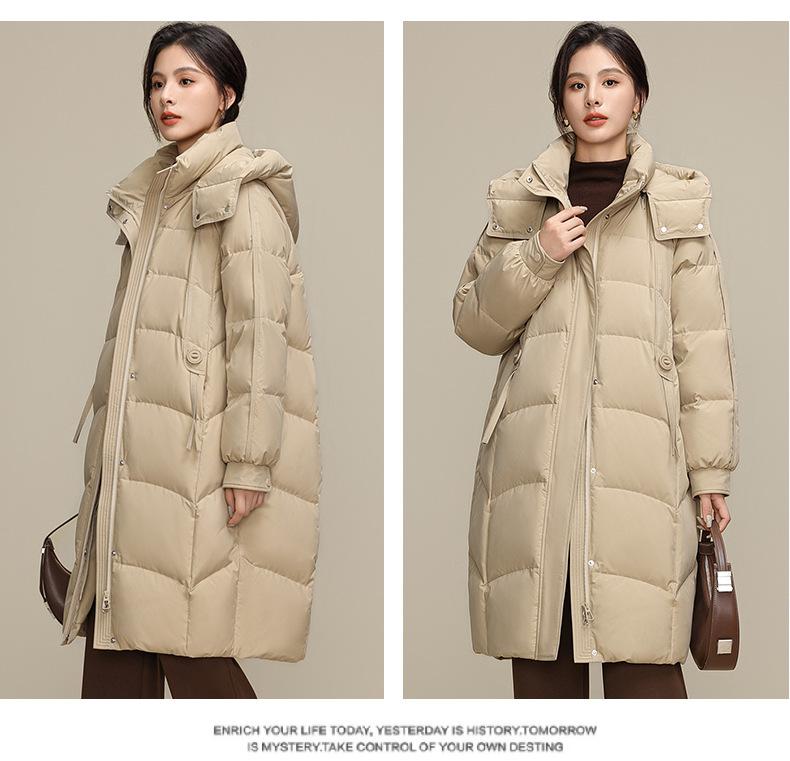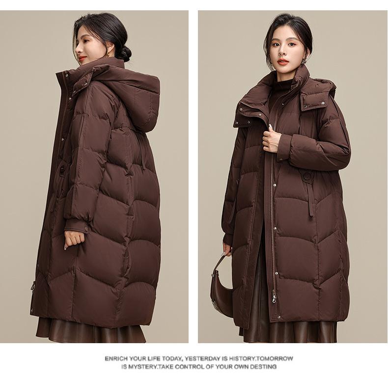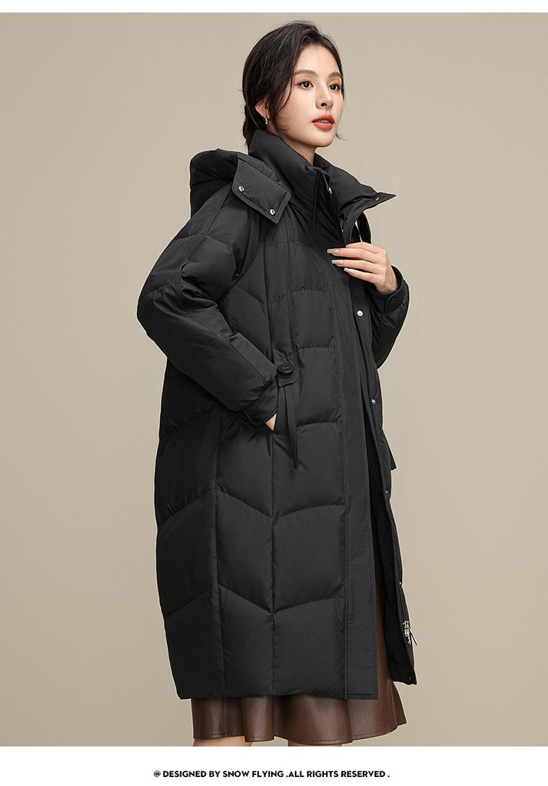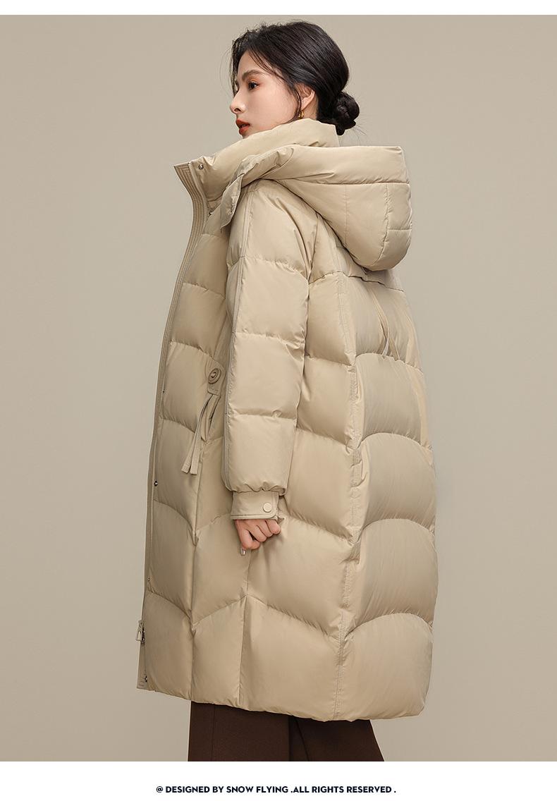 Chaqueta de plumón para nieve para mujer de longitud media por encima de la rodilla 2025 Invierno Nuevo con capucha engrosada cálida para mujer de mediana edad