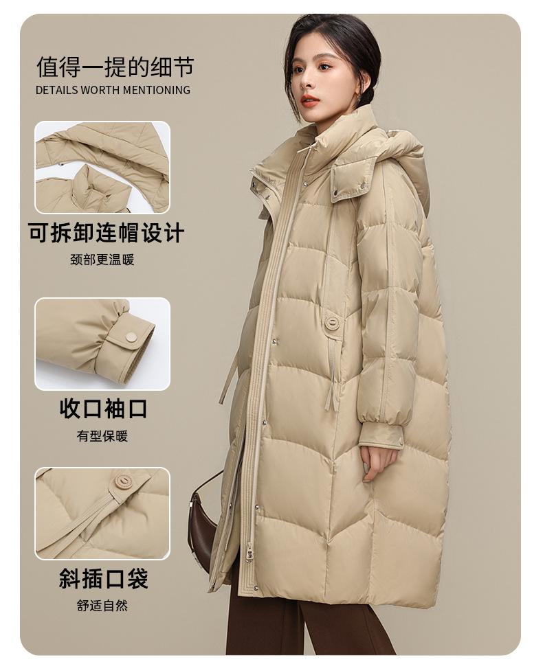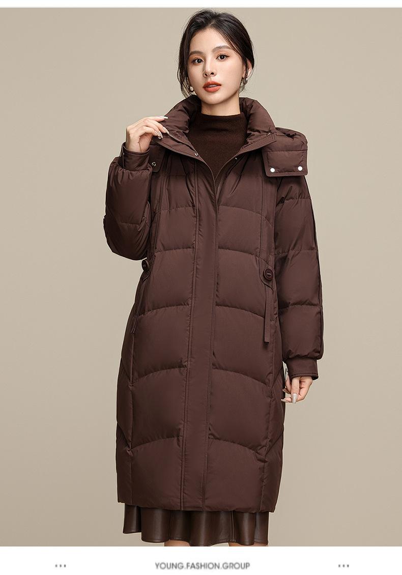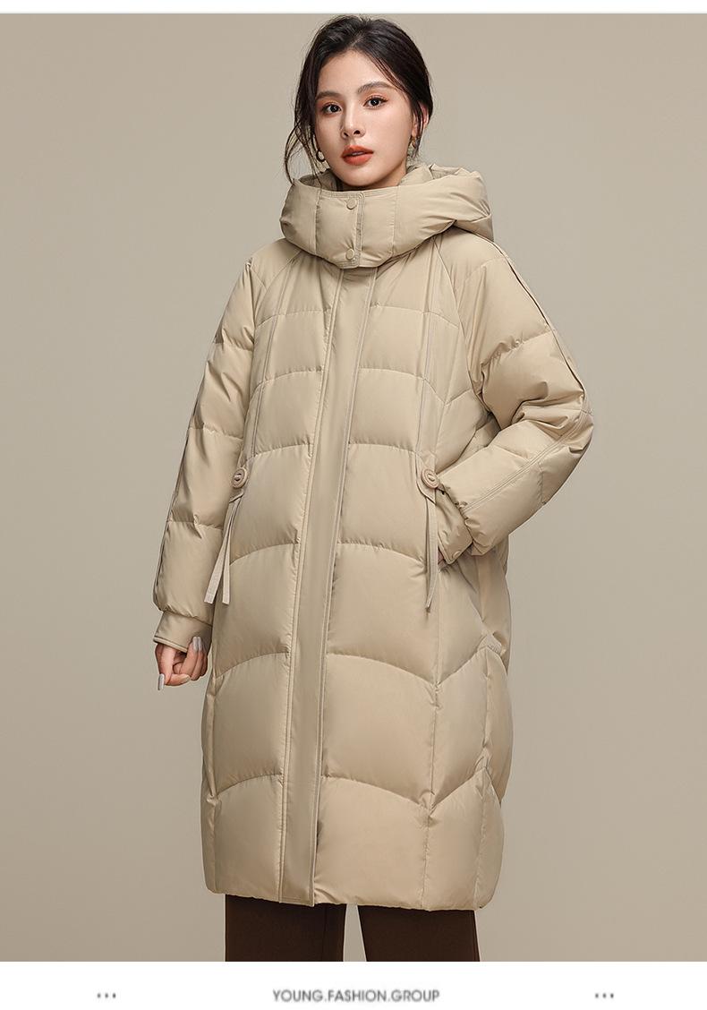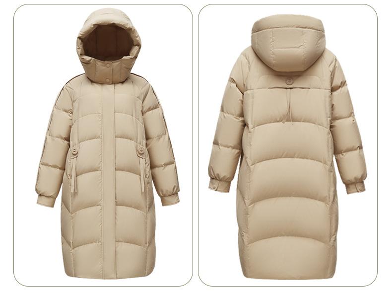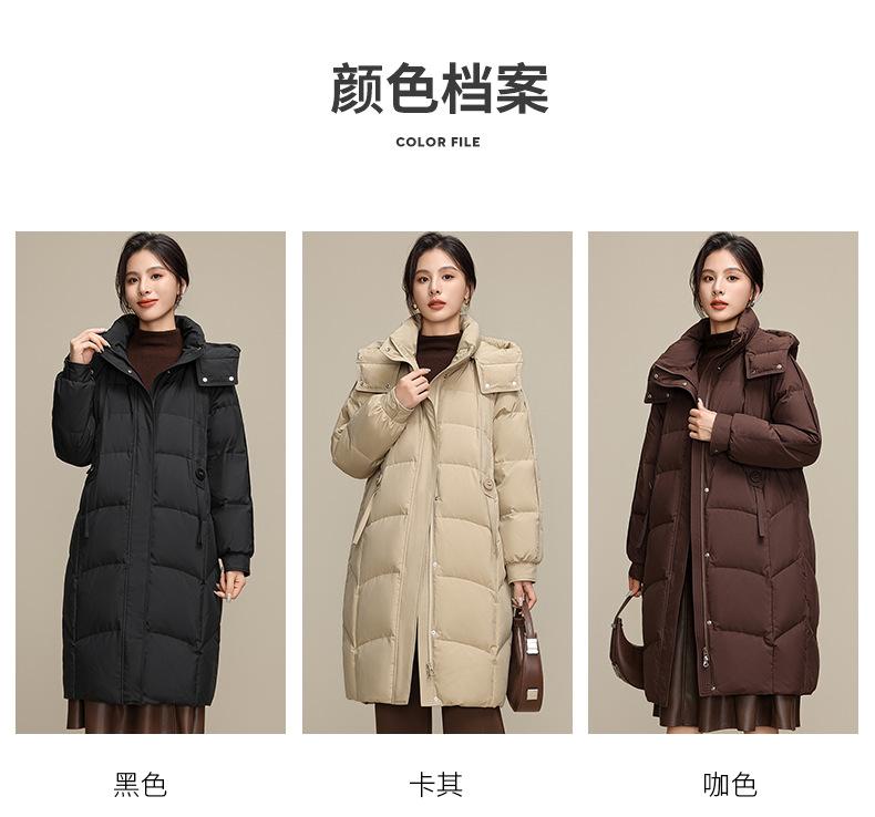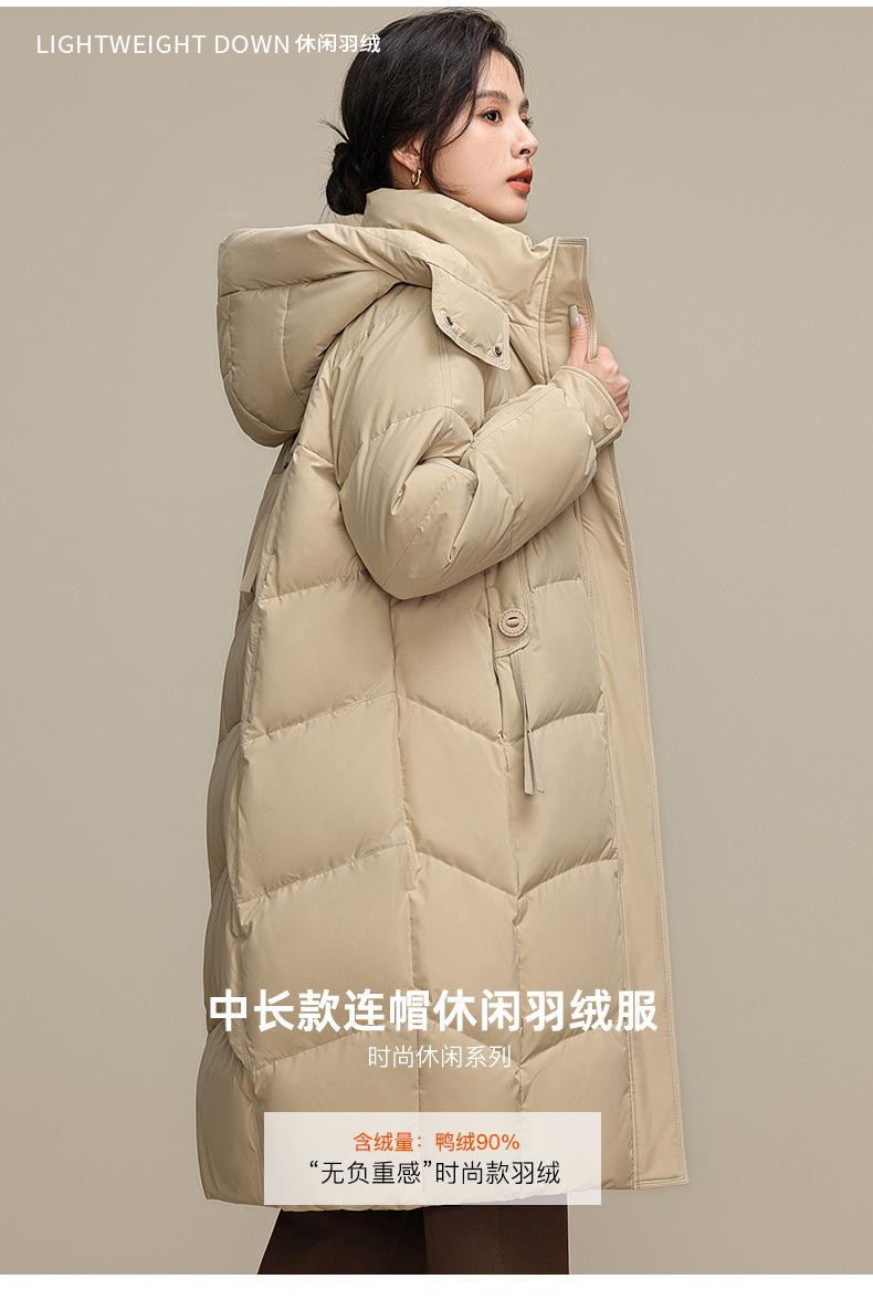 Chaqueta de plumón para nieve para mujer de longitud media por encima de la rodilla 2025 Invierno Nuevo con capucha engrosada cálida para mujer de mediana edad