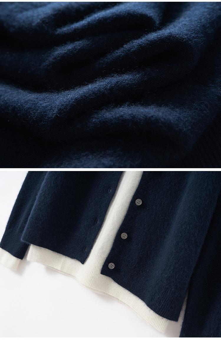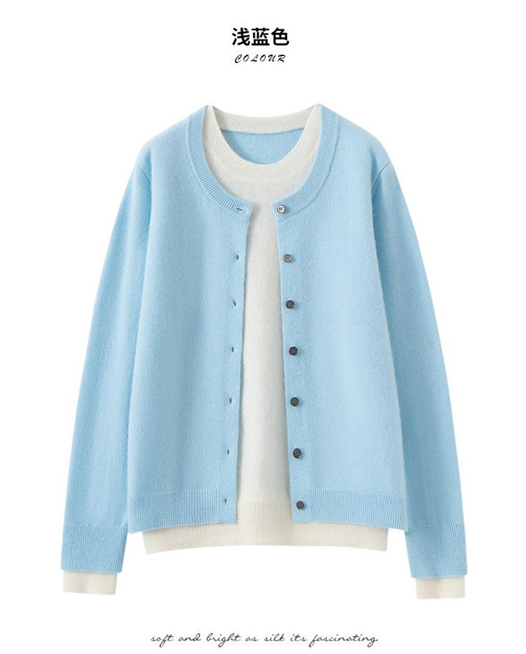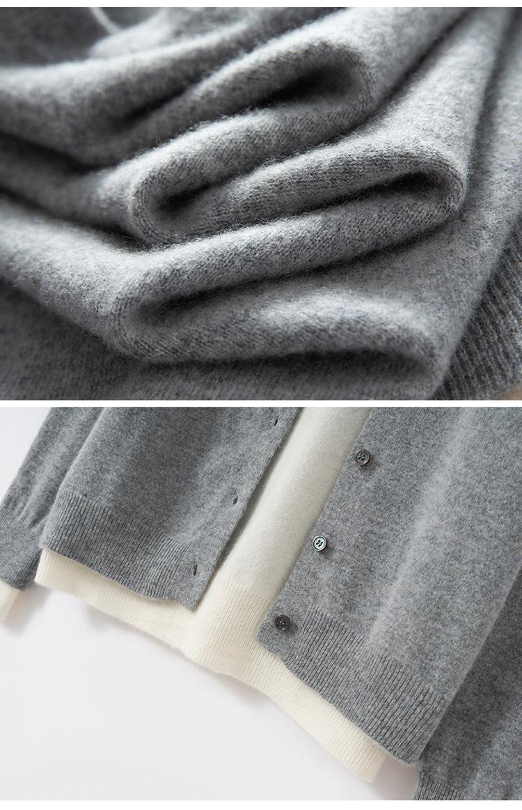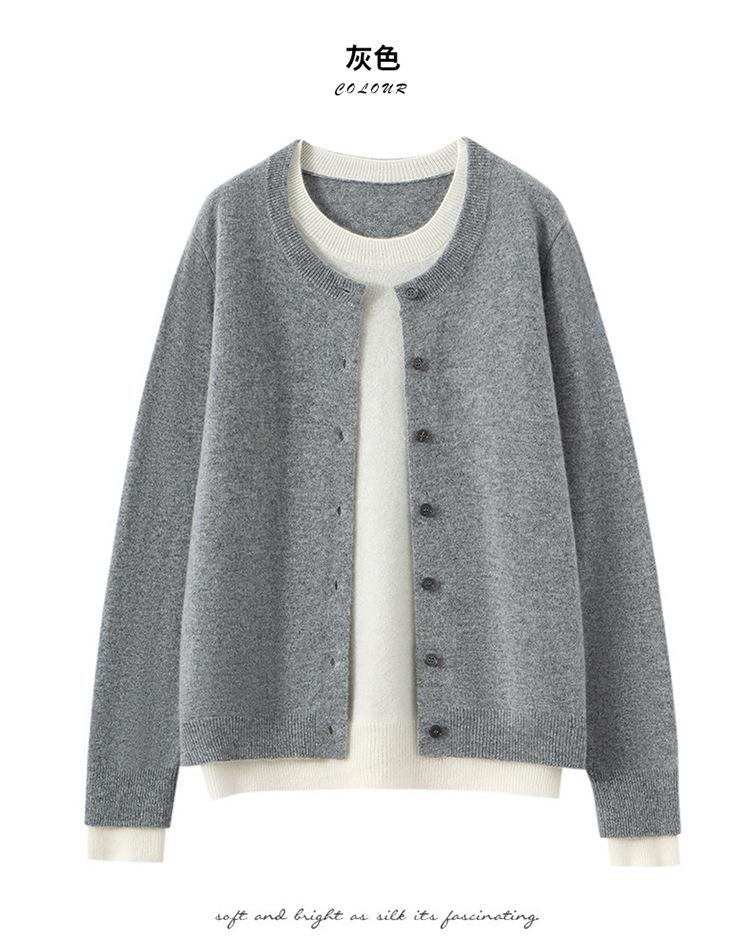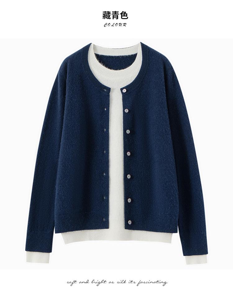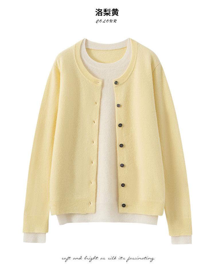 Nuevo Cárdigan de Otoño Cashmere Falso de Dos Piezas para Mujer Cuello Redondo Suéter de Punto Holgado Versátil Abrigo de Lana Adelgazante