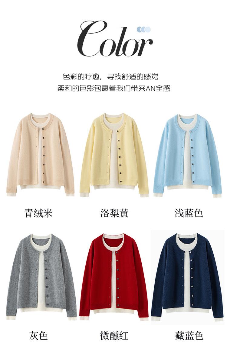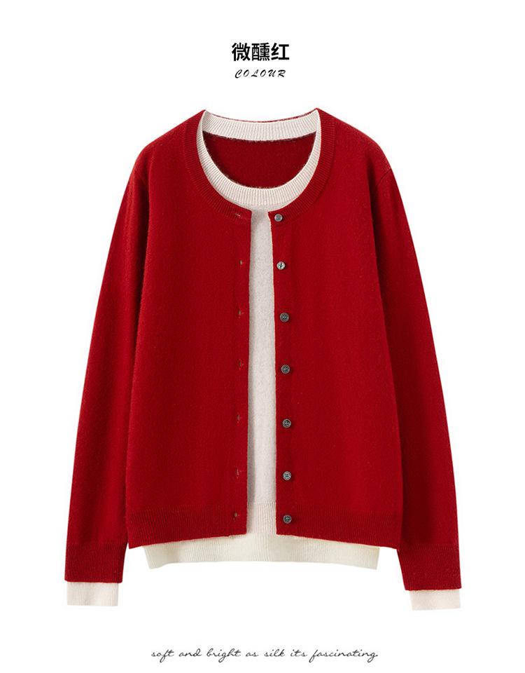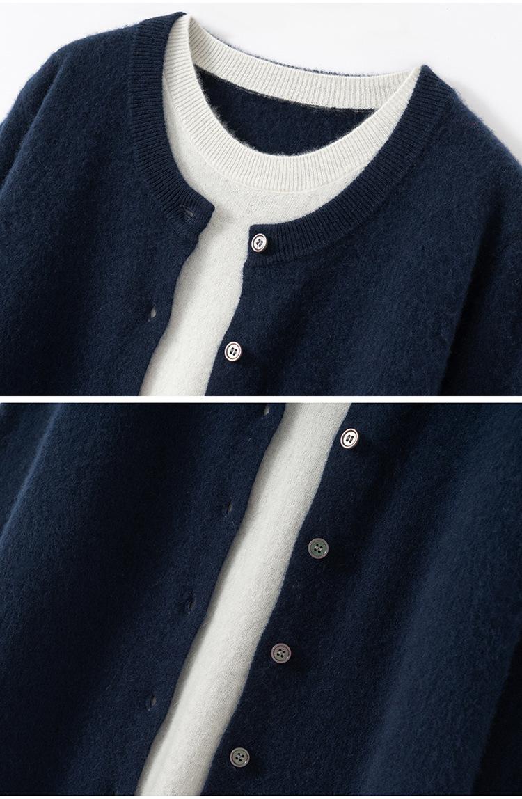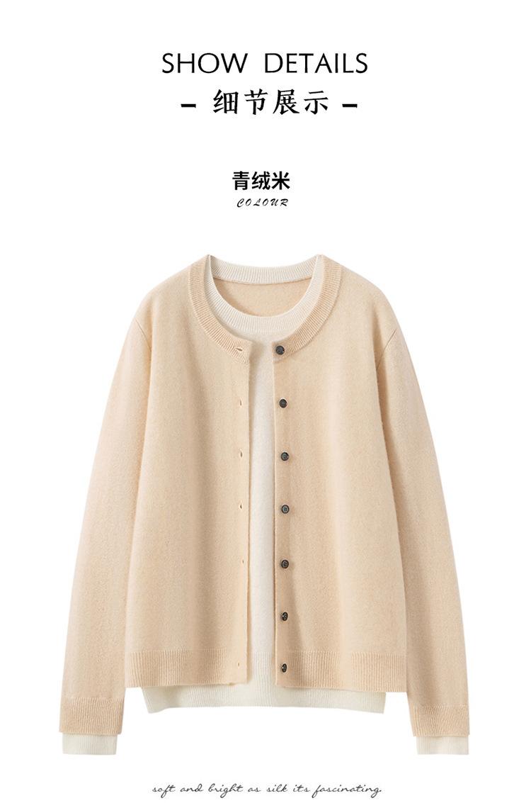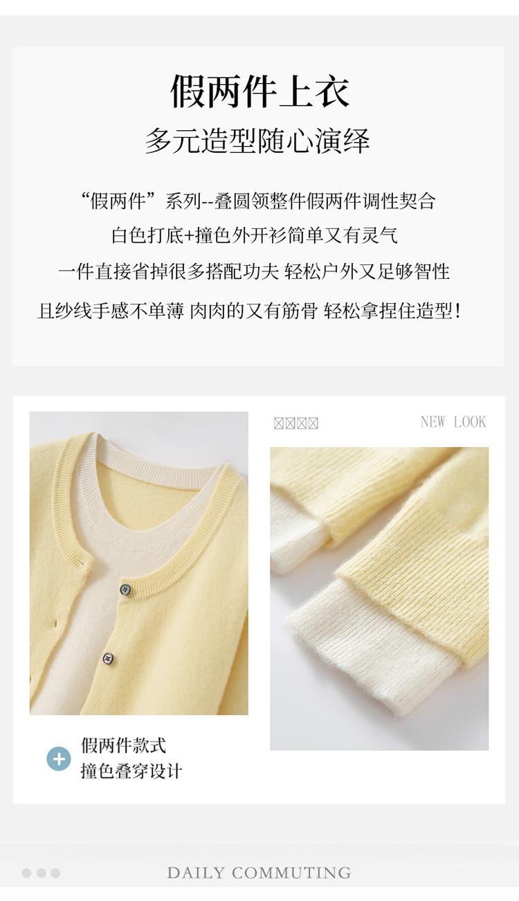 Nuevo Cárdigan de Otoño Cashmere Falso de Dos Piezas para Mujer Cuello Redondo Suéter de Punto Holgado Versátil Abrigo de Lana Adelgazante