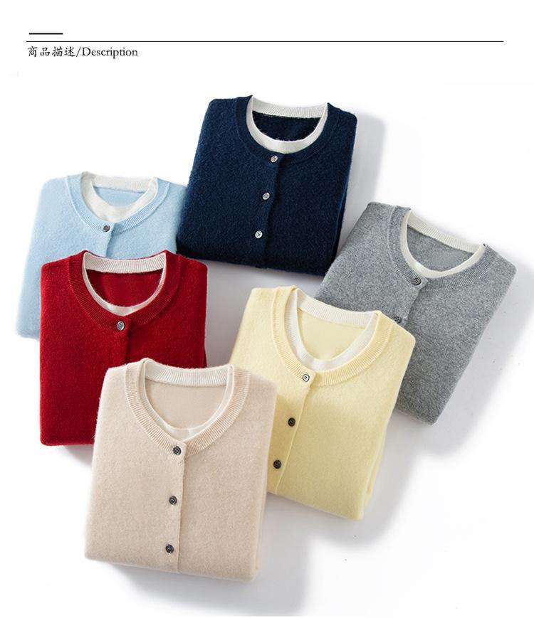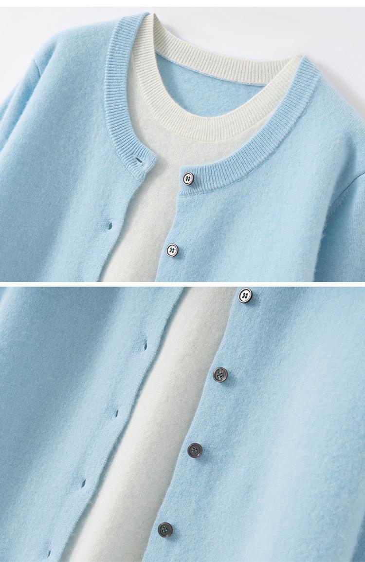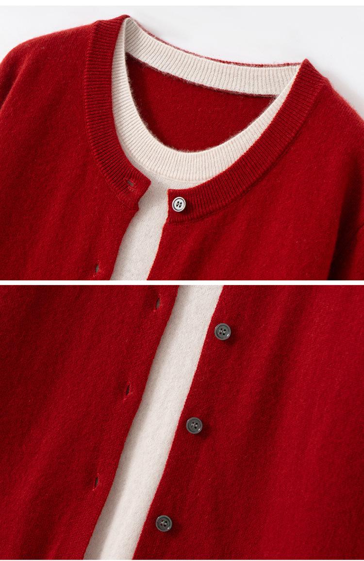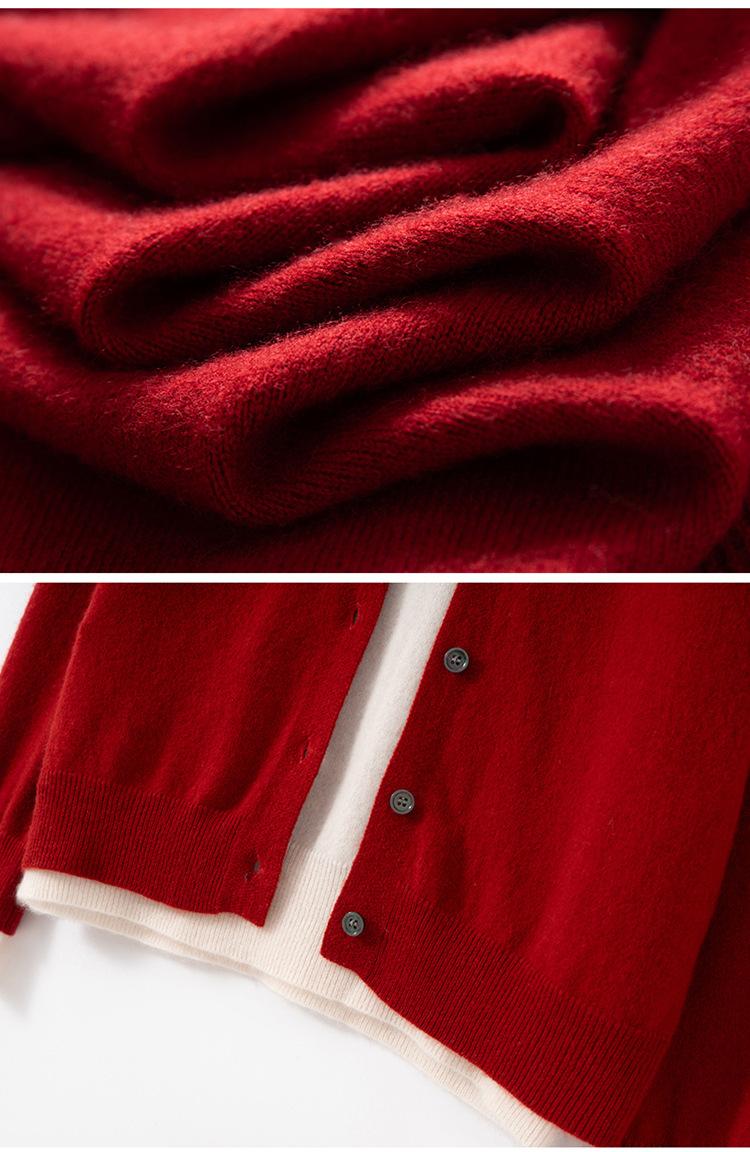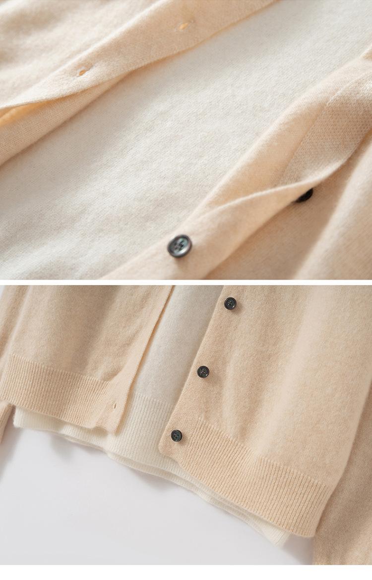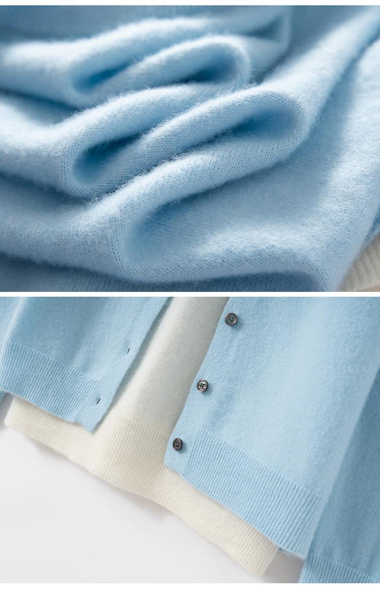 Nuevo Cárdigan de Otoño Cashmere Falso de Dos Piezas para Mujer Cuello Redondo Suéter de Punto Holgado Versátil Abrigo de Lana Adelgazante