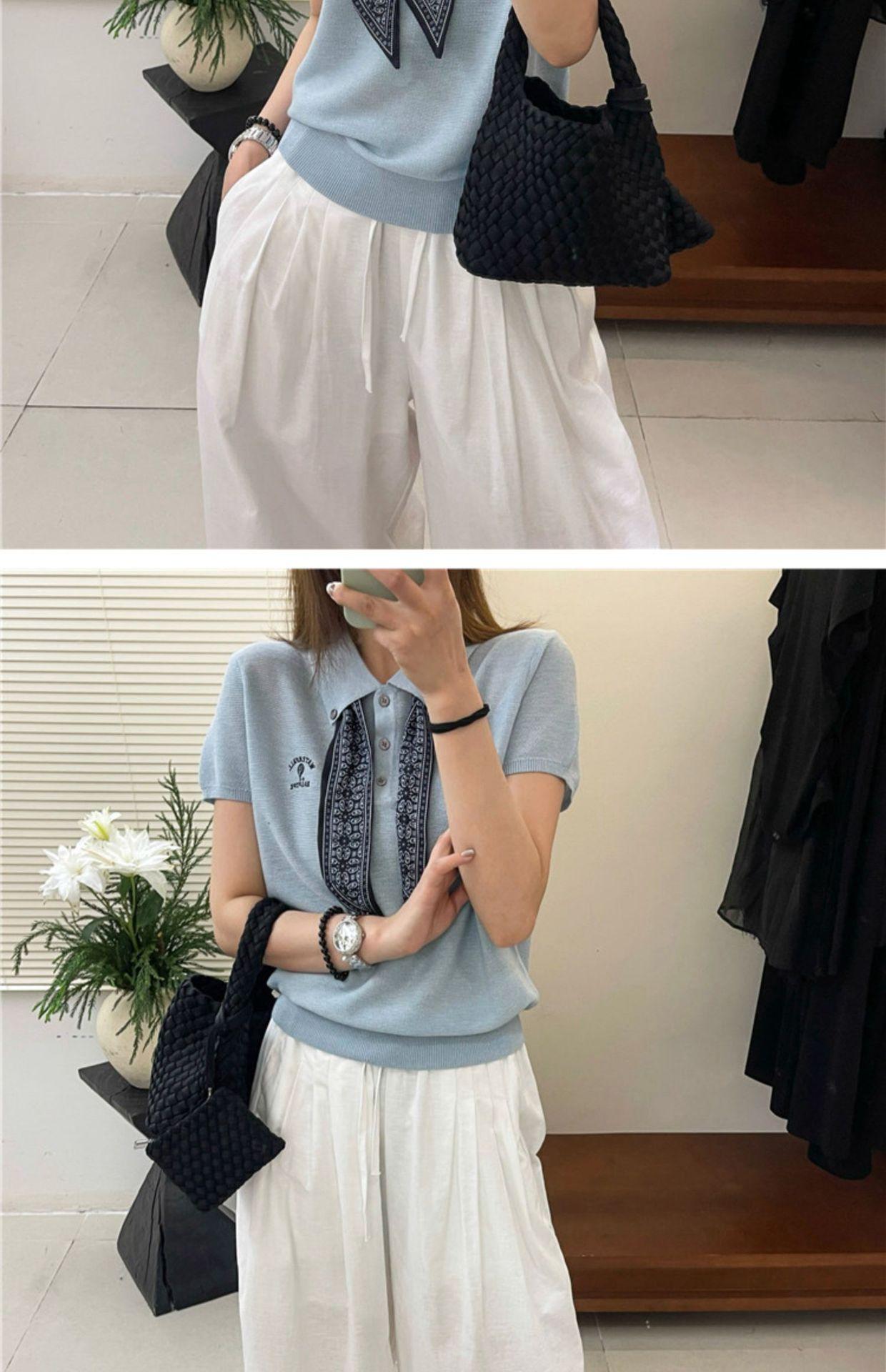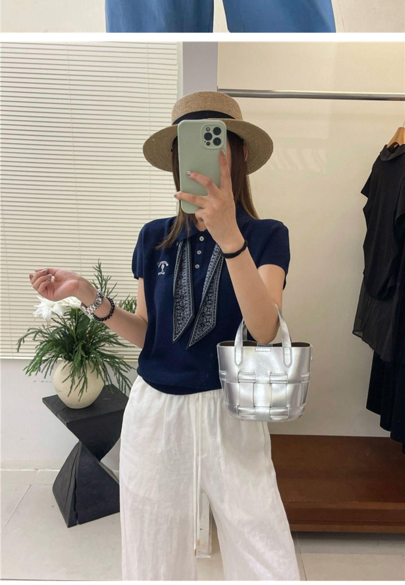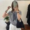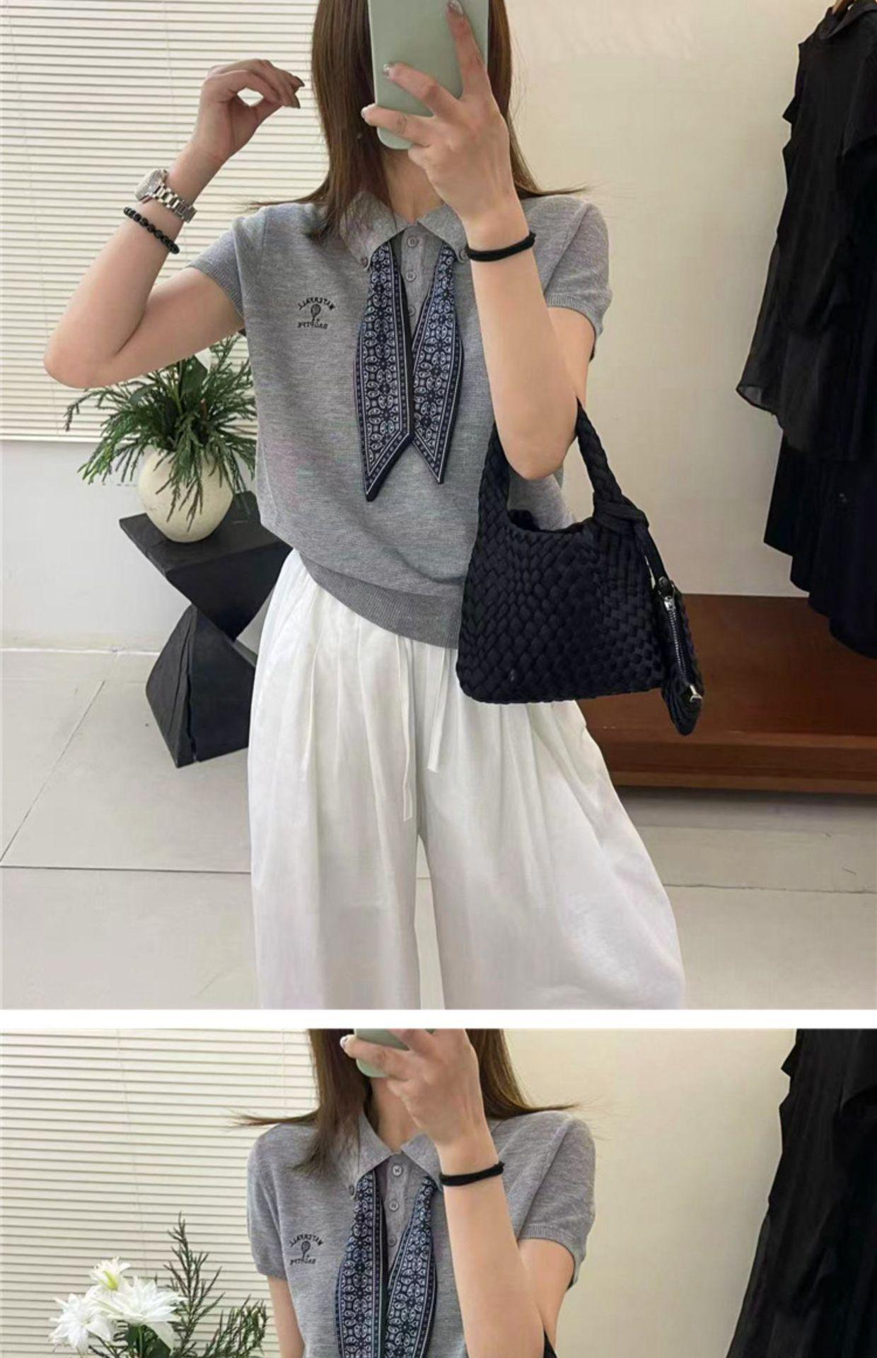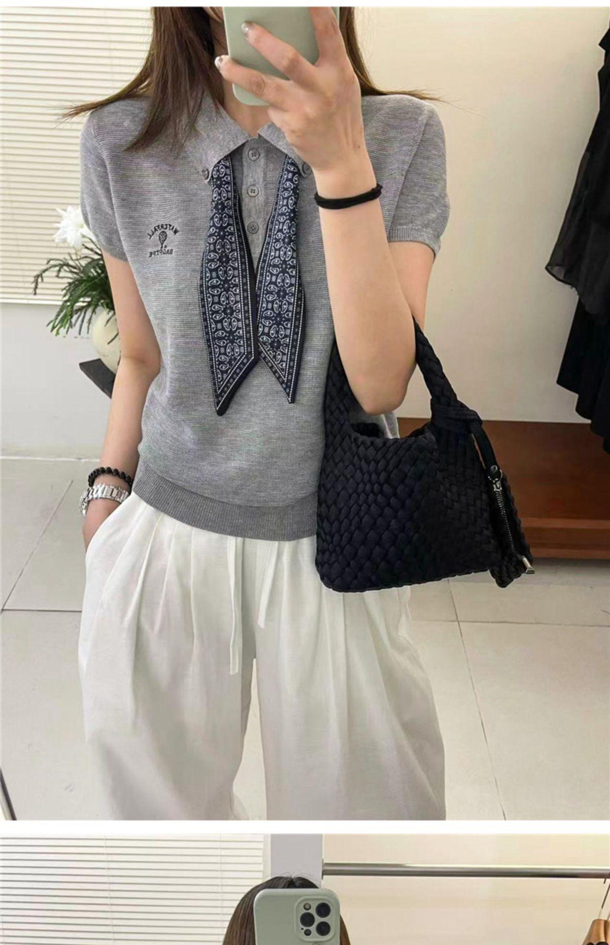 Suéter de Punto de Seda Helada de Moda para Mujer Verano 2025 con Cuello Bufanda