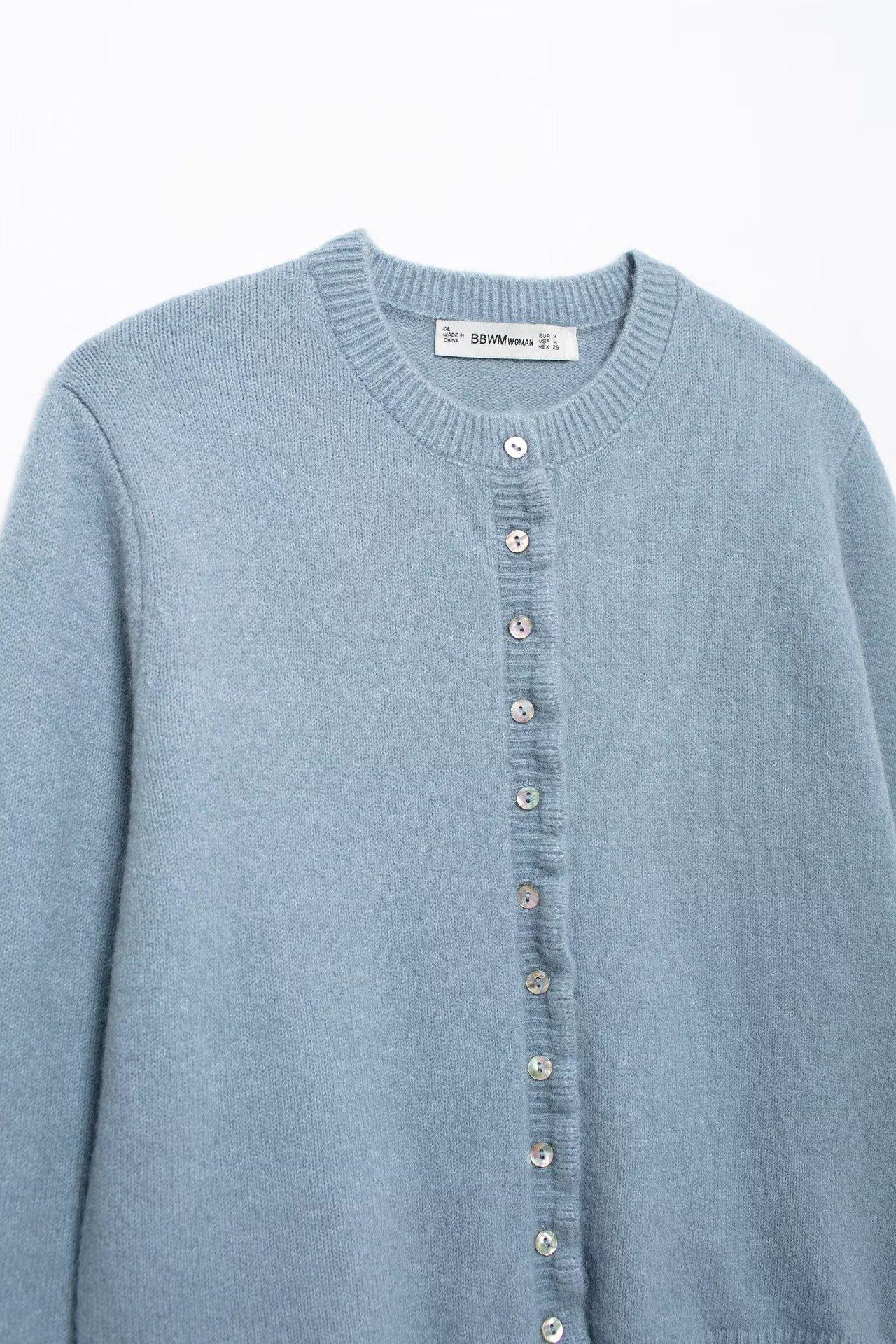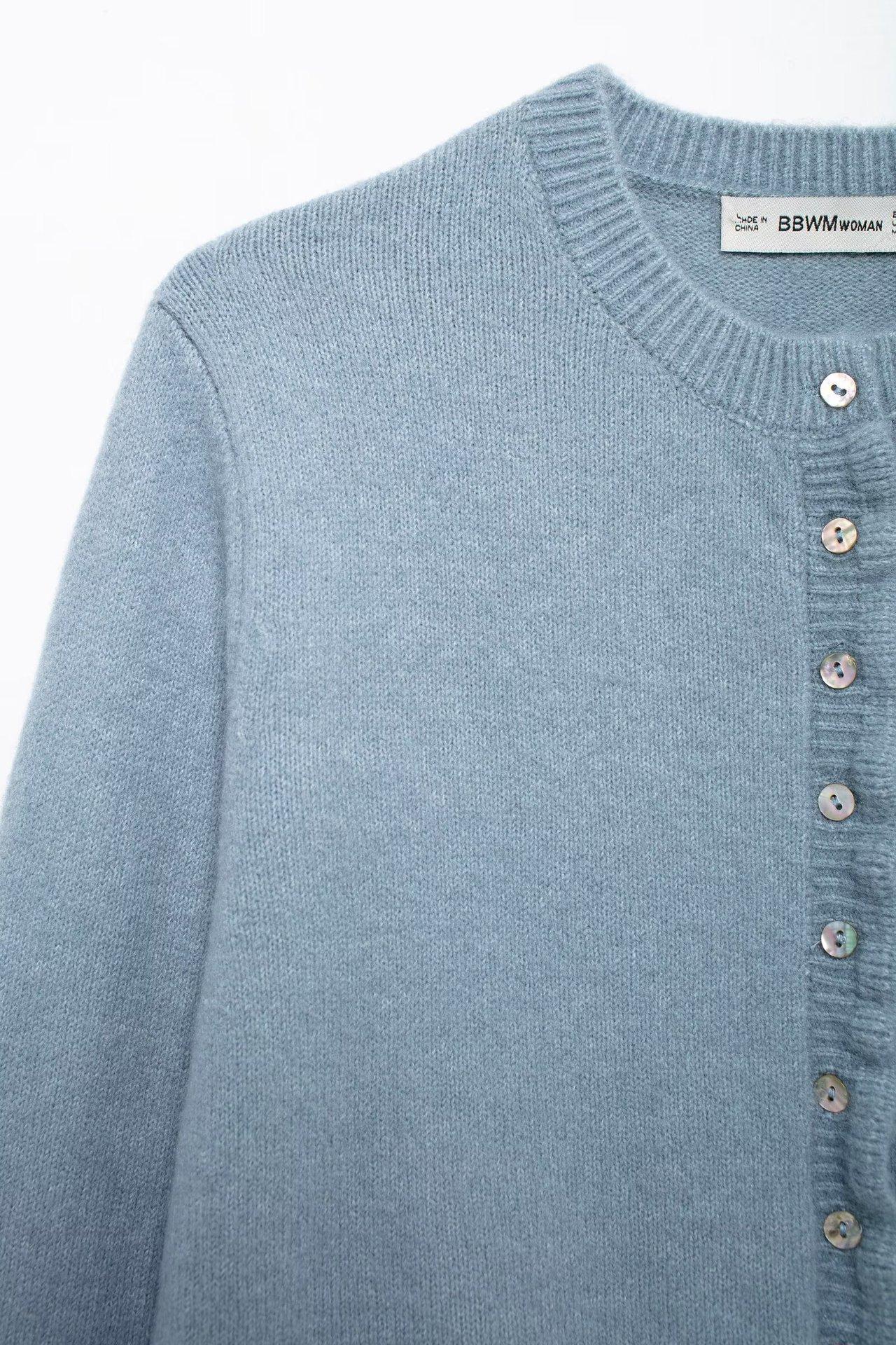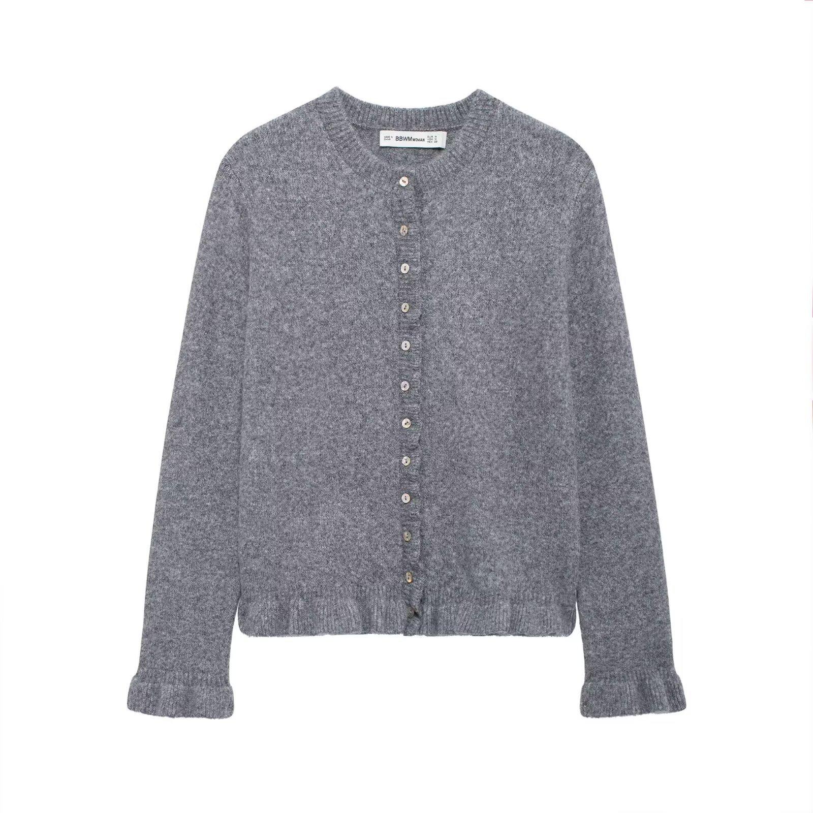 Cárdigan tejido decorativo en capas de estilo europeo y americano al por mayor transfronterizo 2025 moda de primavera con cuello redondo para mujer A35576