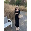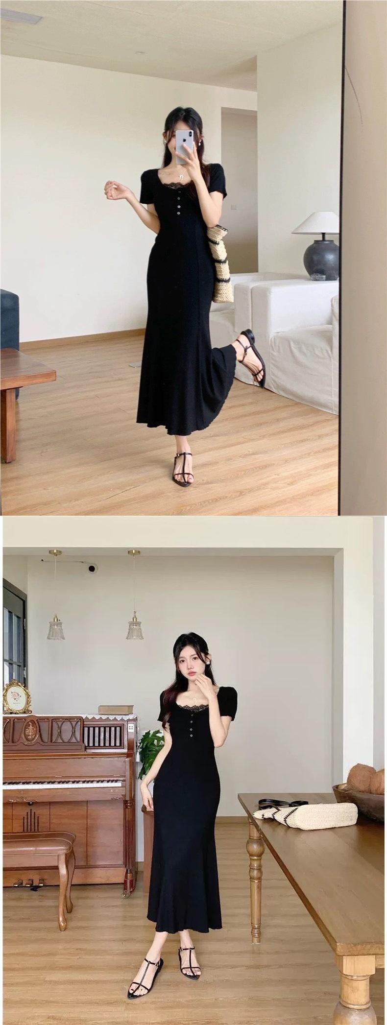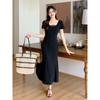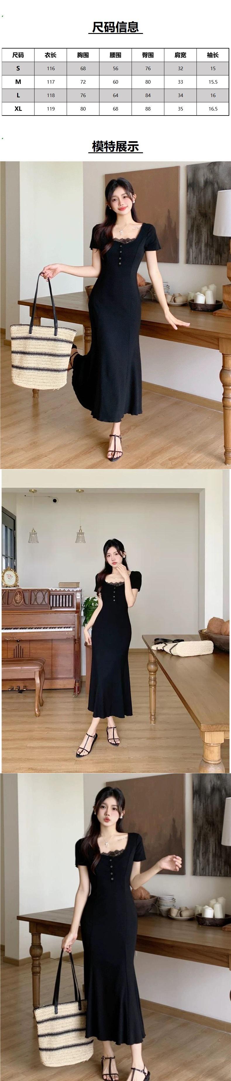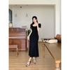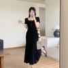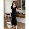 Vestido Negro Estilo Hepburn Francés para Mujer Verano 2025 Nuevo Temperamento Petite Cola de Pescado Ajustado Vestido Largo