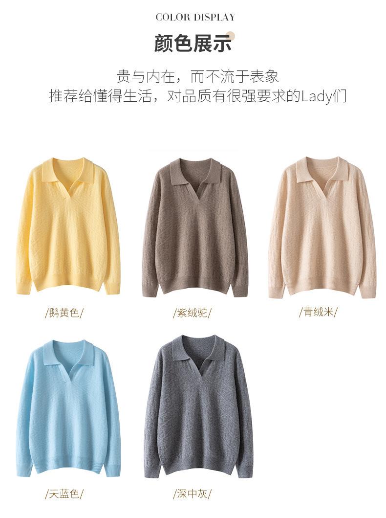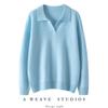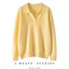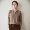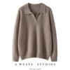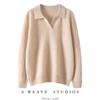 Suéter de Cachemira de Punto Cableado de Color Sólido para Mujer con Cuello POLO de Nuevo Estilo Otoño Temprano 2025, Manga Larga de Corte Holgado