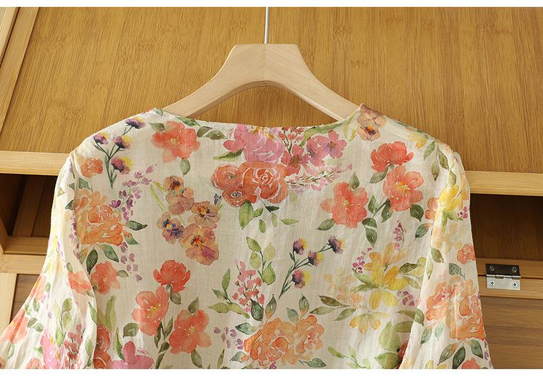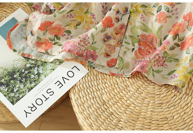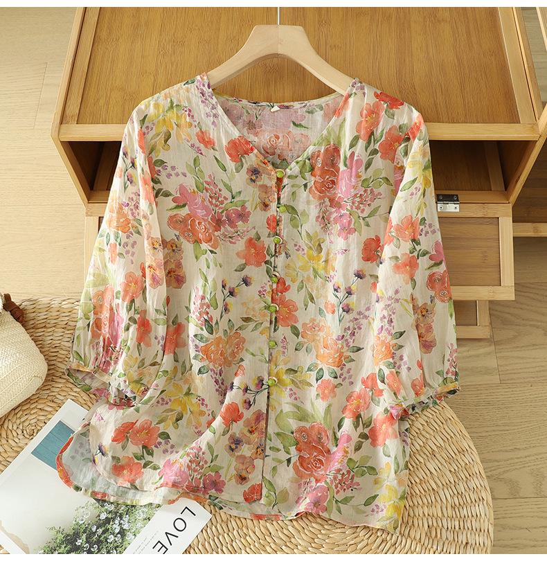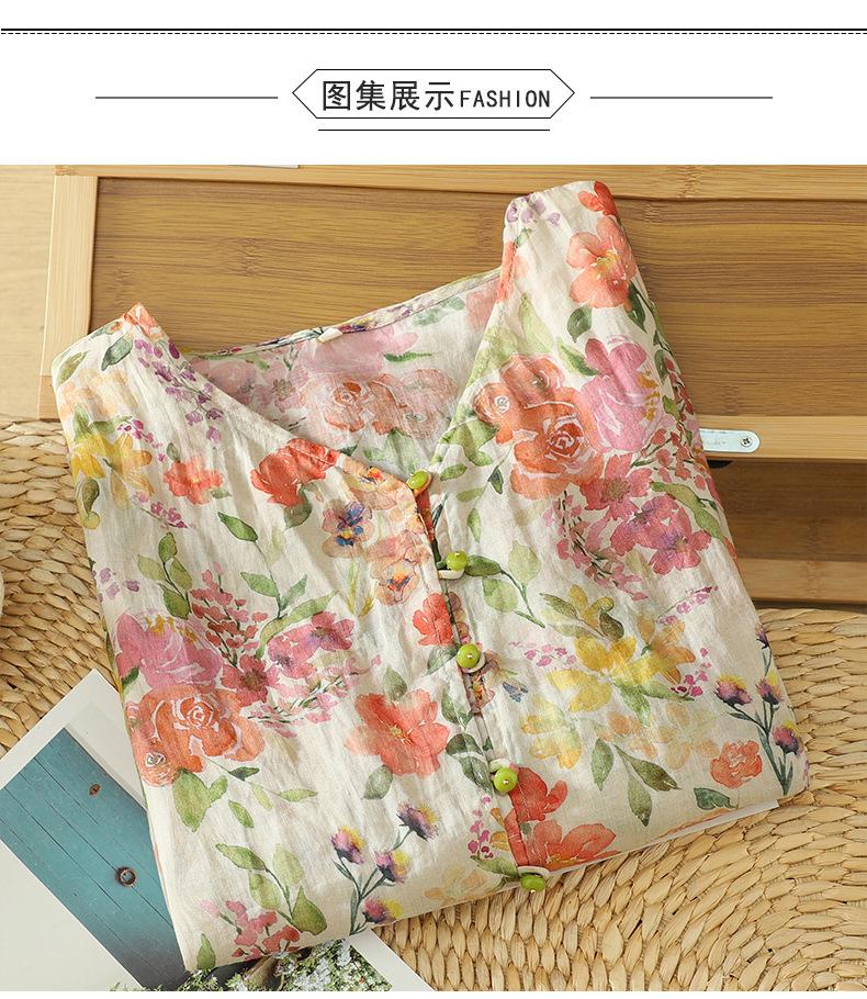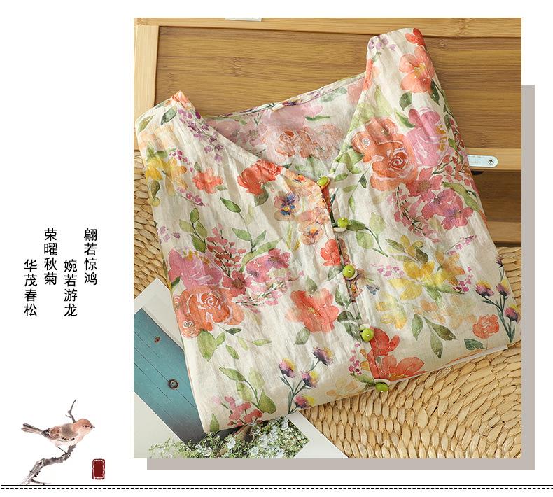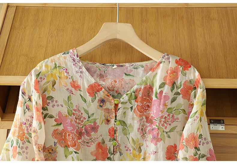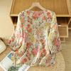Foto real en stock Primavera y Otoño 2025 refrescante versátil algodón y lino cuello en V estilo casual camisa cárdigan top casual para mujer