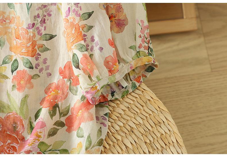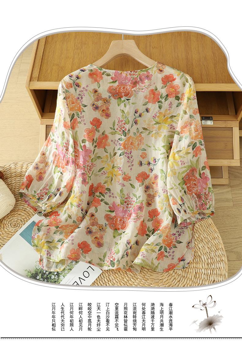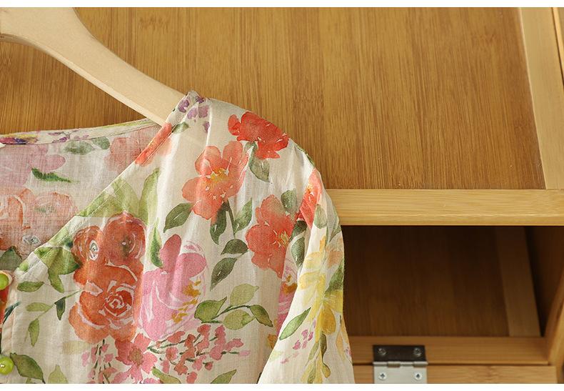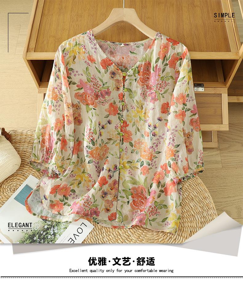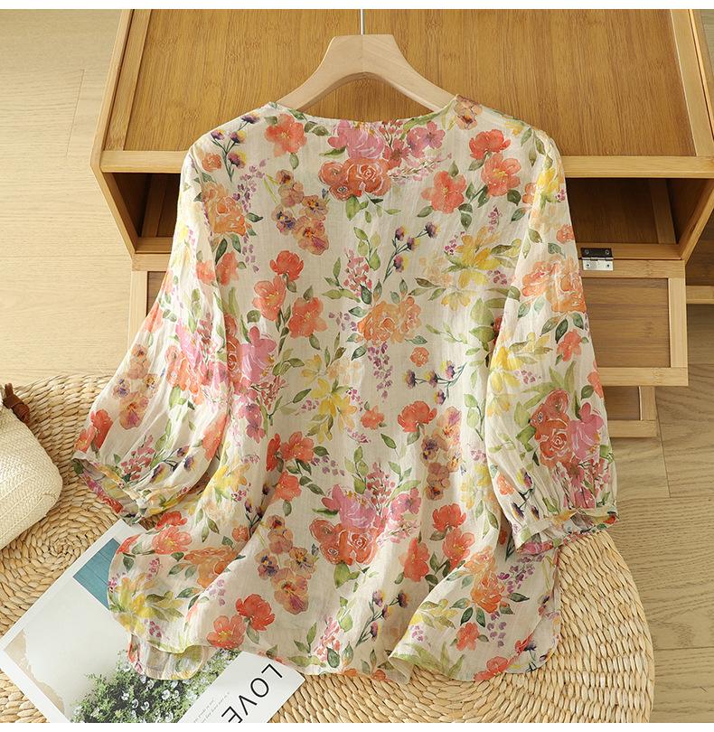 Foto real en stock Primavera y Otoño 2025 refrescante versátil algodón y lino cuello en V estilo casual camisa cárdigan top casual para mujer