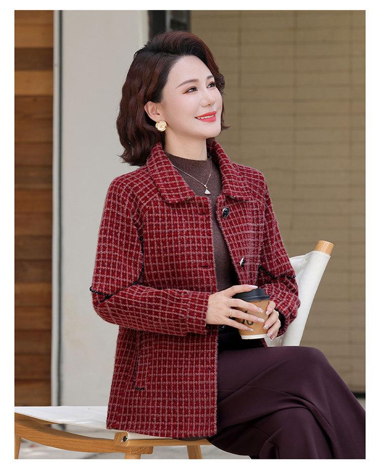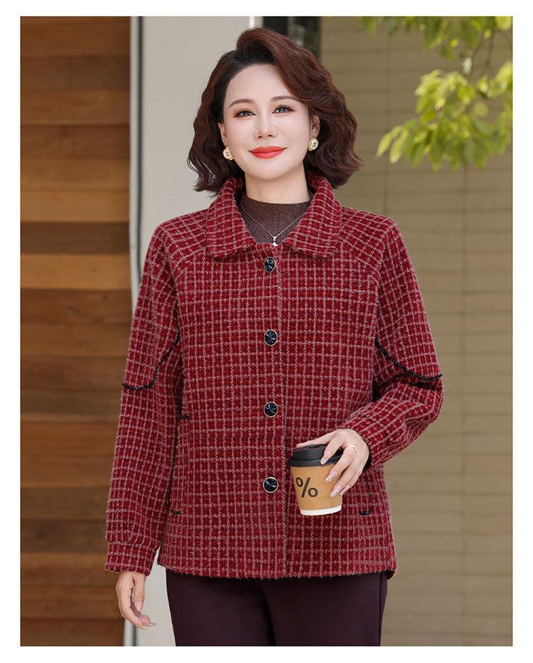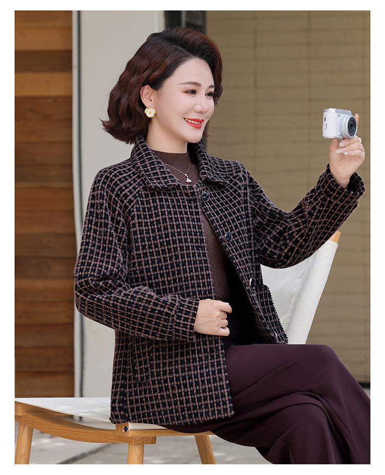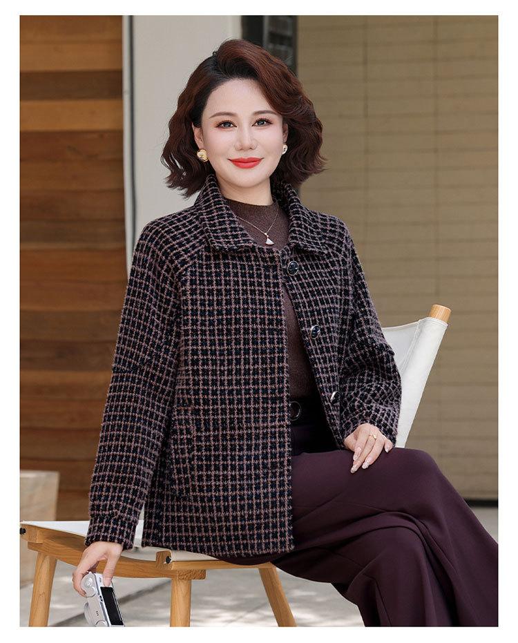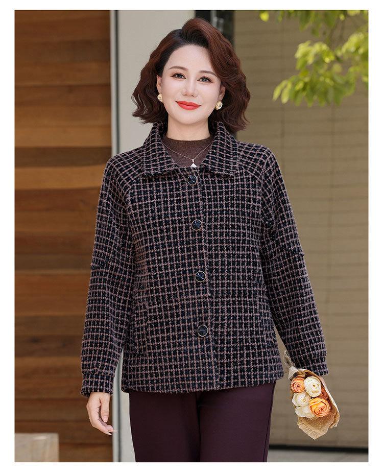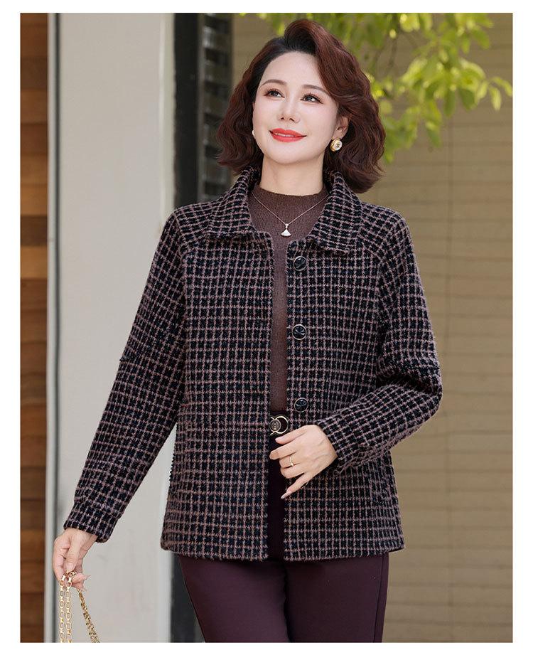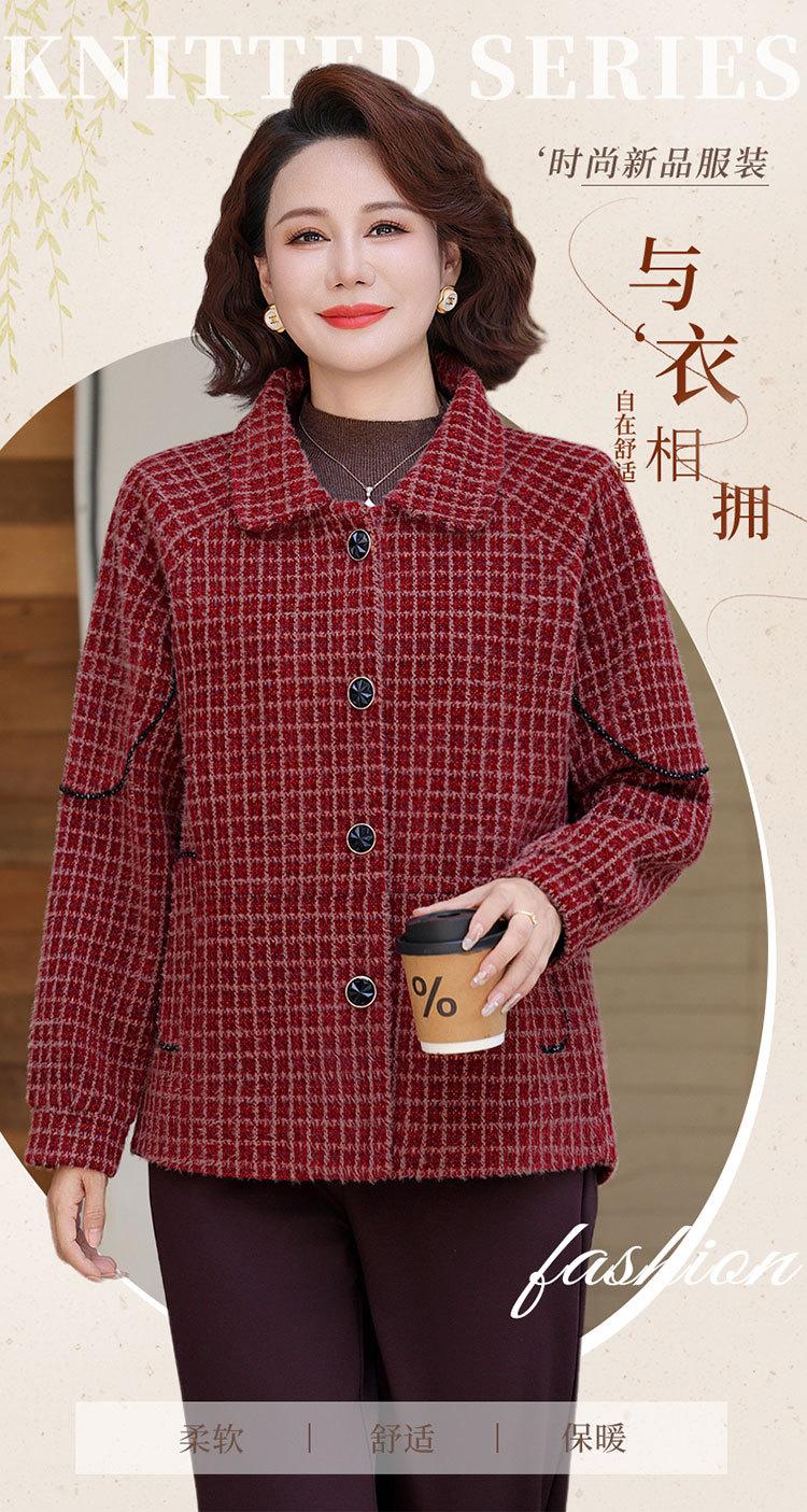 Cárdigan de Cuadros para Madre de Moda Otoño e Invierno Ropa para Mujeres de Mediana Edad y Ancianas Otoño e Invierno 2025 Nuevo Abrigo de Punto de Talla Grande con Solapa