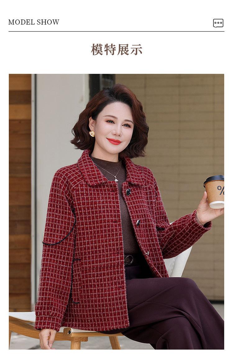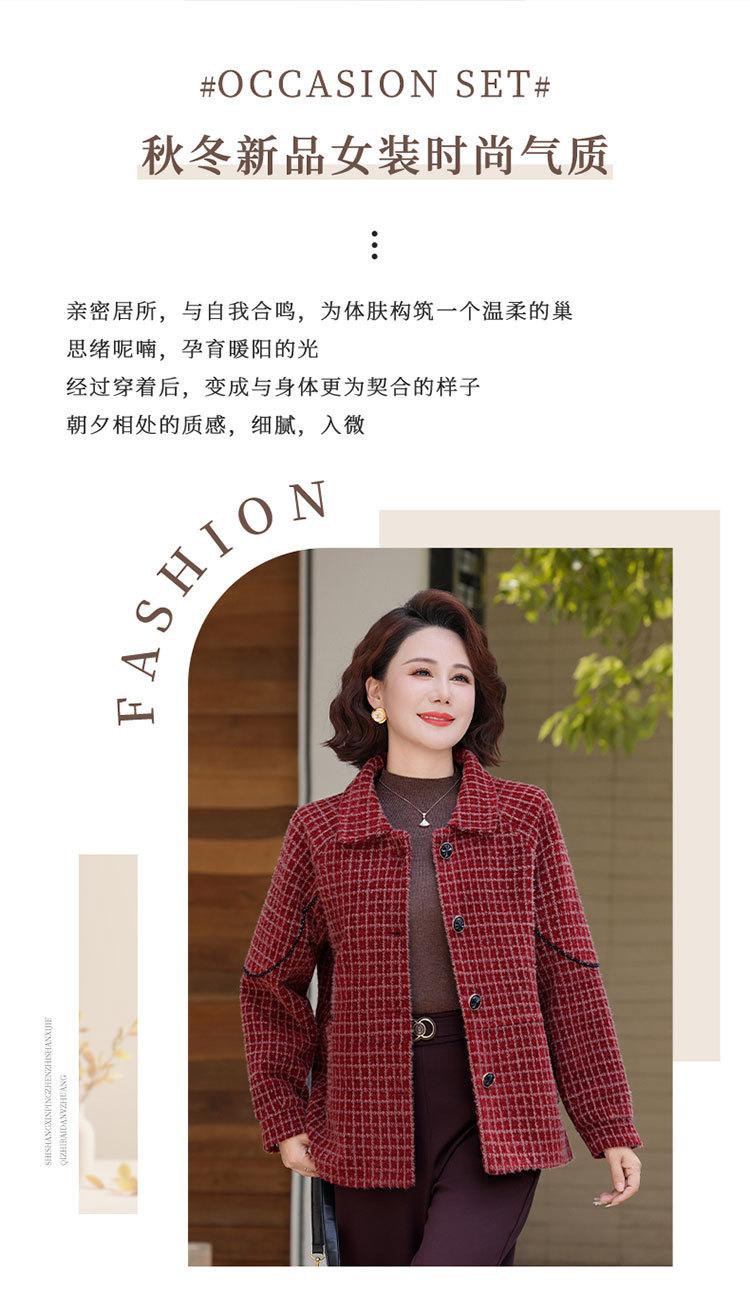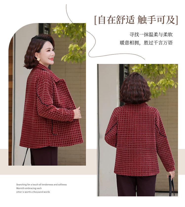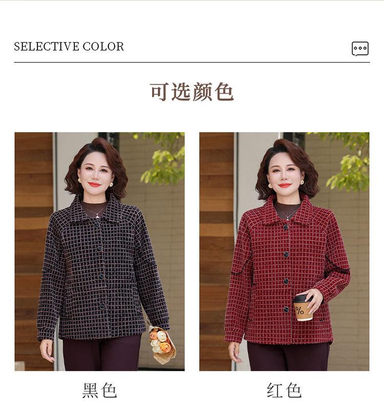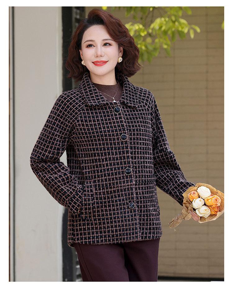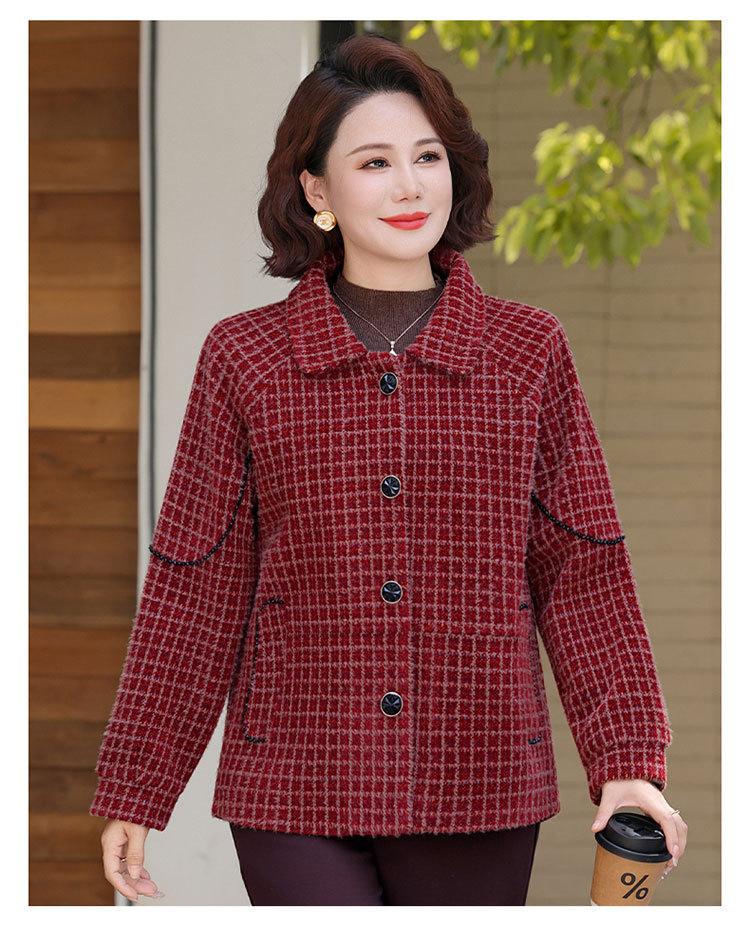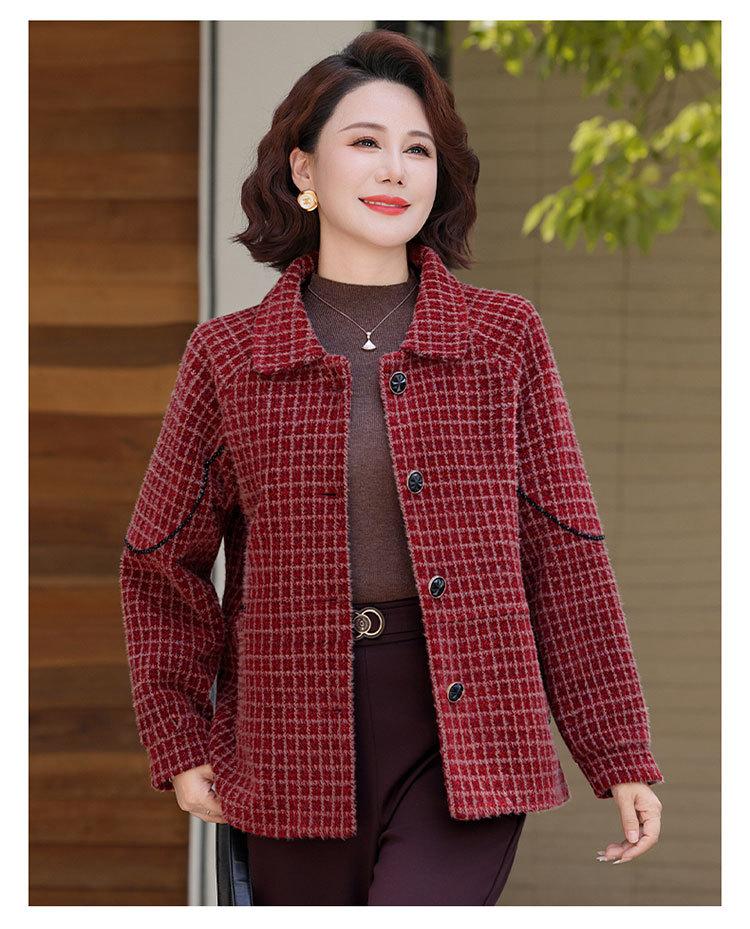 Cárdigan de Cuadros para Madre de Moda Otoño e Invierno Ropa para Mujeres de Mediana Edad y Ancianas Otoño e Invierno 2025 Nuevo Abrigo de Punto de Talla Grande con Solapa