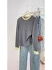 Otoño 2026 Nuevo Estilo Coreano Bloque de Color Ajustado Cuello Redondo Falso Dos Piezas Versátil Manga Larga Camiseta Capa Base para Mujer Chic