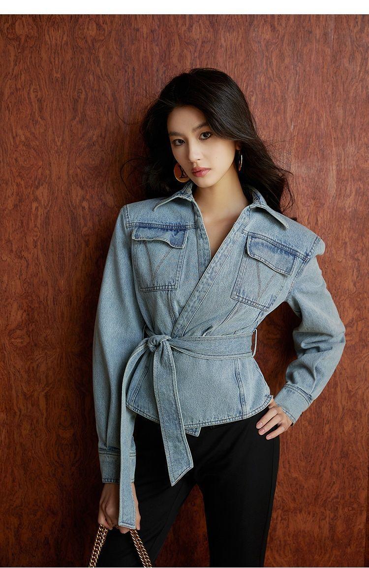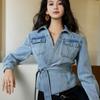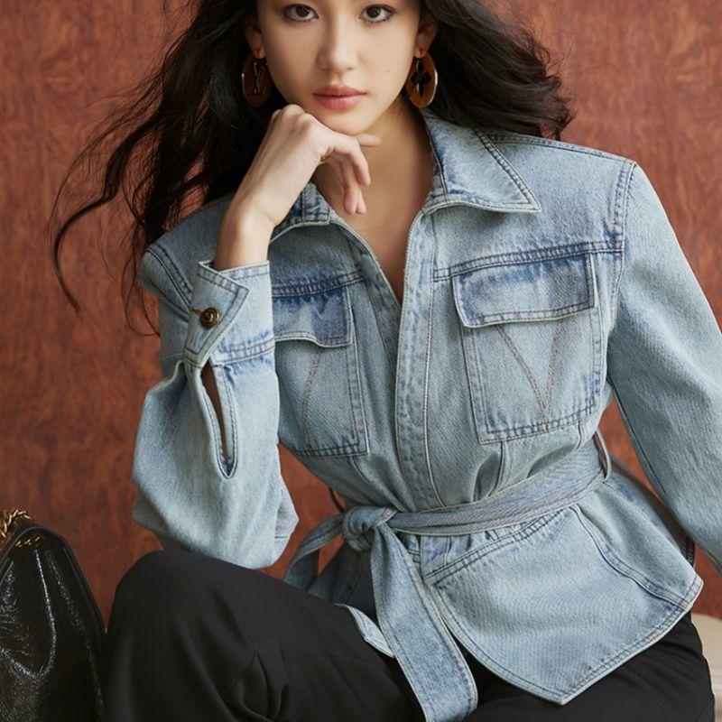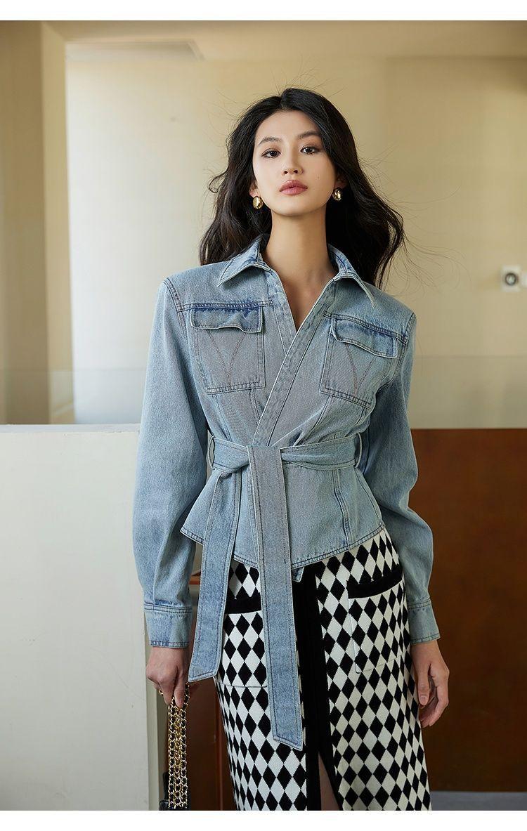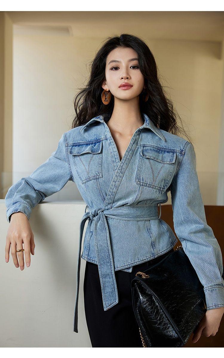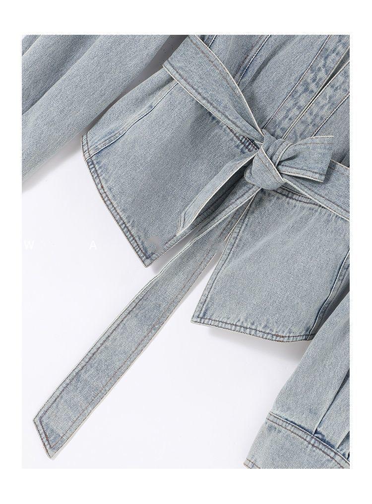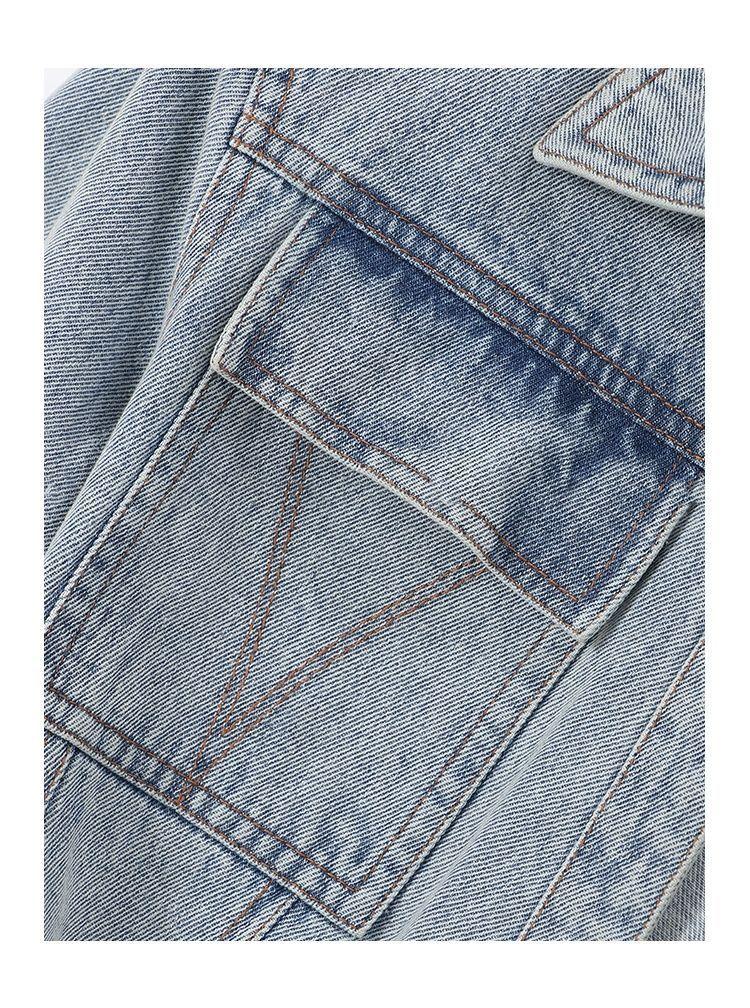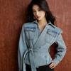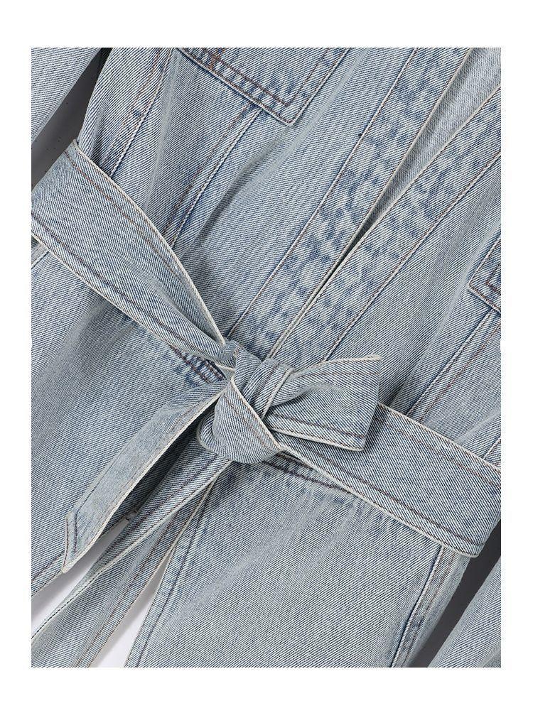 Shanlidaidi 2025 Primavera Nuevo Denim Sarga Lavado Desgastado Cinturón Desmontable Cintura Alta Exterior de Mezclilla con Cordones