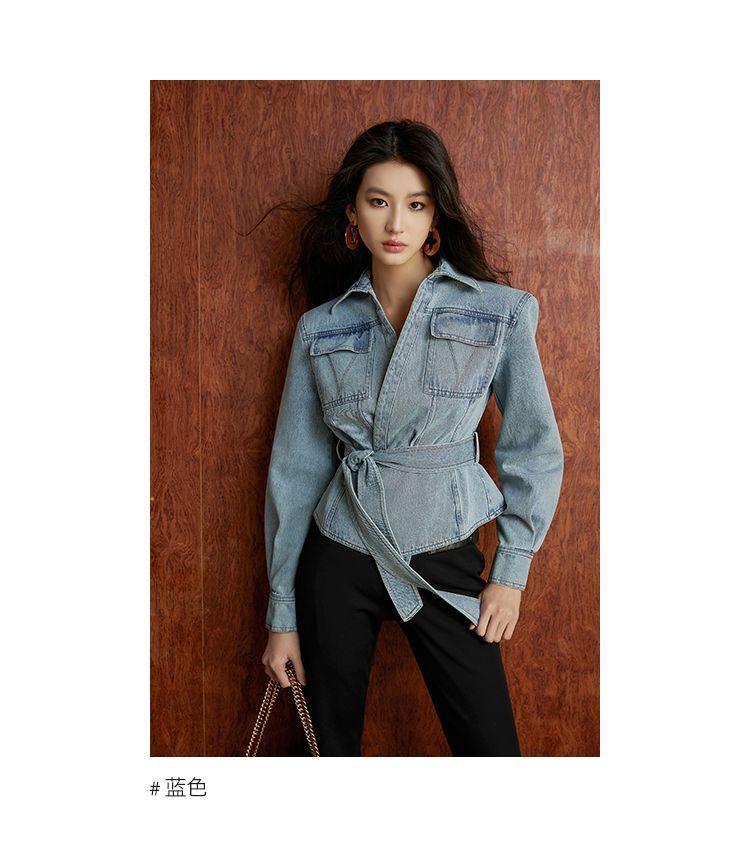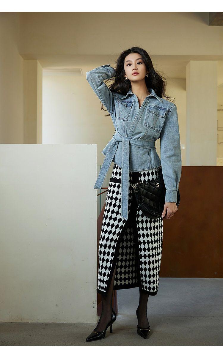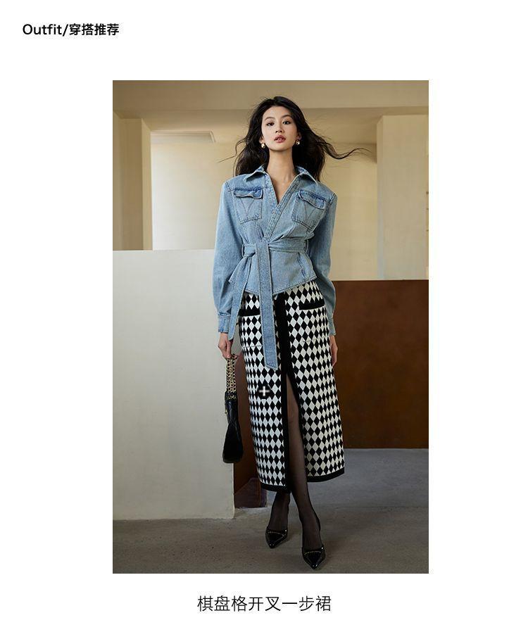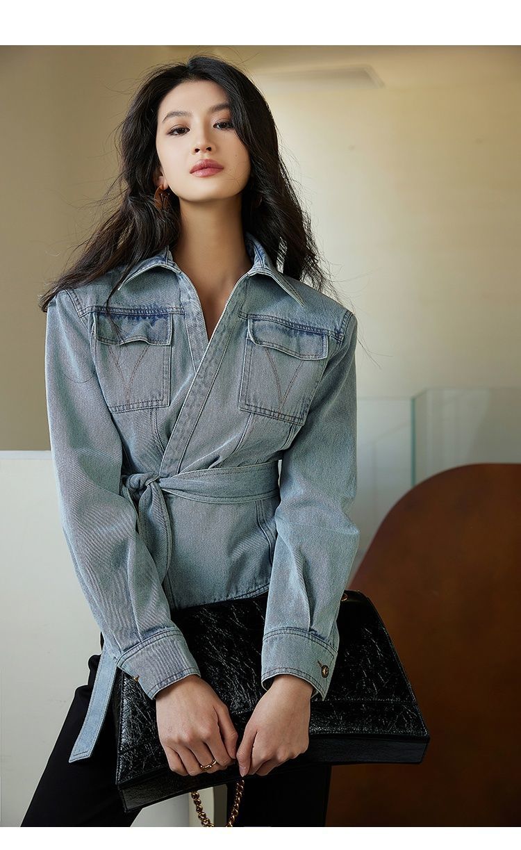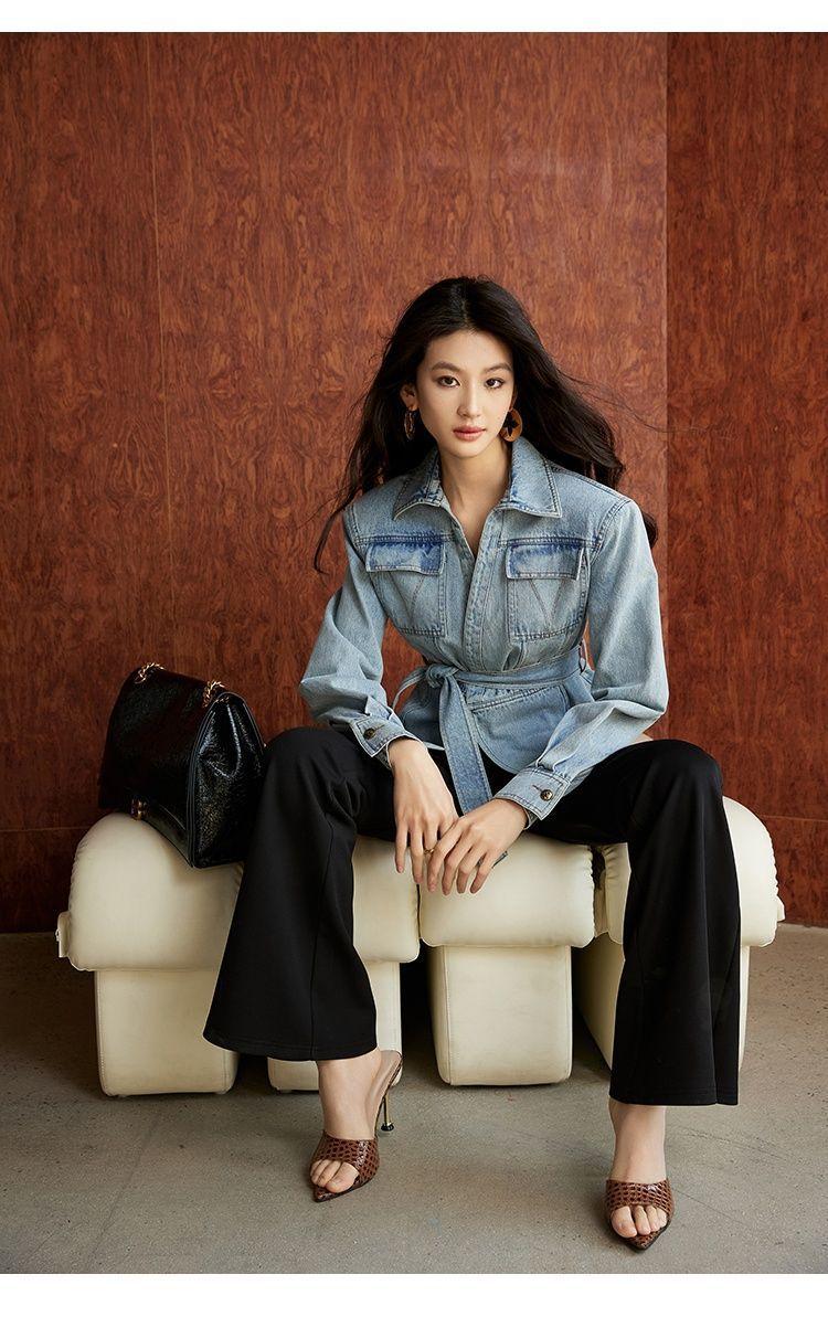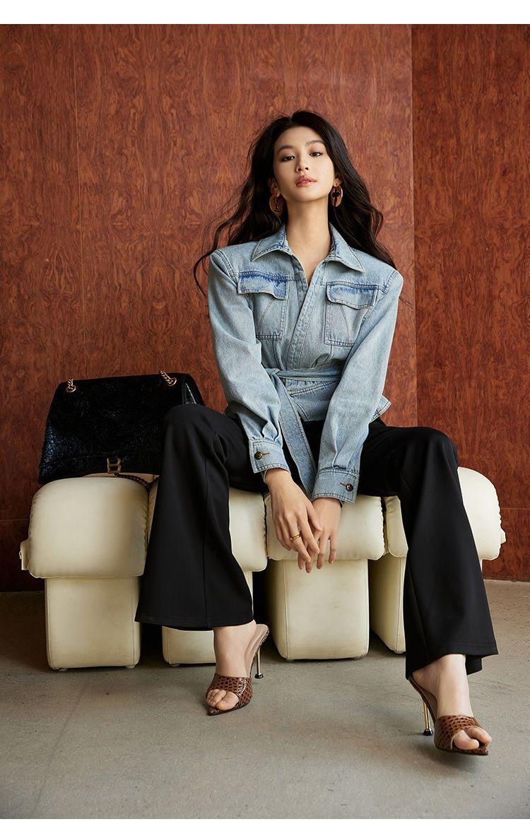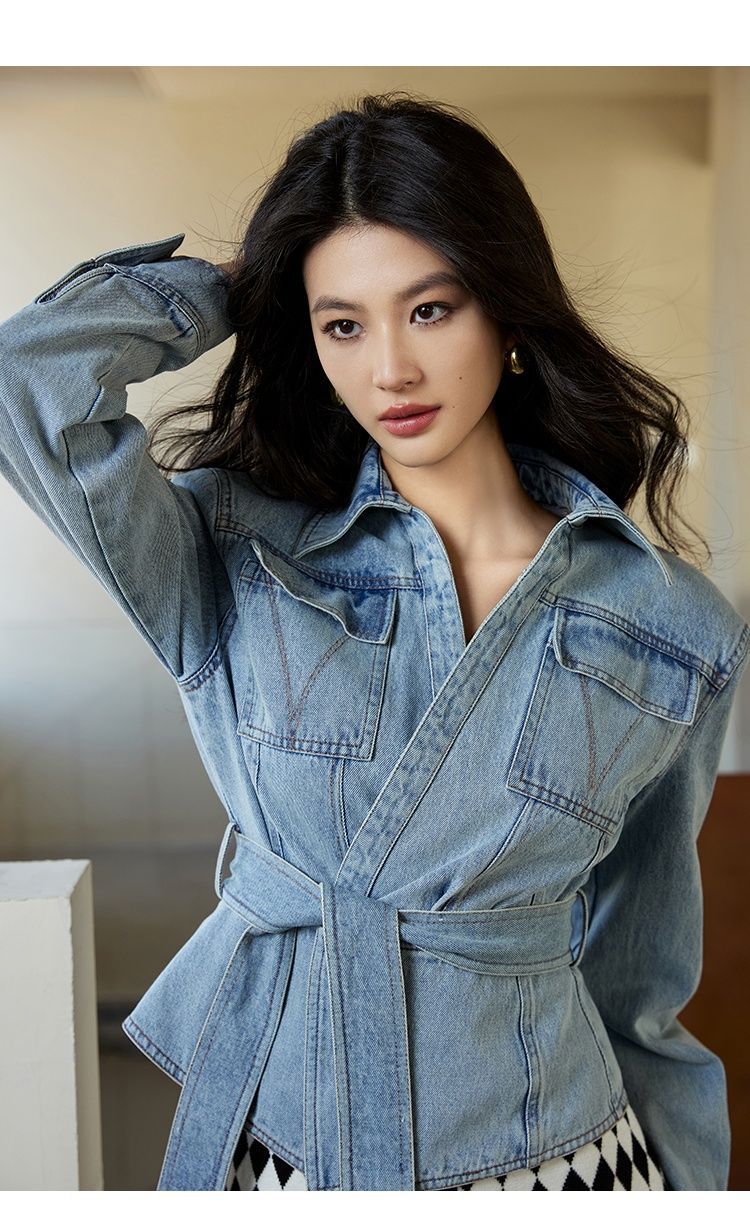 Shanlidaidi 2025 Primavera Nuevo Denim Sarga Lavado Desgastado Cinturón Desmontable Cintura Alta Exterior de Mezclilla con Cordones