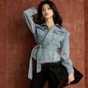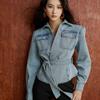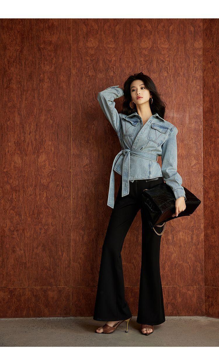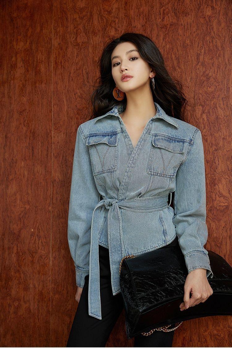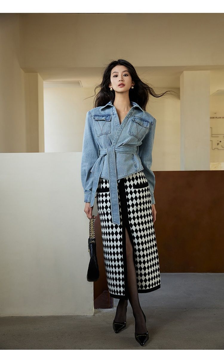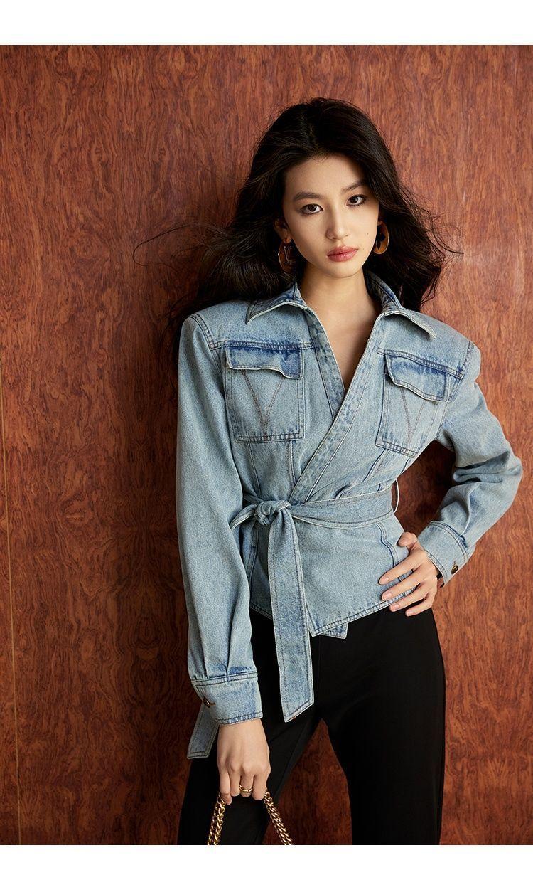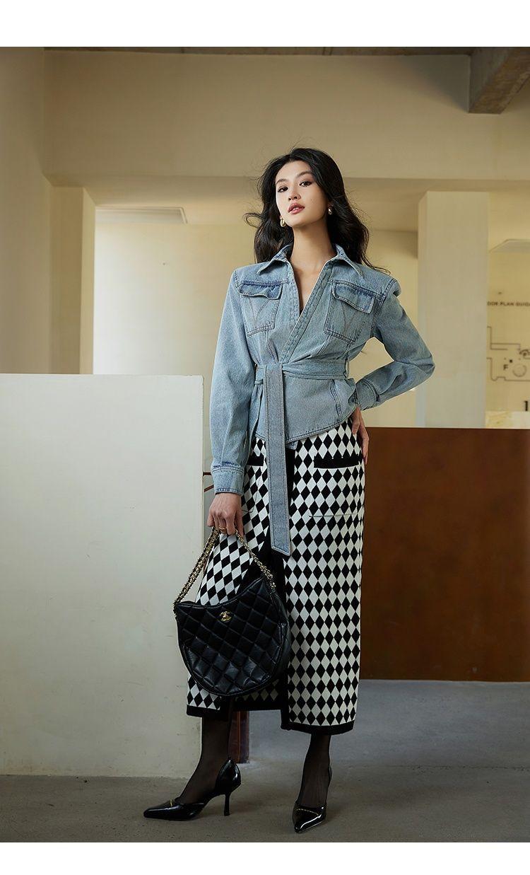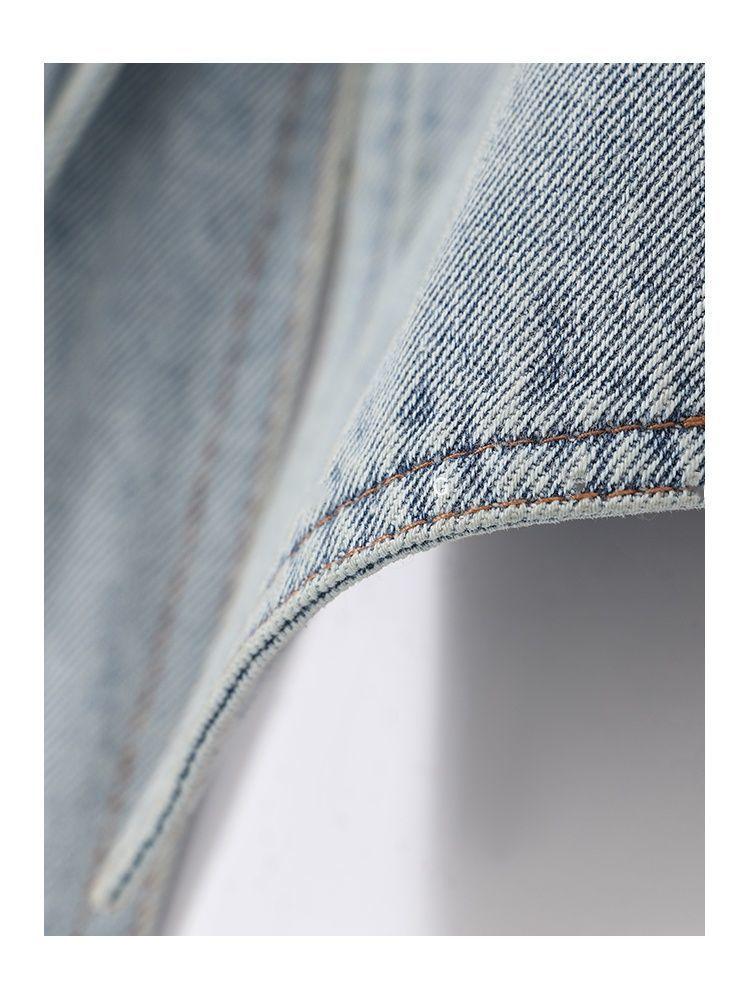 Shanlidaidi 2025 Primavera Nuevo Denim Sarga Lavado Desgastado Cinturón Desmontable Cintura Alta Exterior de Mezclilla con Cordones