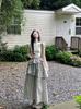 Vestido de manga corta con empalme de cuadros irregulares estilo coreano para mujer 2025 Verano Nuevo estilo Diseño adelgazante de cintura Falda larga