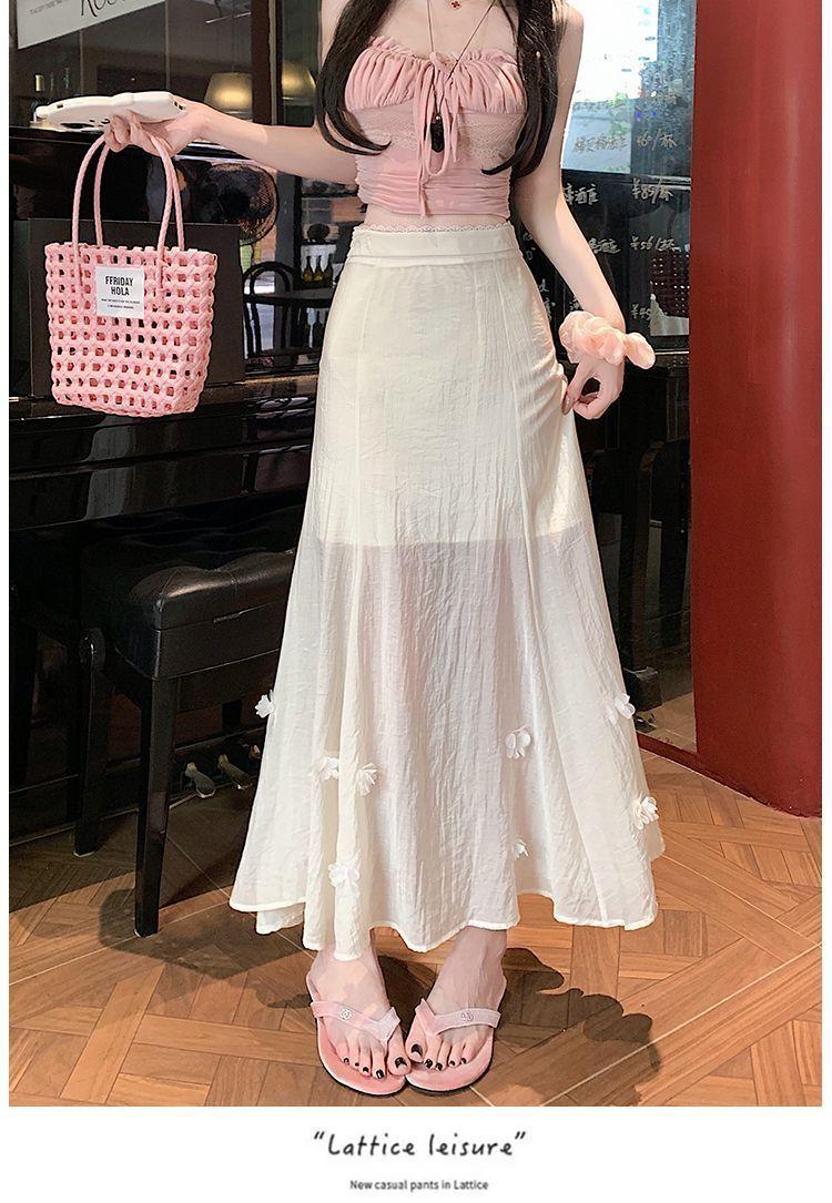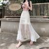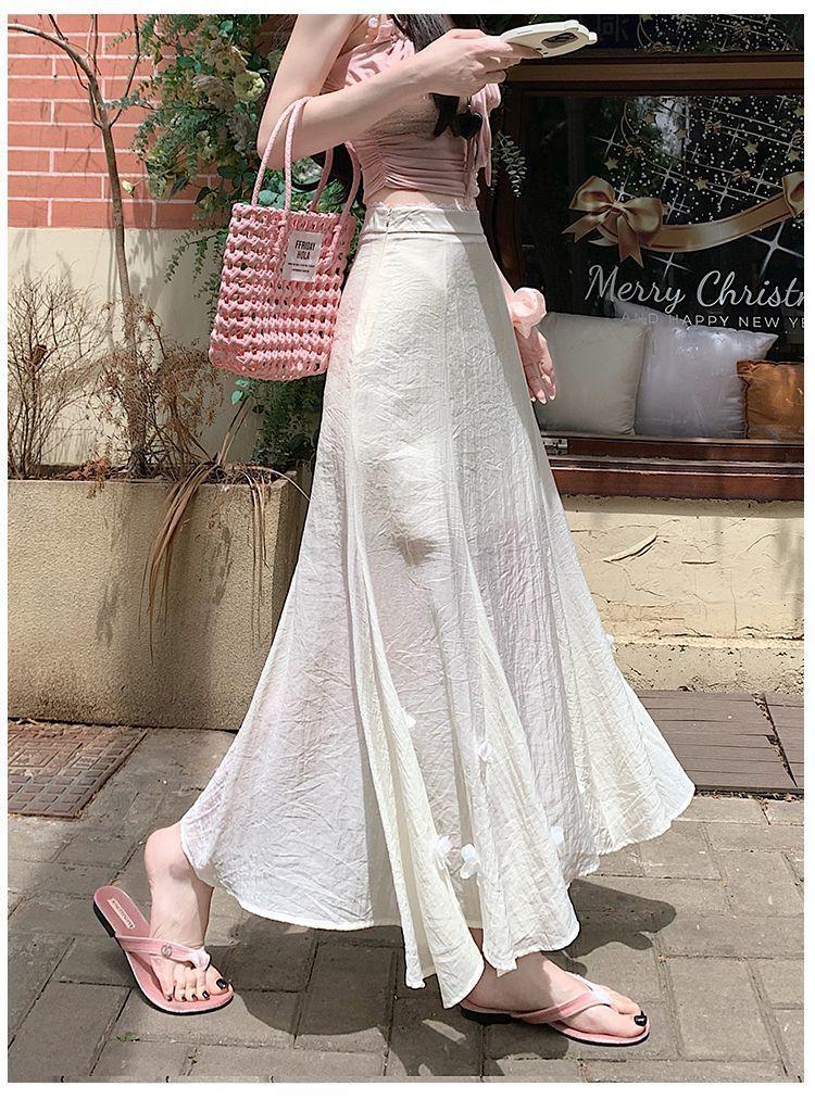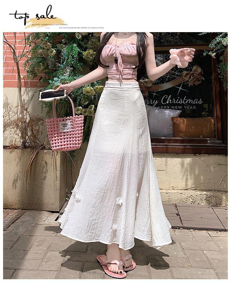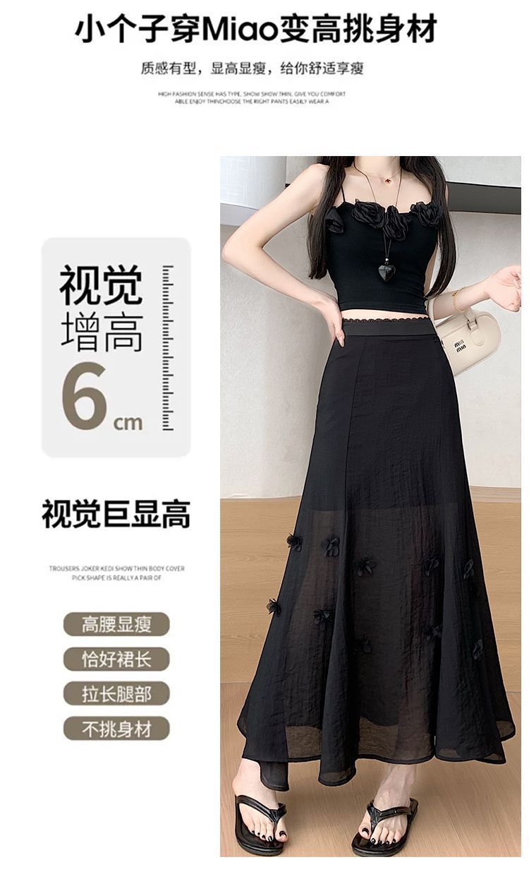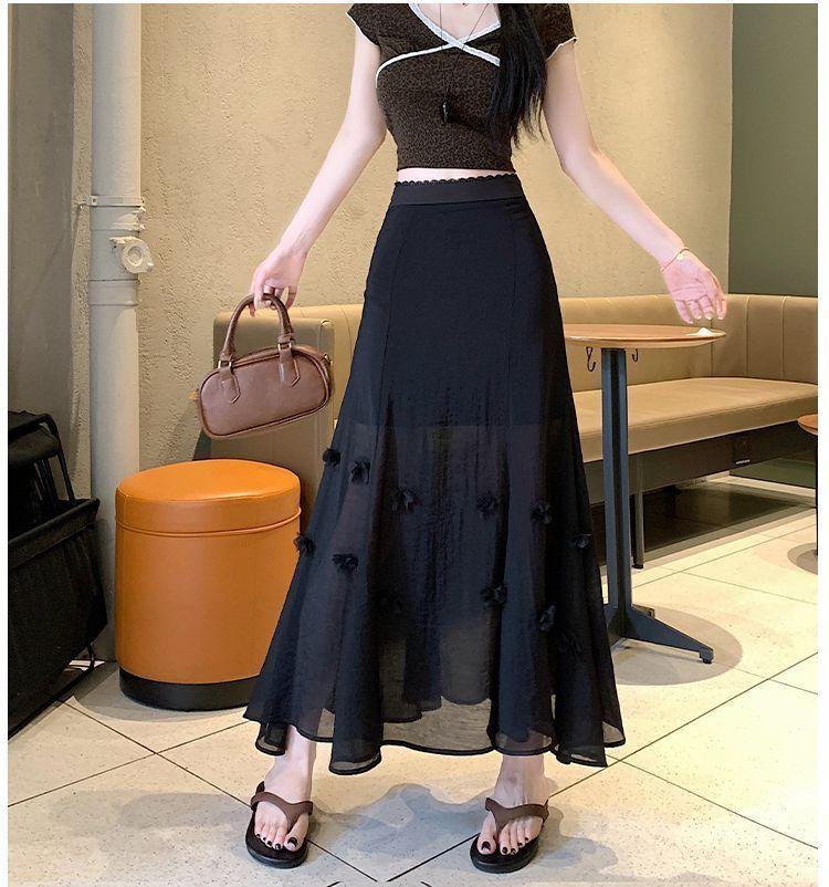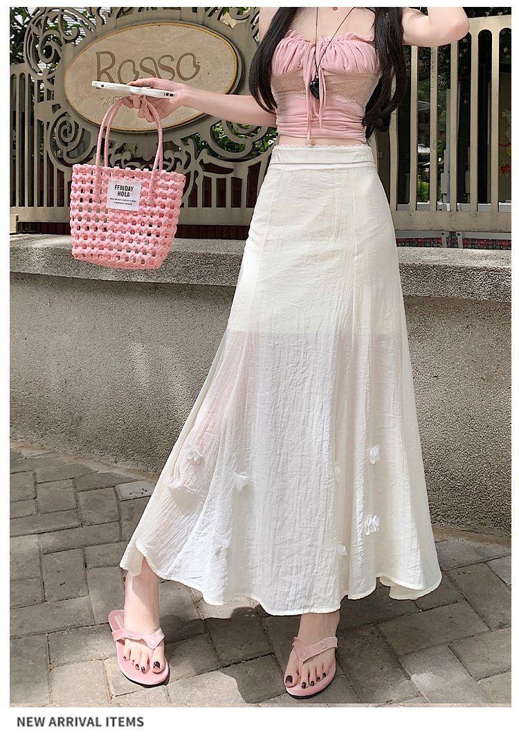 Falda Midi Acampanada Floral 3D Blanca Mujer Verano Temperamento Francés Falda Paraguas Yamamoto Cintura Alta Adelgazante Cola de Pescado Falda Larga