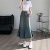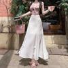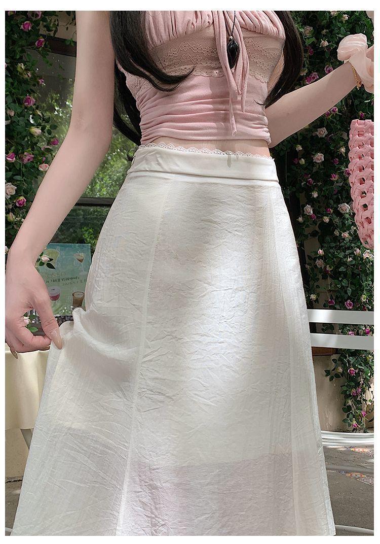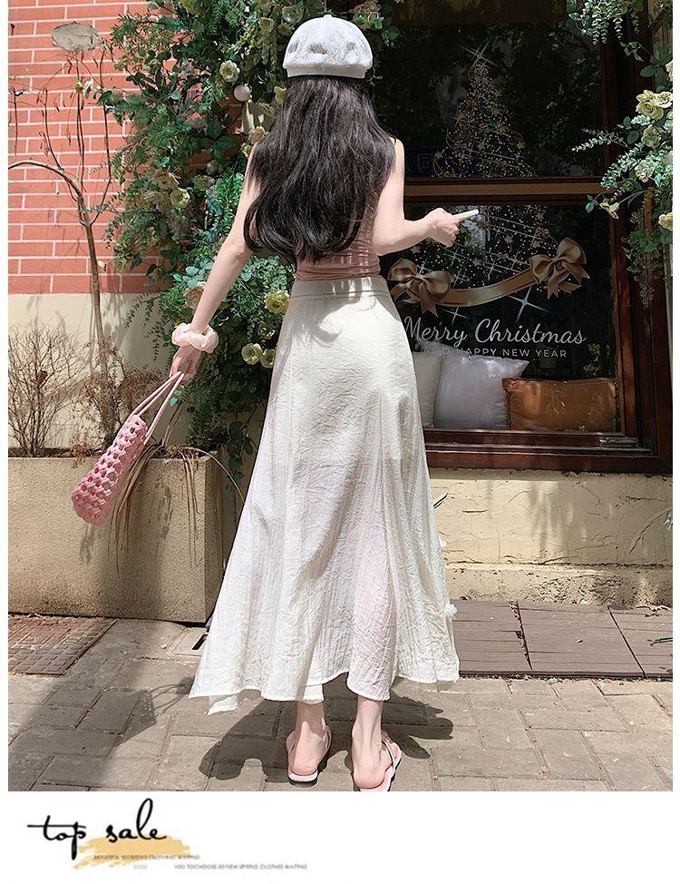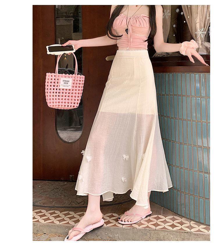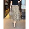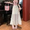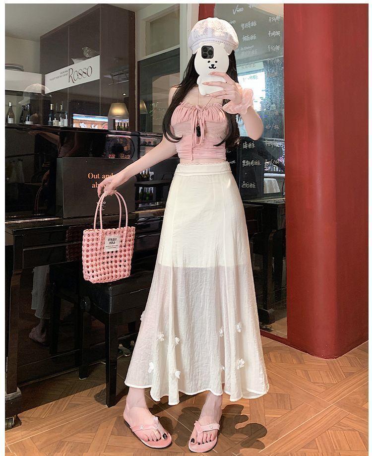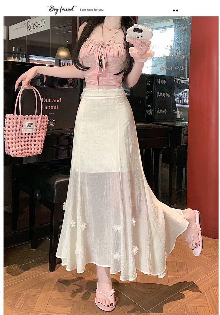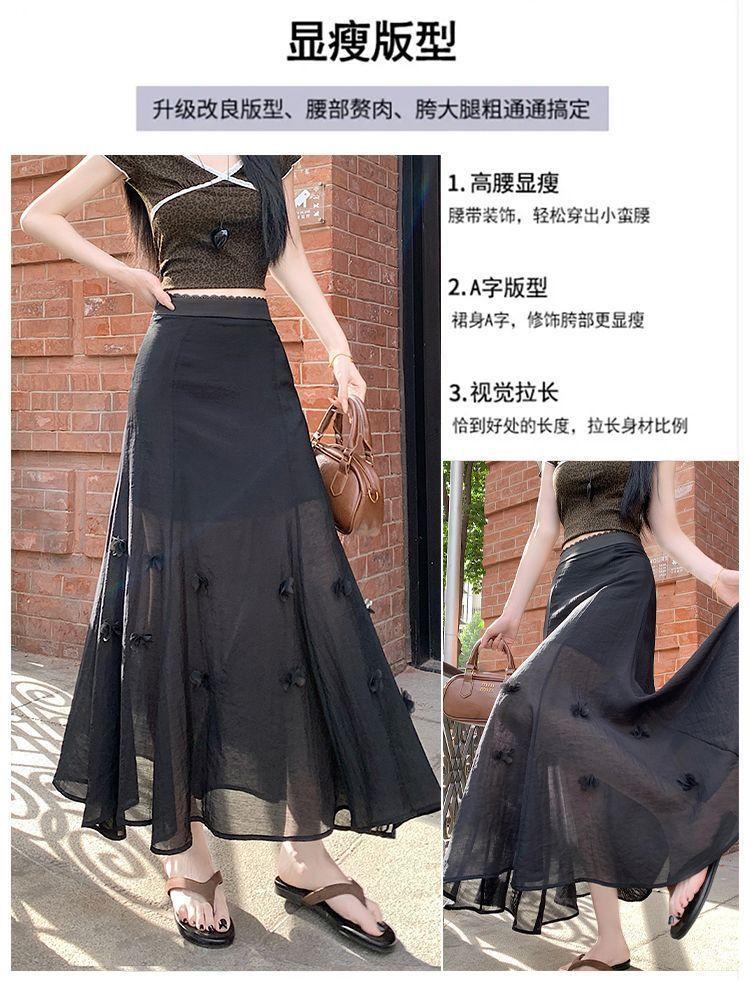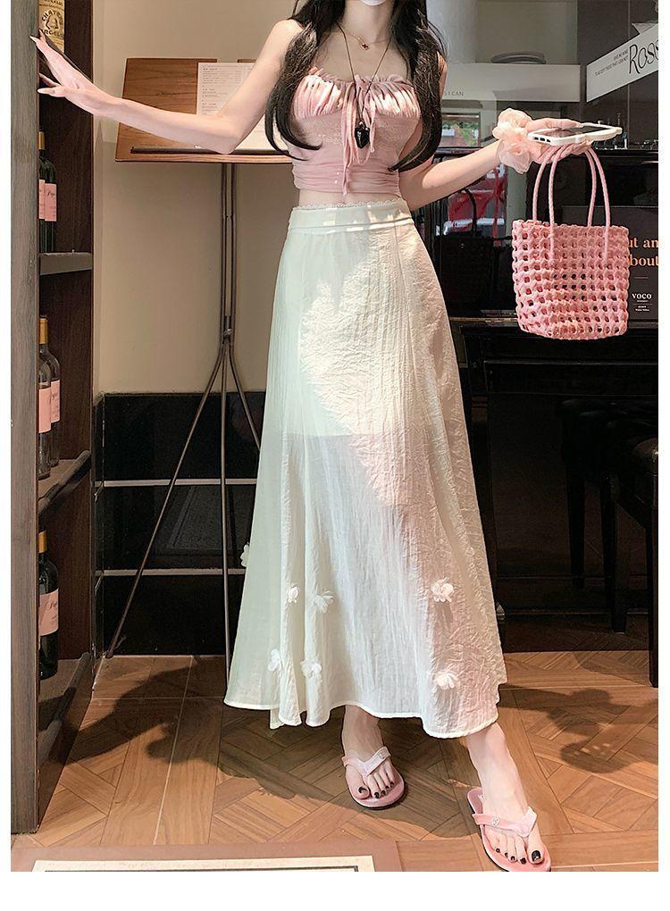 Falda Midi Acampanada Floral 3D Blanca Mujer Verano Temperamento Francés Falda Paraguas Yamamoto Cintura Alta Adelgazante Cola de Pescado Falda Larga