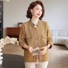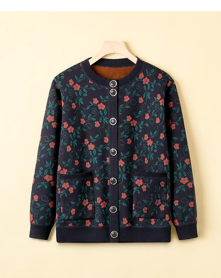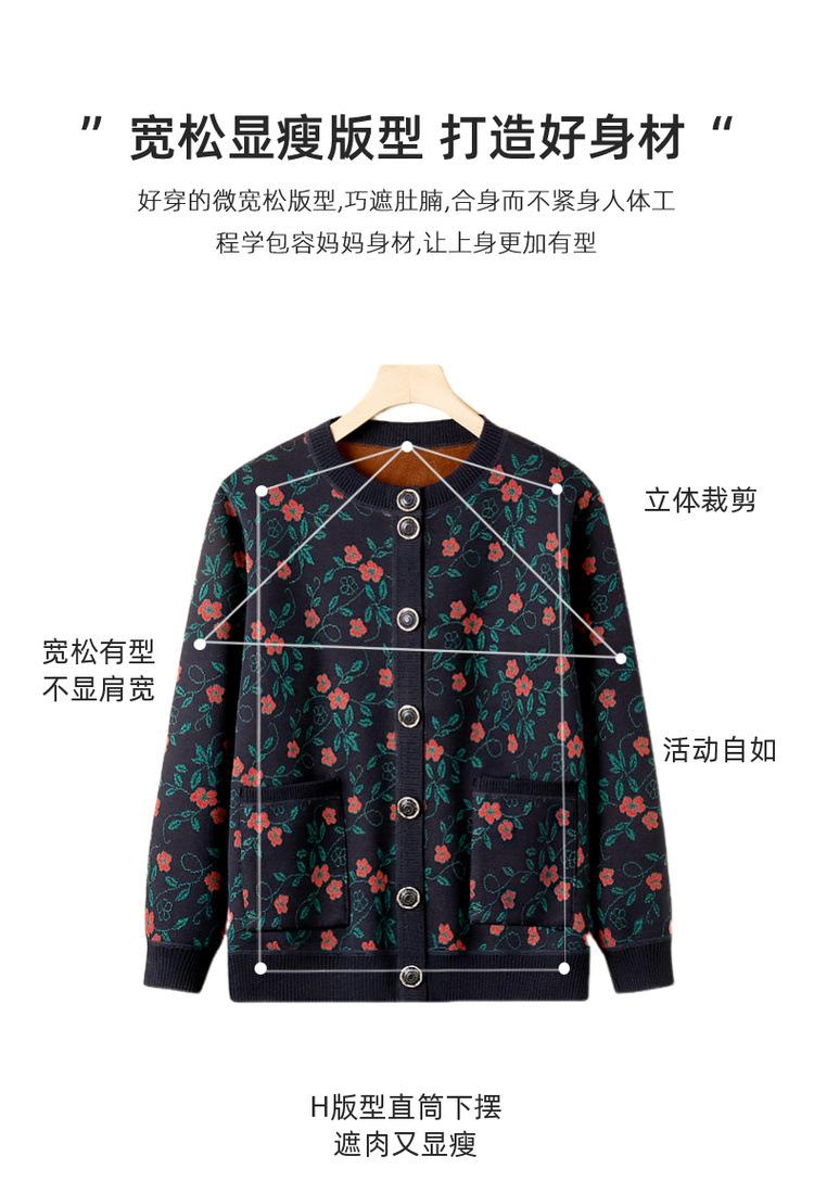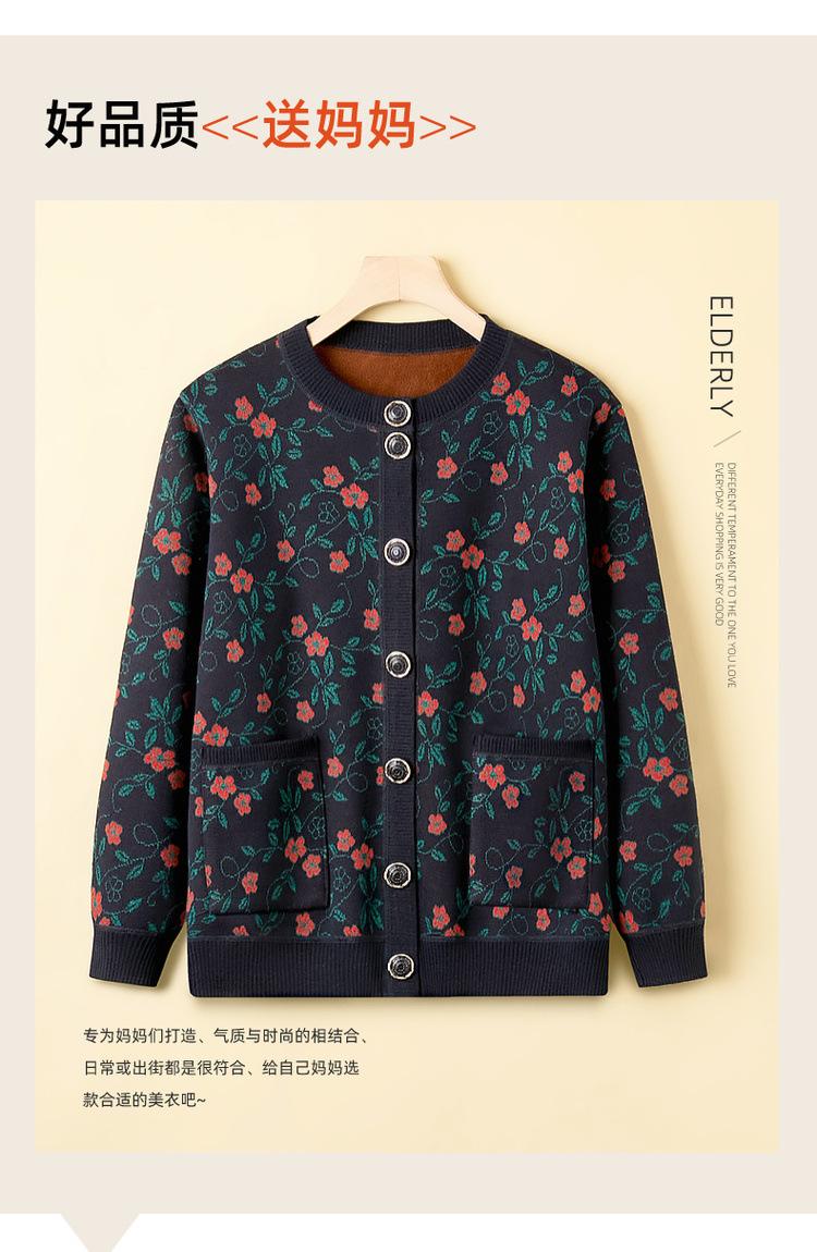 Cárdigan de punto para personas de mediana edad y ancianos, ropa de madre gruesa con terciopelo, ropa para ancianos, abrigo de otoño e invierno para abuela, estilo de mujer