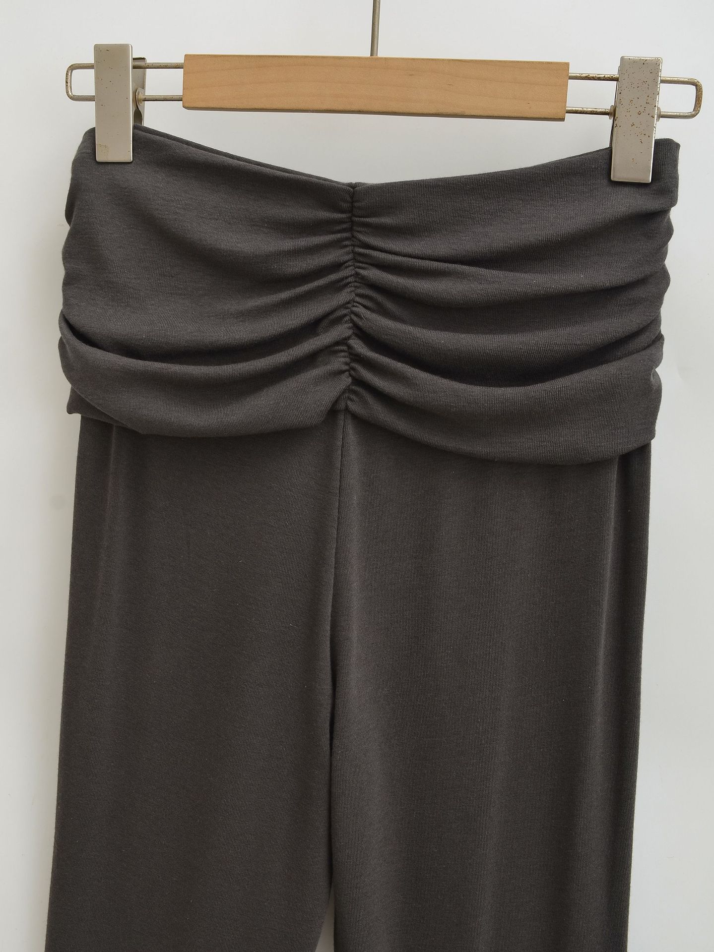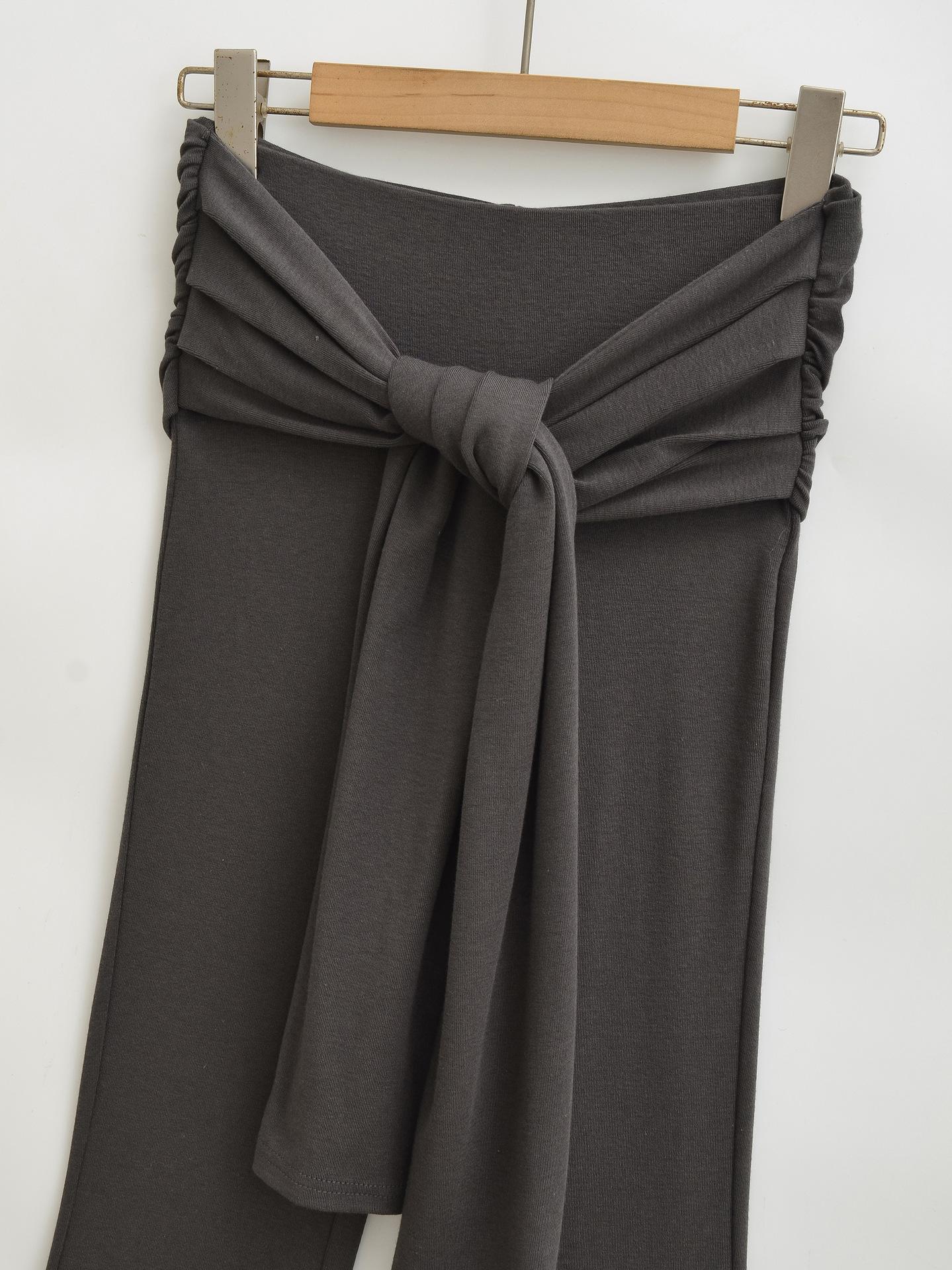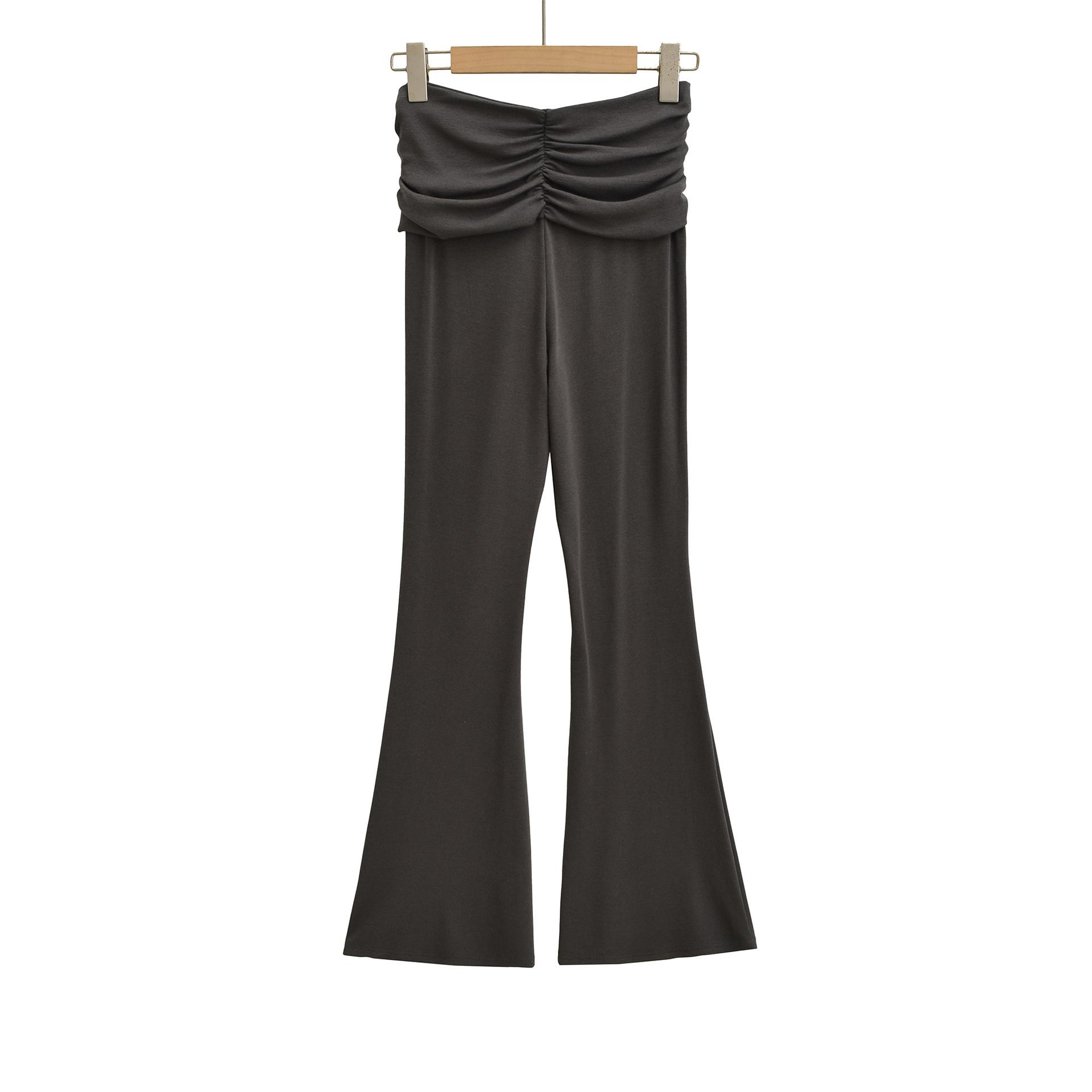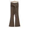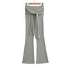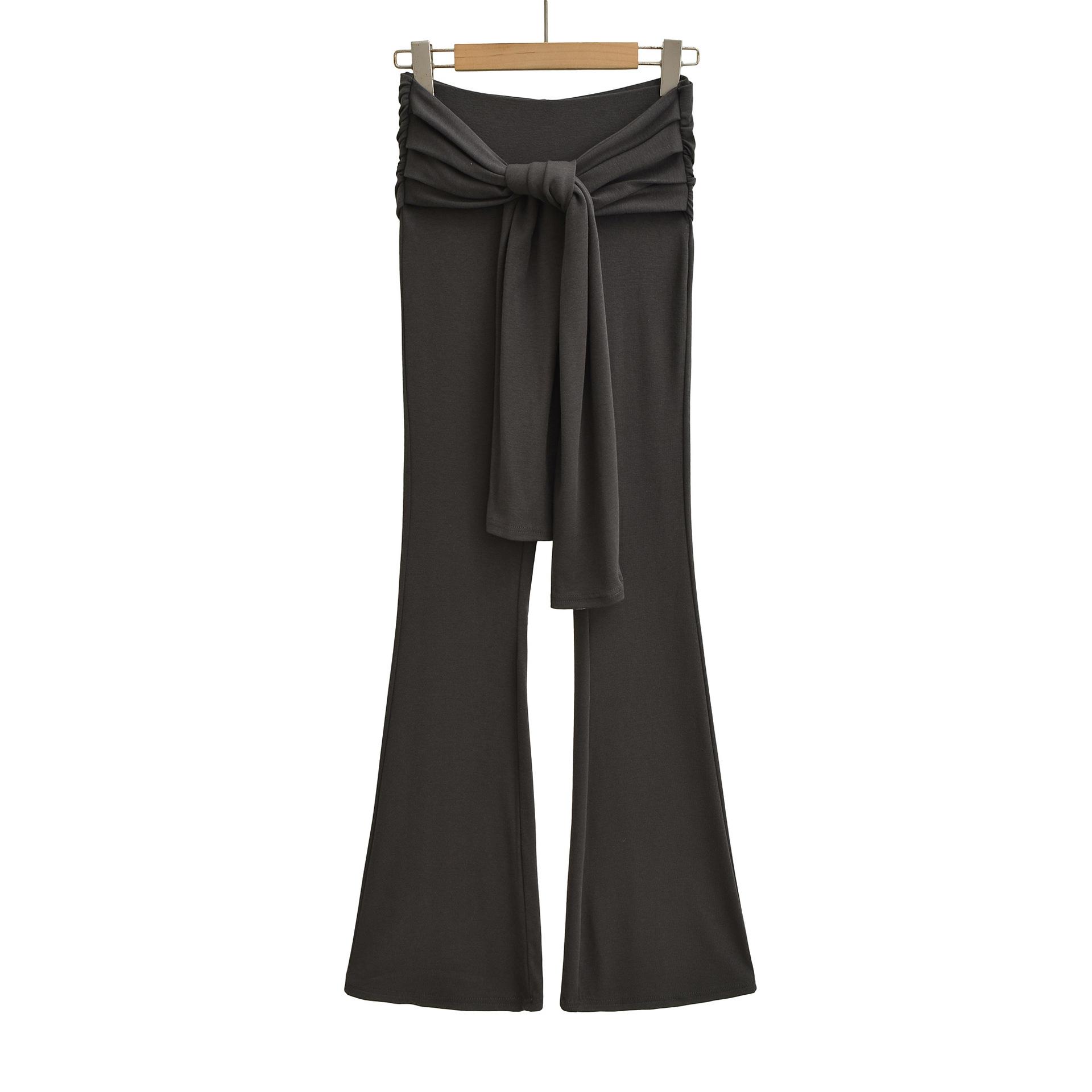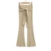 177-25 Verano Nuevo Chica Sexy Europea y Americana Cintura Alta Plisado Lazo Drapeado Holgado Pantalones Largos Acampanados Pantalones Casuales