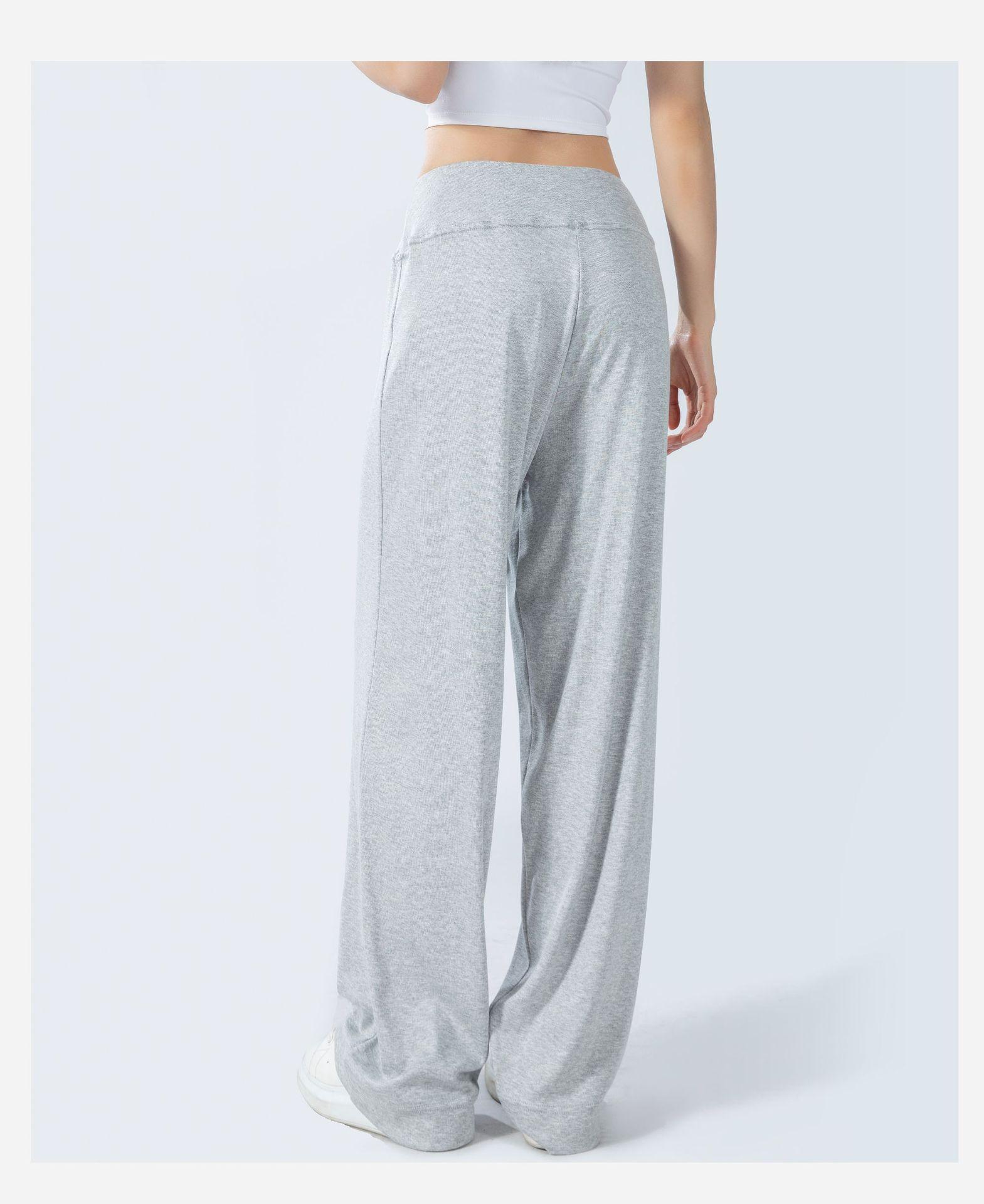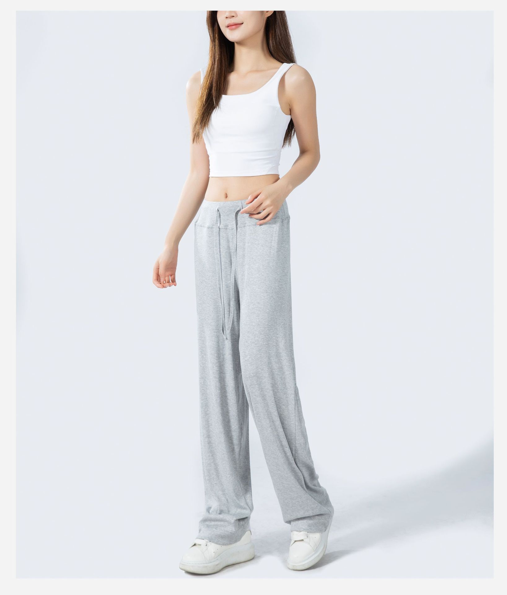 Pantalones Casuales Deportivos Holgados Cómodos de Cintura Alta con Cordón Ajustable y Drapeado Lazy para Verano Pantalones Casuales Holgados de Pierna Recta hasta el Piso de Cintura Alta