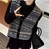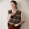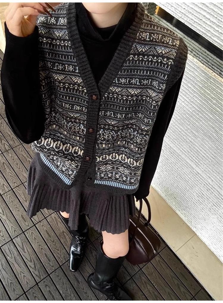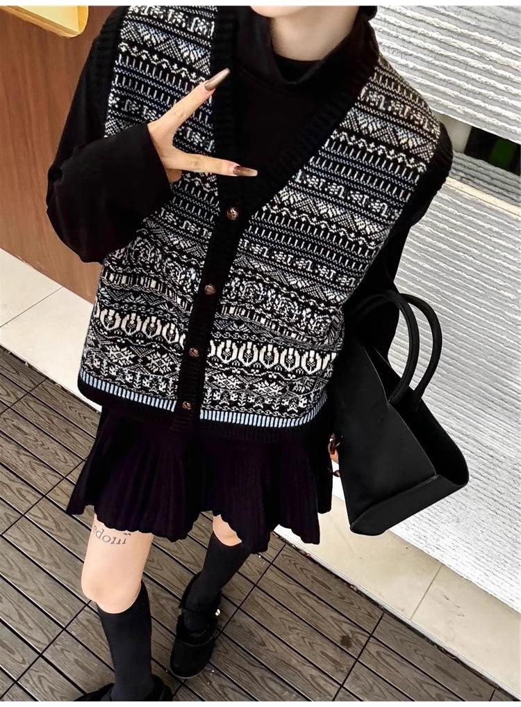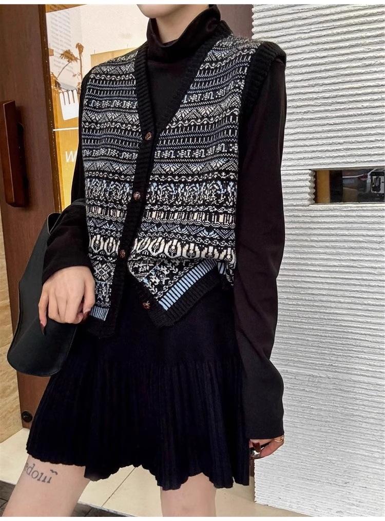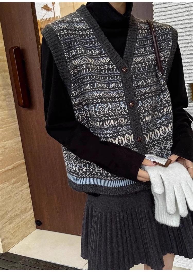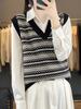 Nuevo Otoño e Invierno Estilo Étnico 100% Lana Jacquard para Mujer Cuello en V Sin Mangas Suéter Chaleco para Capas Top Holgado