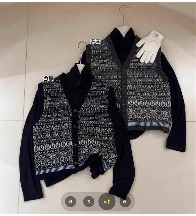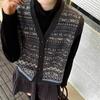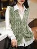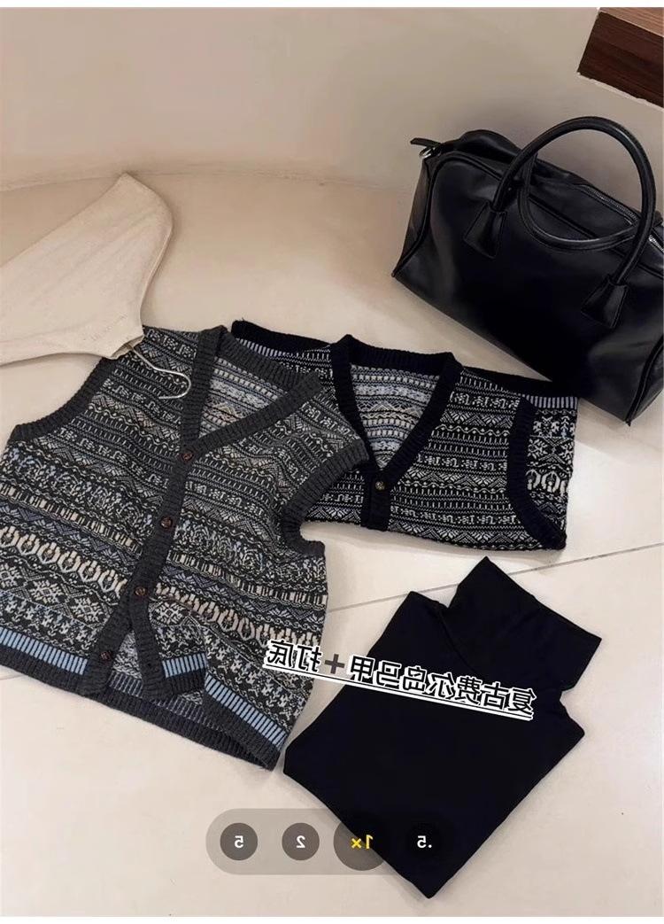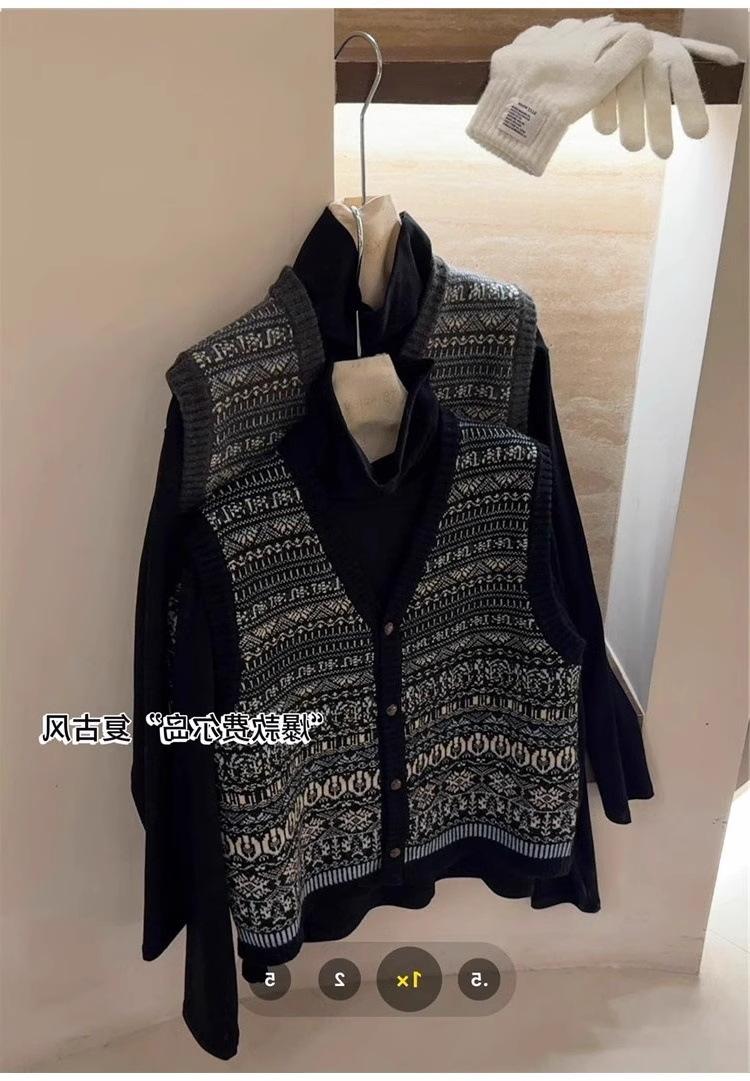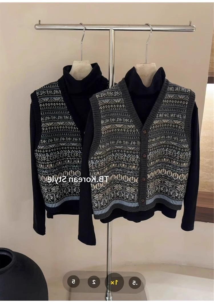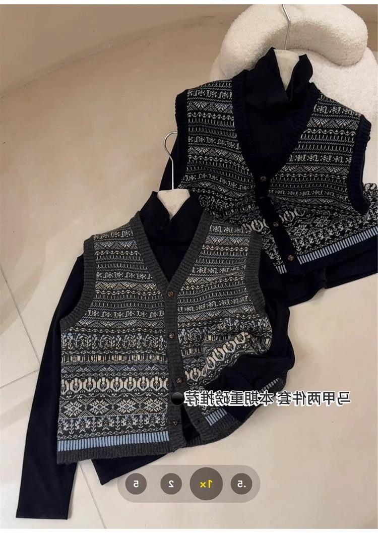 Nuevo Otoño e Invierno Estilo Étnico 100% Lana Jacquard para Mujer Cuello en V Sin Mangas Suéter Chaleco para Capas Top Holgado