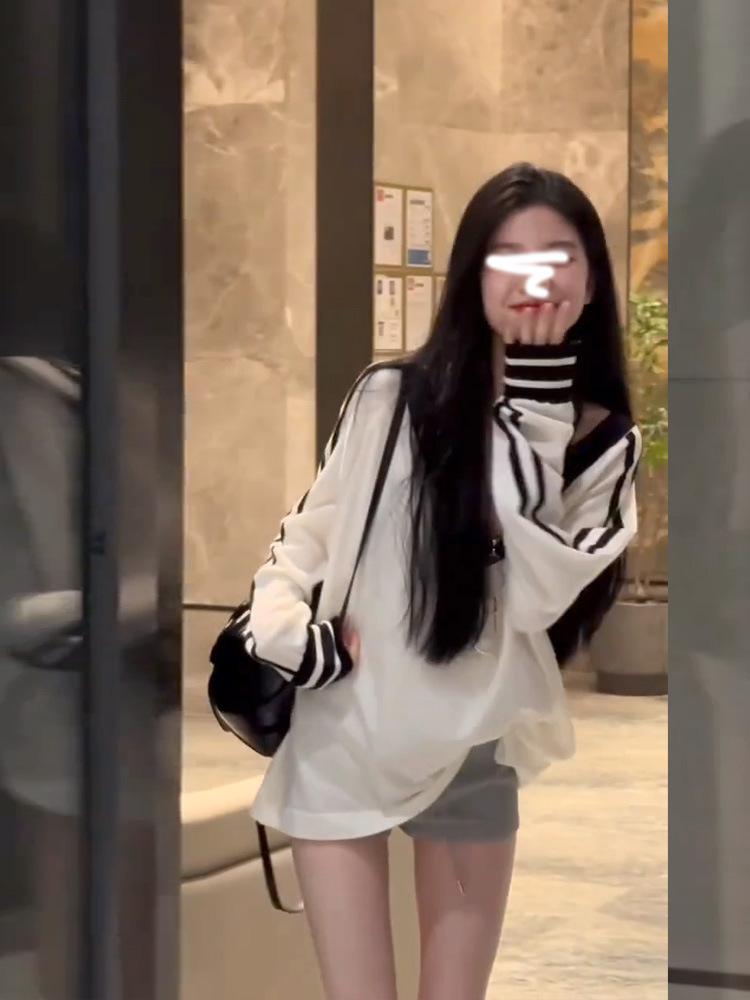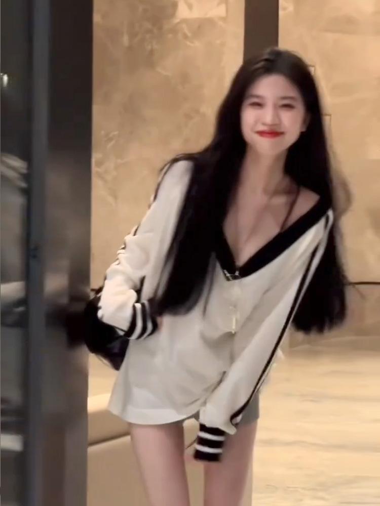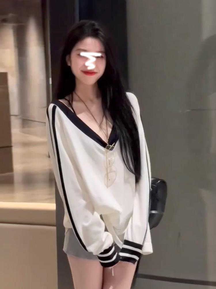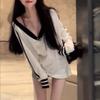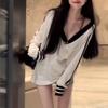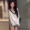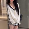 Sudadera de Manga Larga con Cuello en V Estilo Holgazán para Mujer Otoño e Invierno Nueva Coreana Casual Versátil Suelta Adelgazante