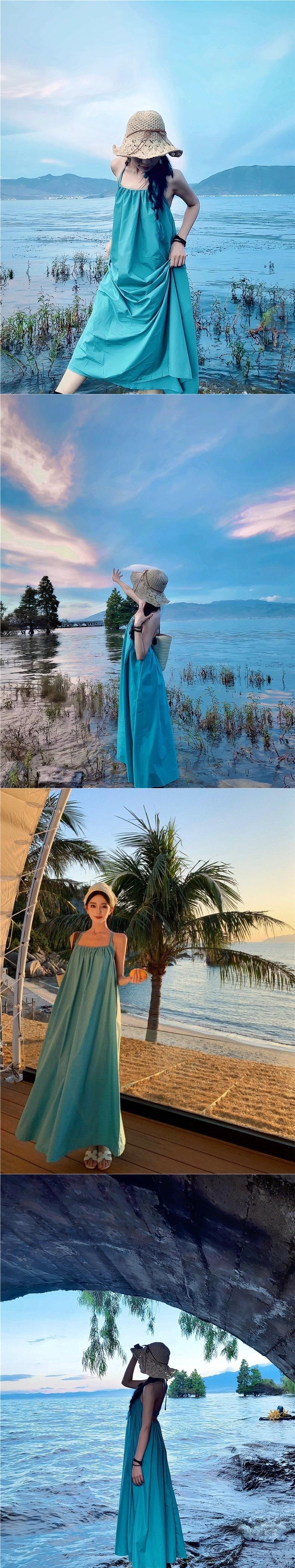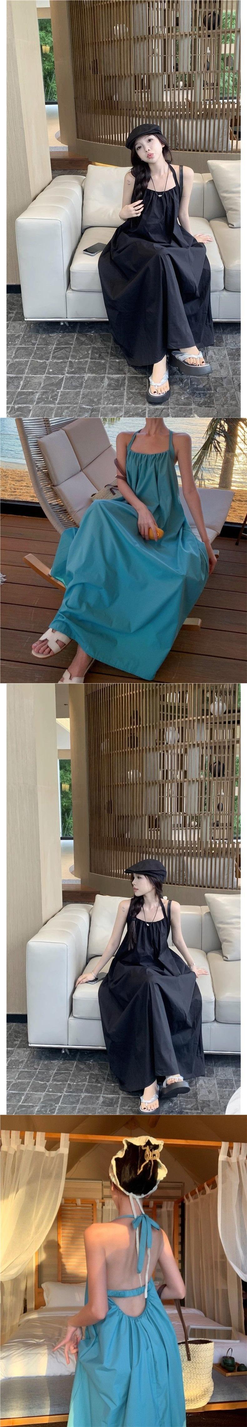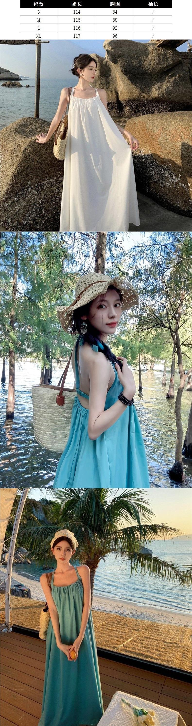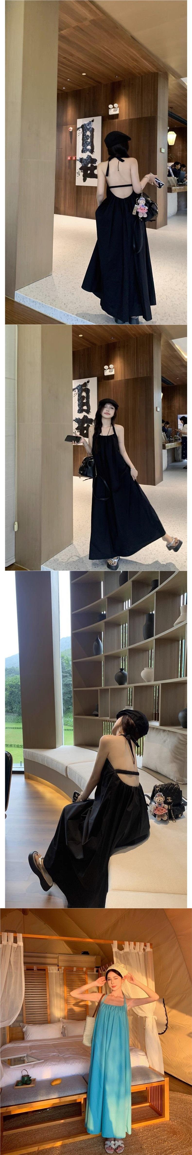 Vestido francés de primer amor, temperamento romántico, de alta gama, sexy, sin espalda, con tirantes halter, de hada, para vacaciones junto al mar, vestido largo