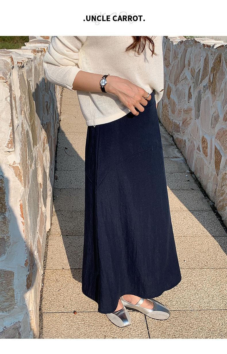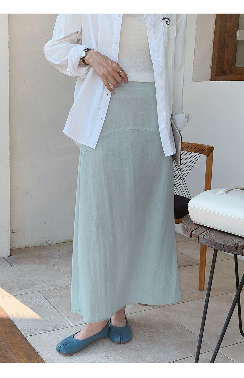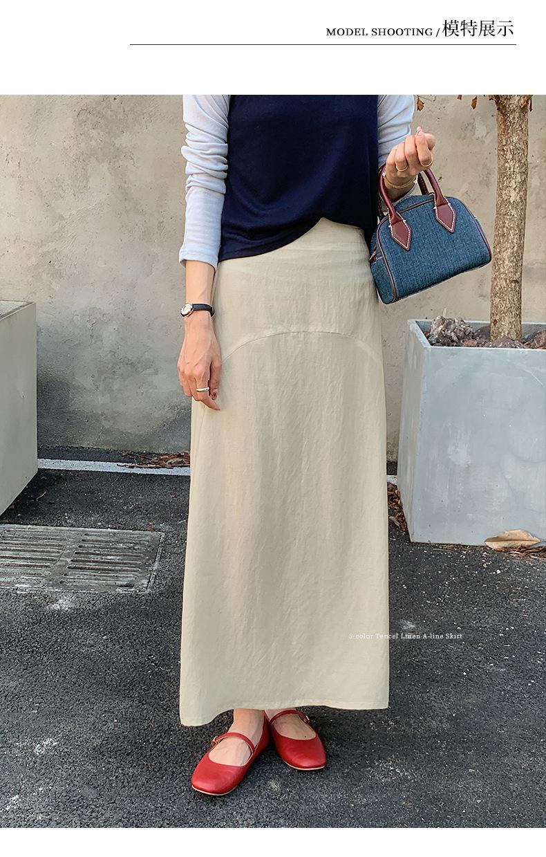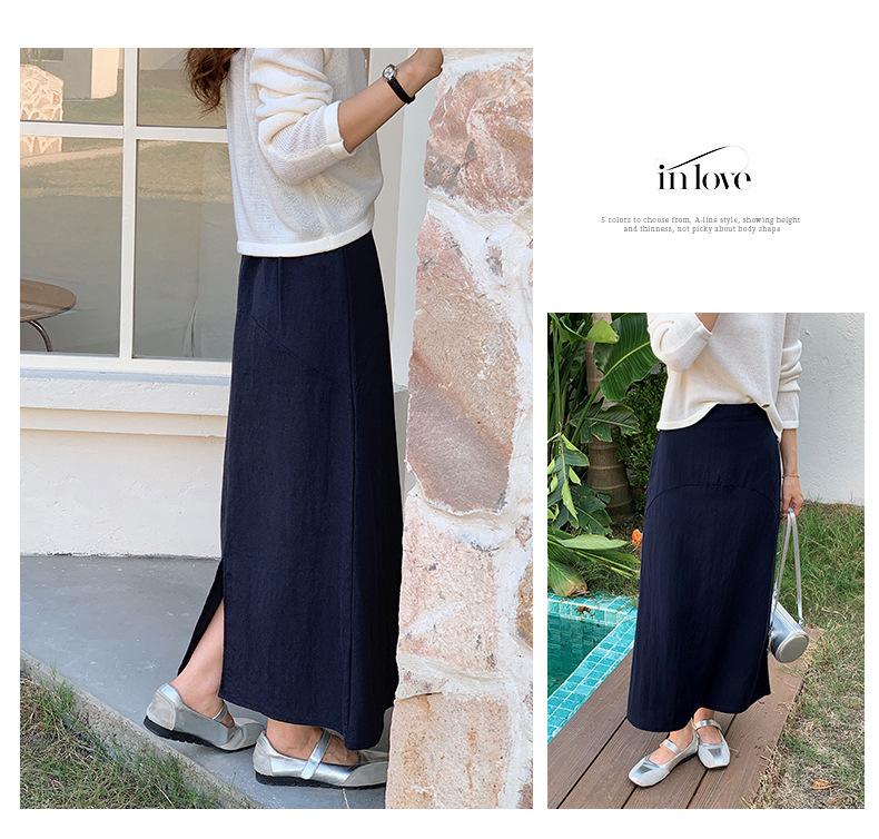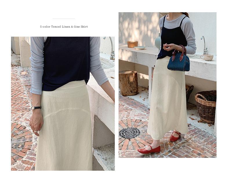Falda Midi de Lino Corte A para Mujer 2025 Nueva Temperamento Avanzado Cintura Alta Figura Pera Oculta Caderas y Adelgaza